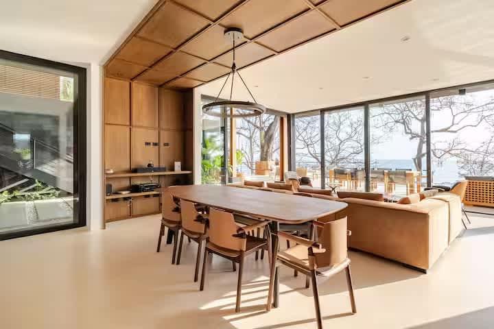 A one-of-a-kind luxury property featuring stunning architectural design and Italian leather furnishings, created for those seeking an exclusive experience in Santa Teresa. Perched atop the lush jungle with views of the Playa Hermosa surf break, and just 4 minutes from town and the spectacular beach, this villa seamlessly blends its natural surroundings with high-end finishes, offering ocean views from every room.