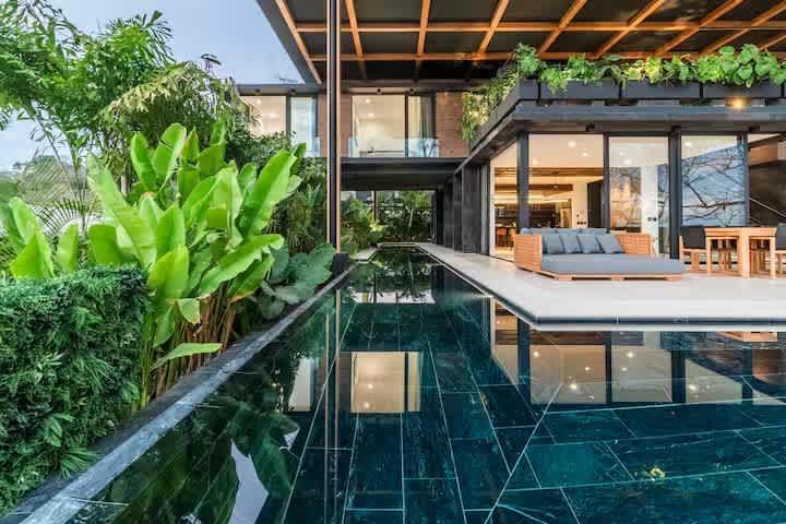 Villa Nalani boasts multiple terraces and private balconies ideal for relaxing or enjoying special moments. Outdoor areas include dining spaces, a gas grill, and a spectacular 25-meter semi-Olympic saltwater infinity pool—perfect for soaking in the tropical climate and stunning views.