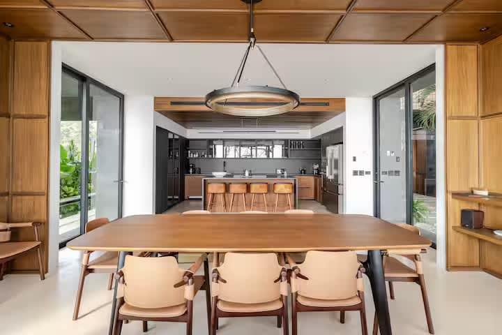 Highlights include high-speed fiber optic internet throughout, Bluetooth sound system with indoor and outdoor speakers, an outdoor dining area for 12, a private desk for remote work, and secure access via electric gate. All complemented by a personalized concierge service to ensure an exceptional stay from the moment you book.
