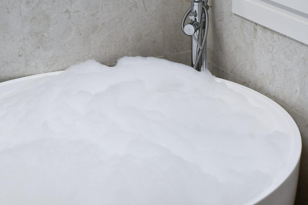 The private bathroom is a true wellness retreat, featuring a spacious circular bathtub, a separate shower, soft towels, and exclusive Rituals toiletries.