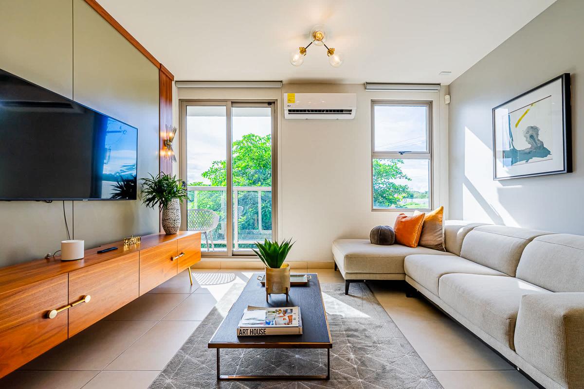 Parterre is located in the Woodlands area, on Panama Pacifico Boulevard, with views of green areas and the canal (Tower 1).