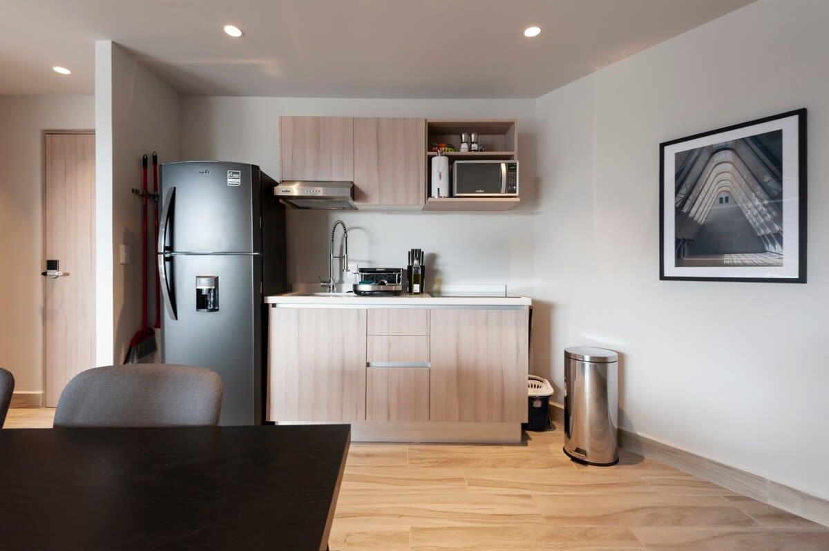 This loft is located in the center of Mexico City's, Anzures. Anzures is known as an oasis in the bustle of the city, Anzures is a refined residential neighborhood with a relaxed atmosphere. This neighborhood you can find good art, gastronomy and fashion living together in a discreet current environment.