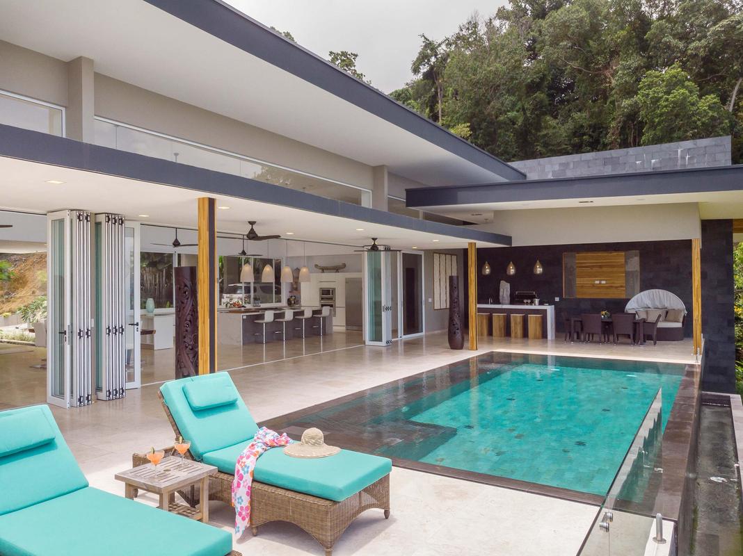 Perched high in the tropical hills of Uvita, this stunning luxury villa perfectly blends modern comfort with the majesty of nature. Surrounded by lush jungle and offering panoramic views of the ocean, mountains, and gardens, the property delivers a unique experience where privacy, serenity, and breathtaking landscapes take center stage. Accommodating up to 12 guests, it’s the ideal retreat for large families or groups of friends seeking an exclusive getaway in Costa Rica’s Southern Pacific region. The villa features five spacious bedrooms, including four master suites with king-size beds and an additional suite with twin beds, all with en-suite bathrooms to ensure comfort and privacy for every guest. With a total of five full bathrooms and one half-bath, the layout is designed to provide functionality without compromising style. The interior spaces are contemporary and seamlessly integrated with the natural surroundings, allowing for abundant light and airflow throughout. The modern, fully equipped kitchen offers everything needed to prepare and share meals during your stay. Both indoor and outdoor areas have been thoughtfully designed for comfort and ease, including a terrace, outdoor dining space, and a hammock area ideal for relaxing and soaking in the tropical atmosphere. The outdoor area is a true sanctuary. A private pool invites guests to cool off under the sun, while the BBQ area and al fresco dining setup are perfect for gathering with family or friends. The lush surroundings provide incredible wildlife-watching opportunities—you might spot tropical birds, howler monkeys, or even sloths, all from the comfort of the property. The villa also includes free parking for up to four vehicles and safety features like a safe and fire extinguisher. Lastly, this property is not only a model of luxury but also of sustainability. The entire villa is powered by solar energy, making it an eco-conscious option without sacrificing any modern convenience. With high-speed Wi-Fi and the potential for extended stays, it’s also an excellent choice for remote work. Whether you're seeking total relaxation or an adventure immersed in nature, this villa offers an unforgettable experience in one of Costa Rica’s most privileged locations. IMPORTANT INFORMATION: Cancellation Policy: Cancellations made more than 45 days before the arrival date are fully refundable. After that period, no refunds will be granted. Check-in: From 3:00 p.m. | Check-out: Before 10:00 a.m. A 4x4 vehicle is required to access the property.