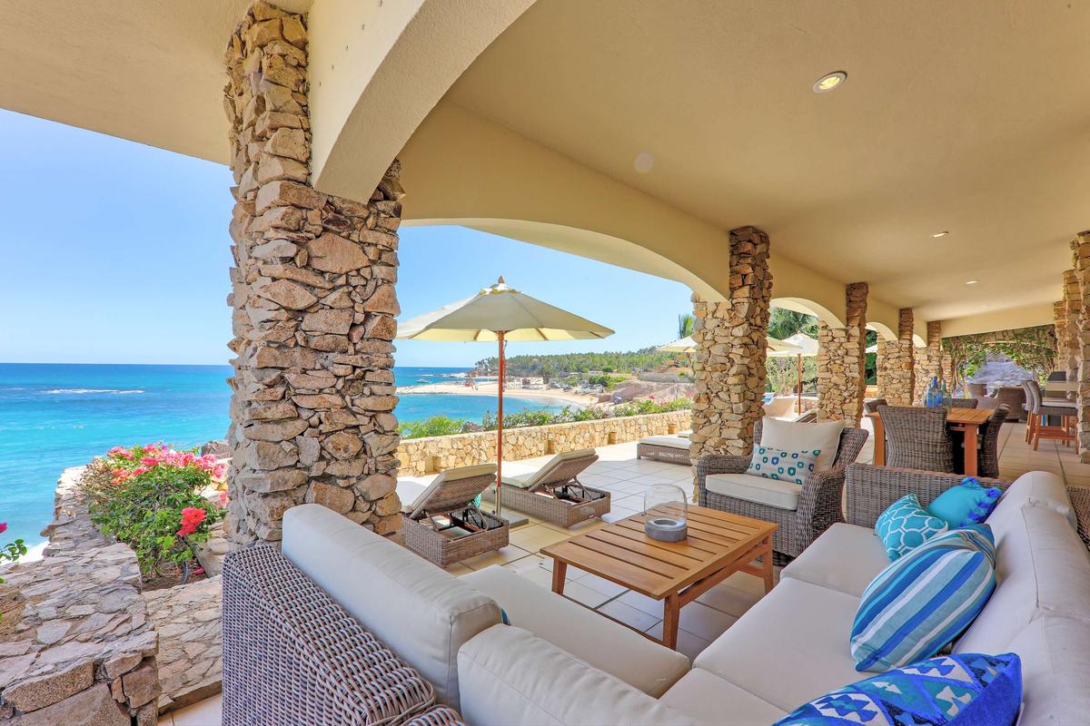 Beautiful villa located in the exclusive gated community of Palmilla Norte, this oceanfront property offers unparalleled luxury and privacy, with private access to one of the most beautiful beaches in Los Cabos. Ideal for families or groups of up to 8 guests, it combines natural stone and elegant finishes, reflecting sophistication and harmony with its surroundings. The villa features five ocean-view bedrooms with comfortable beds that ensure total relaxation, along with 5.5 bathrooms, a fully equipped kitchen with a breakfast bar, a formal dining area for 10 guests, a TV room, high-speed Wi-Fi, and a Sonos sound system. Every detail has been designed to provide comfort and luxury. Outdoors, the villa offers multiple spaces to relax and enjoy the ocean: heated pool, jacuzzi, oceanfront terrace, private palapa, outdoor dining area for 6 guests, BBQ grill, firepit, sun loungers, and an oceanfront garden. Each space allows for unforgettable moments by the sea — whether sunbathing or watching the sunset. Services include private check-in, concierge, villa manager, daily housekeeping (except Sundays and Mexican holidays), 24/7 security within the gated community, and continental buffet breakfast. The property also features air conditioning, ceiling fans, a gas fireplace, and private parking, ensuring a comfortable and complete experience. Located just 20 minutes from San José del Cabo and 10 minutes from Cabo’s restaurants and nightlife, this villa blends privacy, luxury, and proximity to the city — offering an oceanfront escape where every moment celebrates paradise. It’s the perfect place to enjoy the beach, tranquility, and elegance in an exclusive setting. IMPORTANT INFORMATION Cancellations can be made up to 60 days before the arrival date. After that period, payments are non-refundable. Bookings for Thanksgiving, Christmas, New Year, and Easter are non-refundable. A security deposit of $3,500 USD will be required, fully refundable as long as no damage is reported to the property. Smoking is not allowed on the premises; violations may result in a fine of up to $500 USD. There must be at least one guest over the age of 30 responsible for the group. Your reservation includes daily housekeeping service, which is not provided on Sundays or Mexican public holidays.