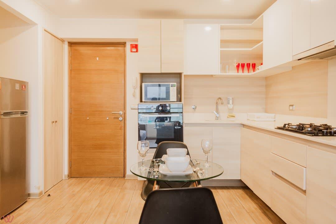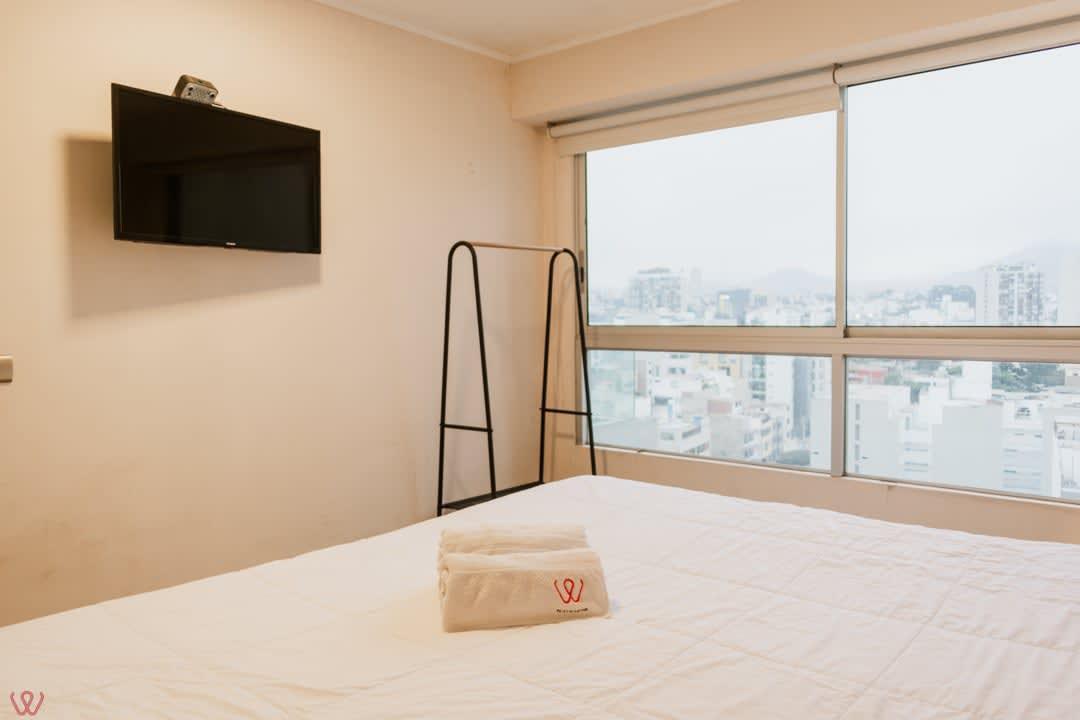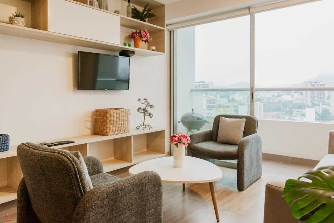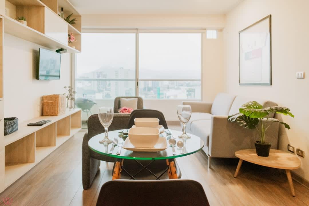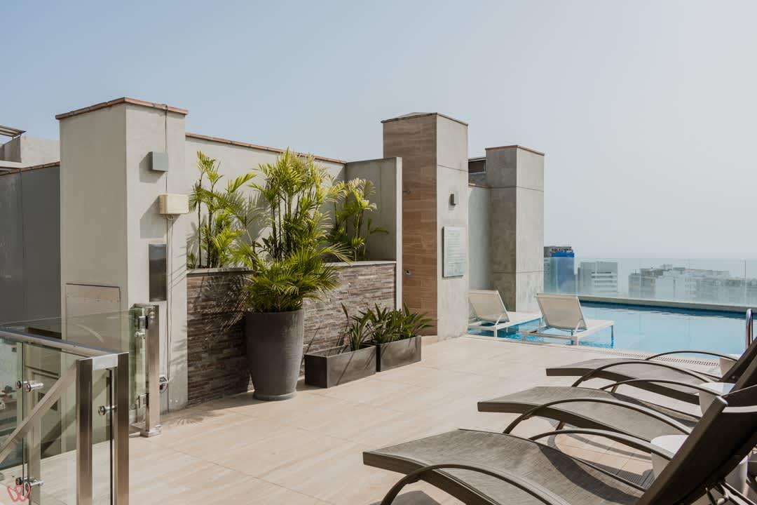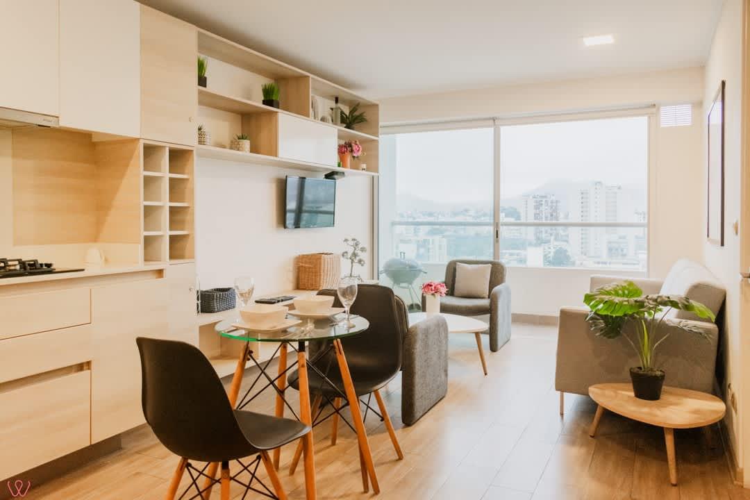Centrally located apartment in Barranco, ideal for 2-3 guests, with a sofa bed. Safe and quiet building, close to attractions. It features a bedroom, full bathroom, equipped kitchen, bed linens, and towels. Access to common areas: pool, terrace, and gym. Perfect for short or long stays. Welcome!