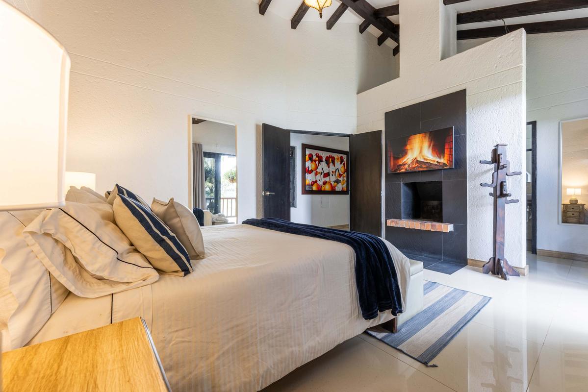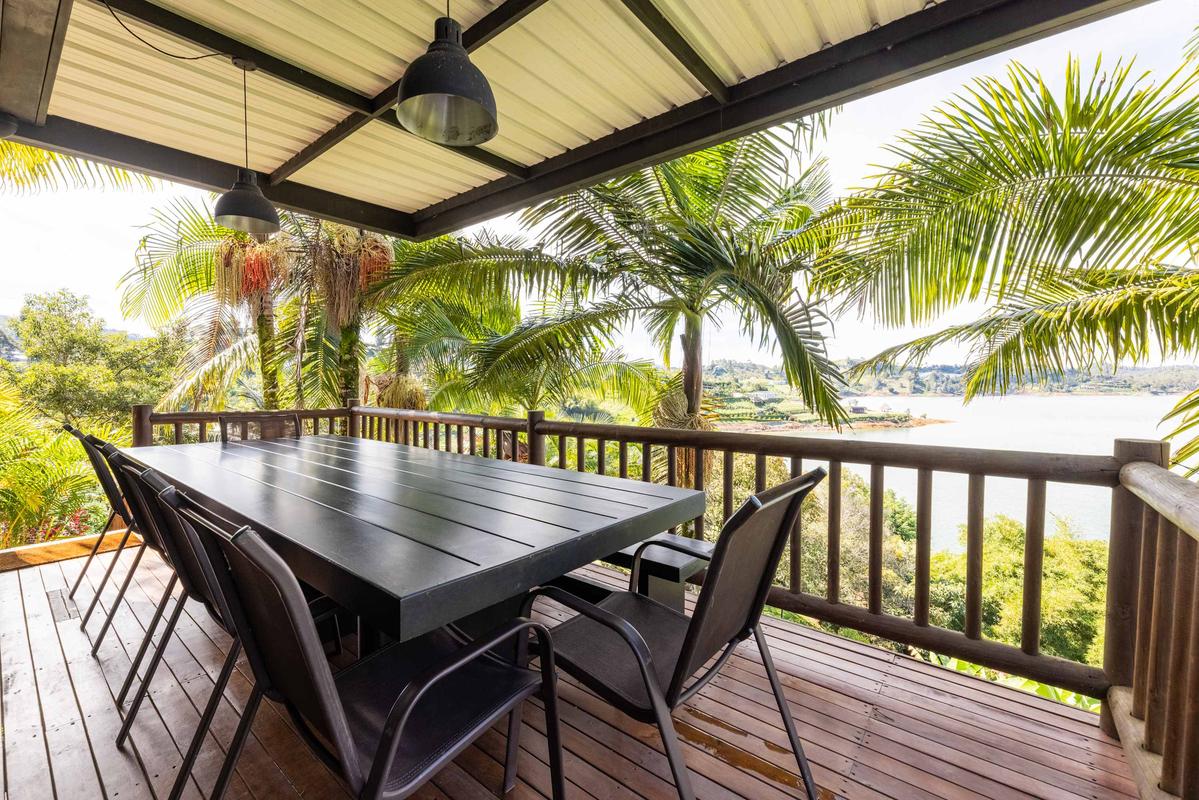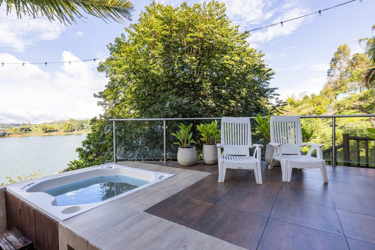 A perfect place for families or groups of friends looking to relax, enjoy nature, and share special moments together. From here, you'll enjoy a stunning view of the reservoir, direct water access, and a private jacuzzi for ultimate relaxation. During your stay, you can enjoy fun water activities like kayaking and paddleboarding, all in a peaceful natural setting. High-speed fiber optic Wi-Fi is available to keep you connected at all times. Please note that parties are not allowed. This countryside-style accommodation features a master bedroom with a queen bed, fireplace, TV, full bathroom, and balcony. It also includes a room with two twin beds and a full bathroom, as well as two additional rooms with queen beds, lake views, and en-suite bathrooms. On the terrace, you’ll find a hydro-massage jacuzzi with breathtaking views of the lake. The property offers two fully equipped kitchens and a gas grill. Guests can also order à la carte meals or request a helper for an additional fee. The cozy living room features a wood-burning fireplace—perfect for warm, memorable moments with friends and family. A butler is available until 8:00 p.m. to assist with any needs. Agua Marina shares the lot with other cabins, but each is spaced out to ensure privacy. Agua Marina is located on the hillside, while the other cabins are closer to the reservoir. The dock, general lot area, and access are shared among all the cabins; however, Agua Marina guests will not have access to the other cabins and vice versa. IMPORTANT INFORMATION: Check-ins are only accepted between 10:00 a.m. and 8:00 p.m. After that time, there will be no one available to welcome guests. Cancellations made less than 7 days prior to arrival are non-refundable.