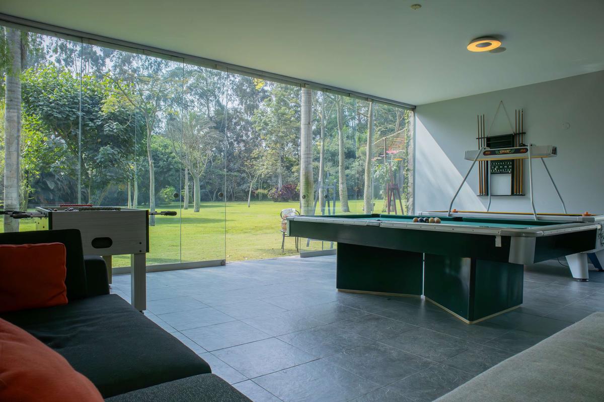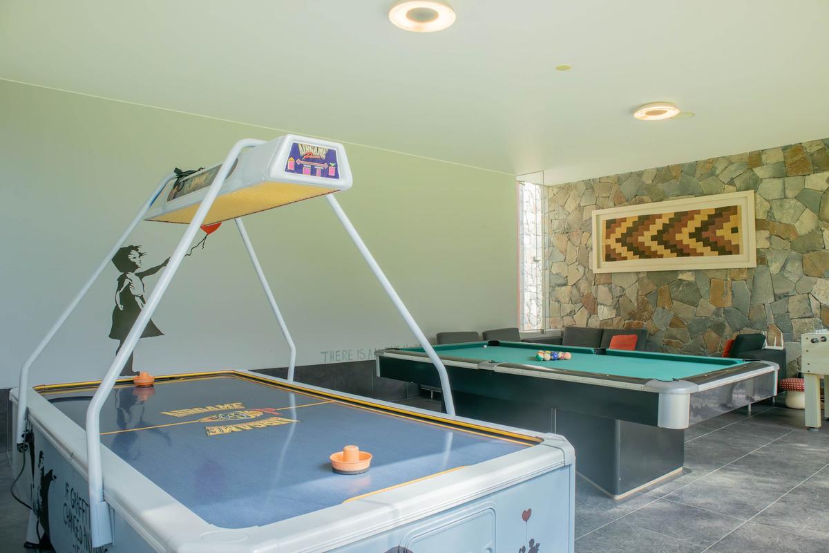 The property spans 17,400 m² and features a beautiful private pine forest, perfect for walks and breathing fresh air. At night, the outdoor firepit becomes the perfect spot to gather under the stars. For entertainment, the spacious game room includes a pool table, foosball, and other fun activities for everyone to enjoy.