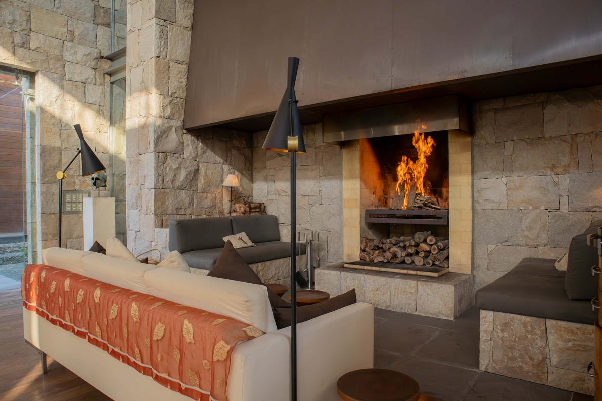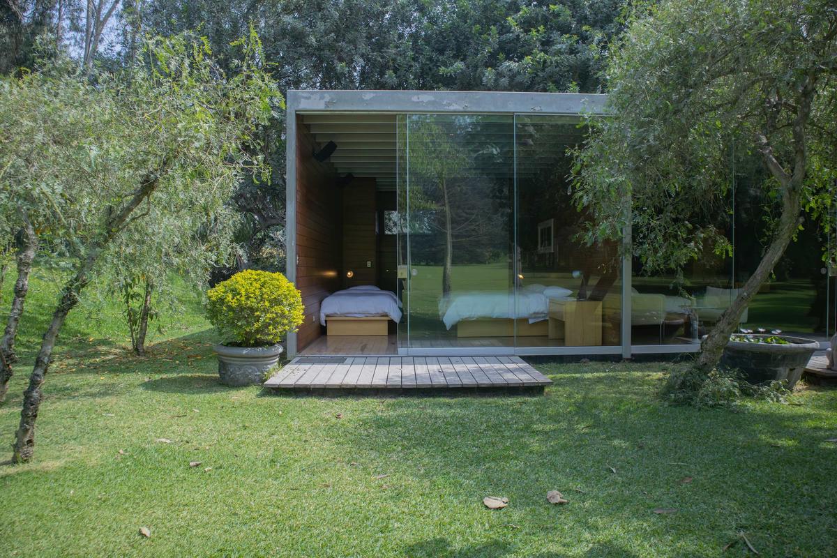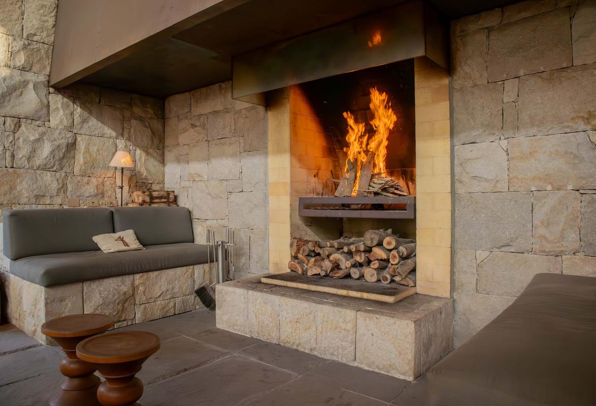 Inside the main house, you'll find two cozy bedrooms, a living room with a TV, a dining area, a fully equipped kitchen, and a lounge with a fireplace—perfect for sharing special moments on cool afternoons or evenings. All indoor spaces open onto the garden, letting nature be part of your stay at all times.