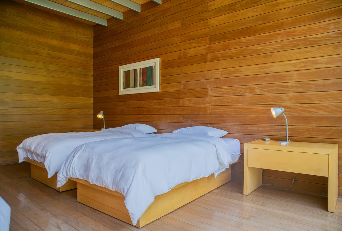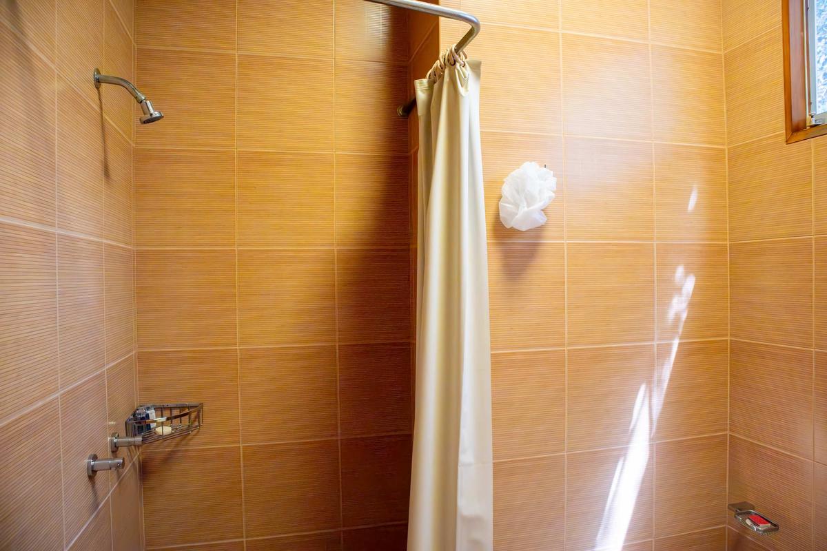 The garden is one of the property’s highlights. Scattered throughout are three private bungalows, each with its own bathroom, offering comfort and independence for all guests. There’s also a terrace with lounge chairs for sunbathing, an outdoor dining area, and a barbecue zone—ideal for enjoying a grilled meal with great company.