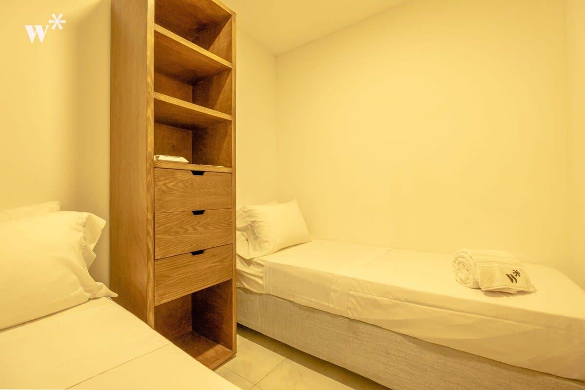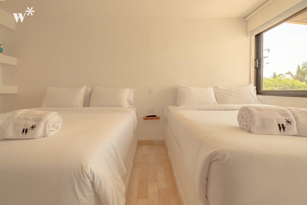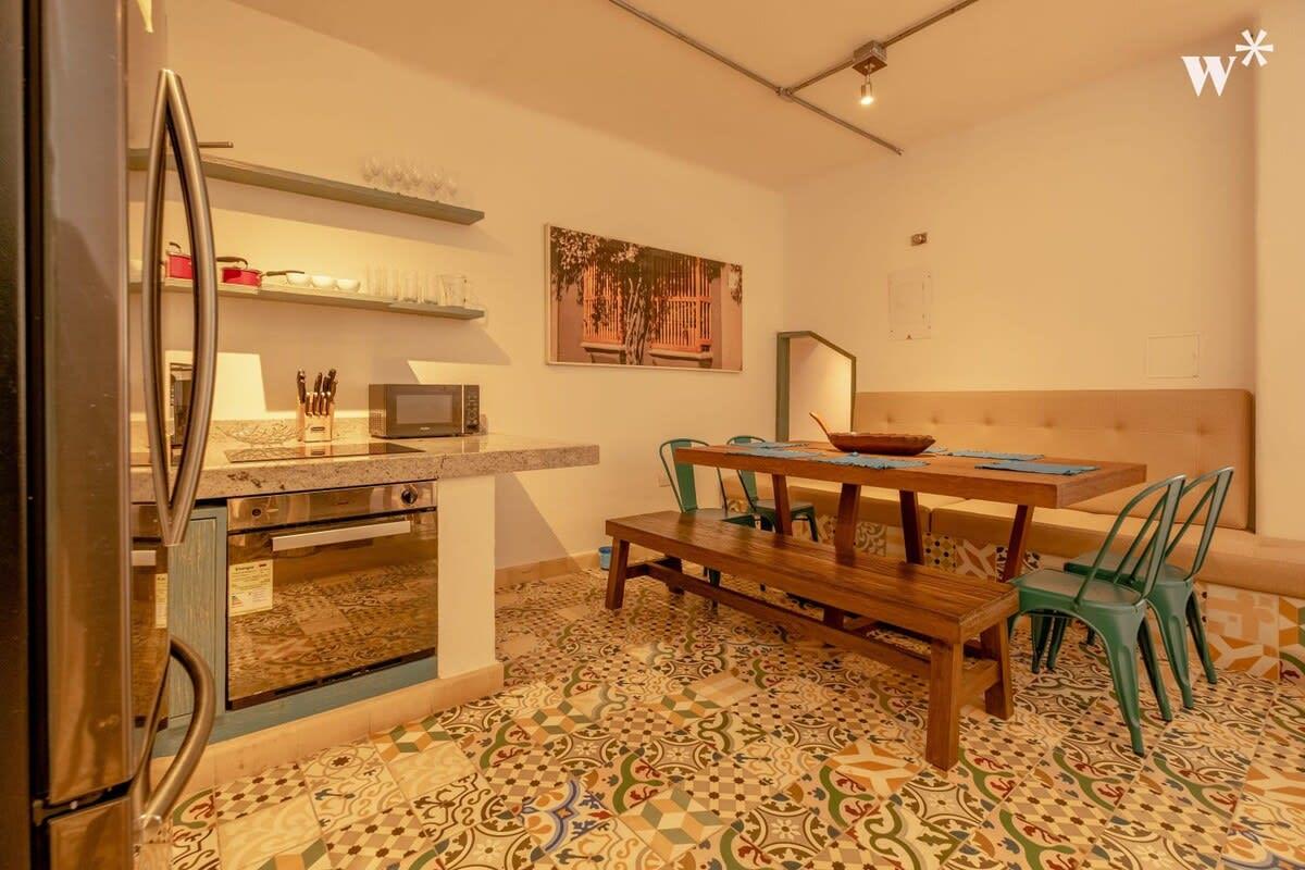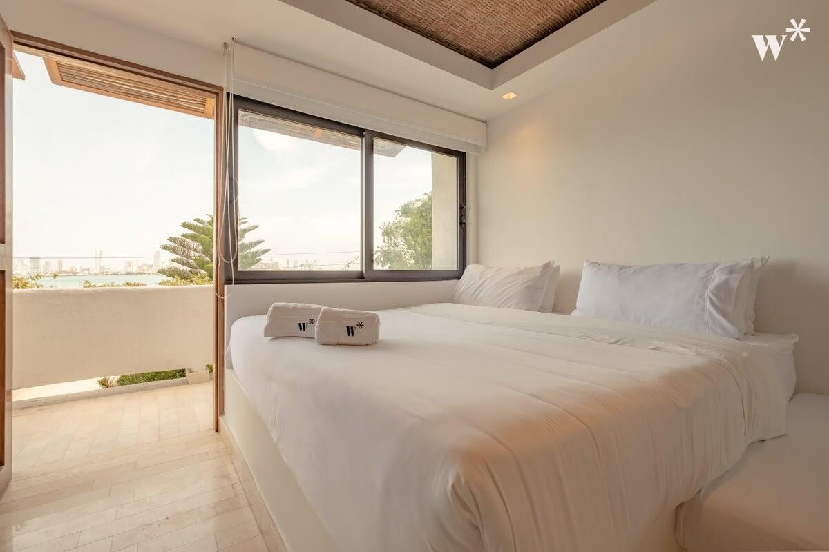 Located in centric Cartagena, in the residential area of Bocagrande, Castillo Grande, 5 minutes from Getsemani. TSpacious 4-bedroom house for 12 guests, featuring a large open terrace with stunning bay views, full air conditioning, hotel-quality bedding, a fully equipped kitchen, and a comfortable, elegant design ideal for families or groups.