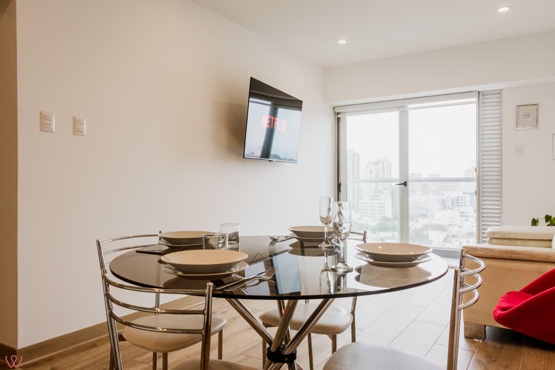 Stylish and spacious apartment at Avenida Javier Prado Oeste 2173, San Isidro. Features two Queen beds, two full bathrooms, a modern kitchen, and high-speed Wi-Fi. Set in one of Lima’s most prestigious districts, surrounded by parks, fine dining, shopping centers, and key business hubs. Perfect for up to 4 guests.