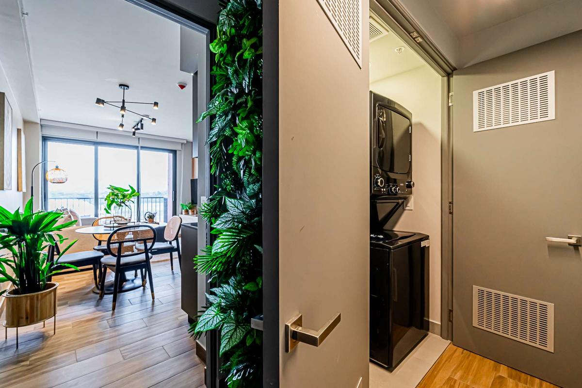 Stay at Centriqo, a vibrant community with green areas, trails, bike paths, shops, and an international airport. Enjoy a modern apartment with full bathrooms, a laundry area, and access to exclusive amenities like a pool, gym, pet spa, and more.