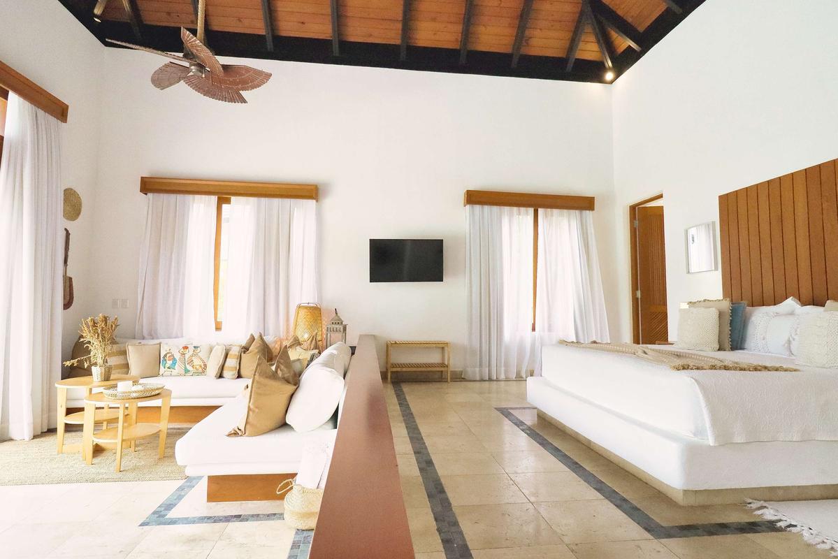 The thoughtfully appointed bedroom invites you to rest with soft linens, extra pillows, and a serene atmosphere. The fully equipped kitchen allows you to easily prepare your favorite meals, while high-speed Wi-Fi and a dedicated workspace are designed for those who need to stay connected. Every corner has been designed to offer a warm and pleasant experience, from the living room to exclusive access to all spaces in the villa.
