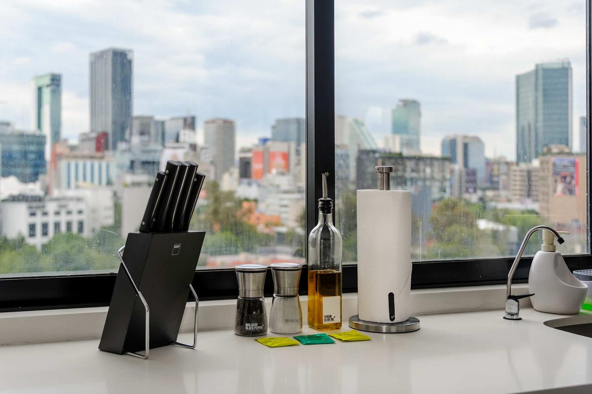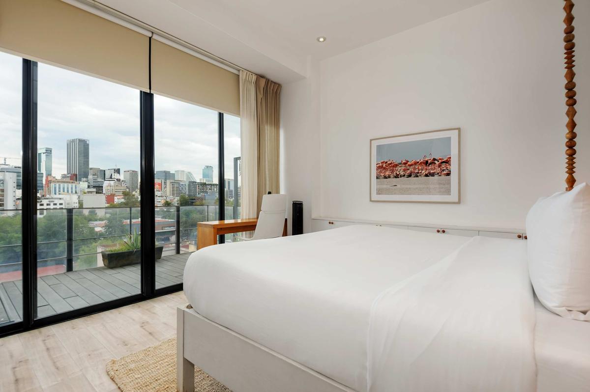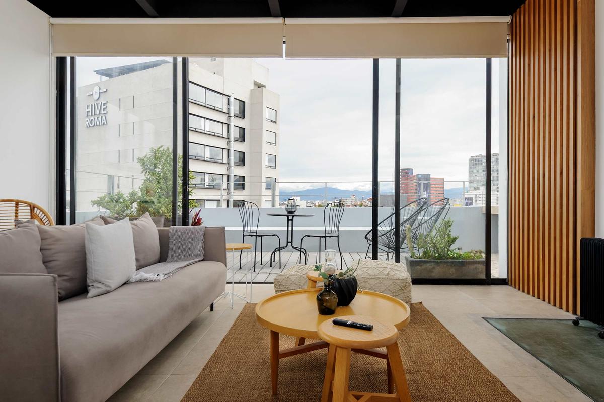 The 3BR apartment with balcony is located in the center of Mexico City's culinary and artistic zeitgeist, Roma Norte.