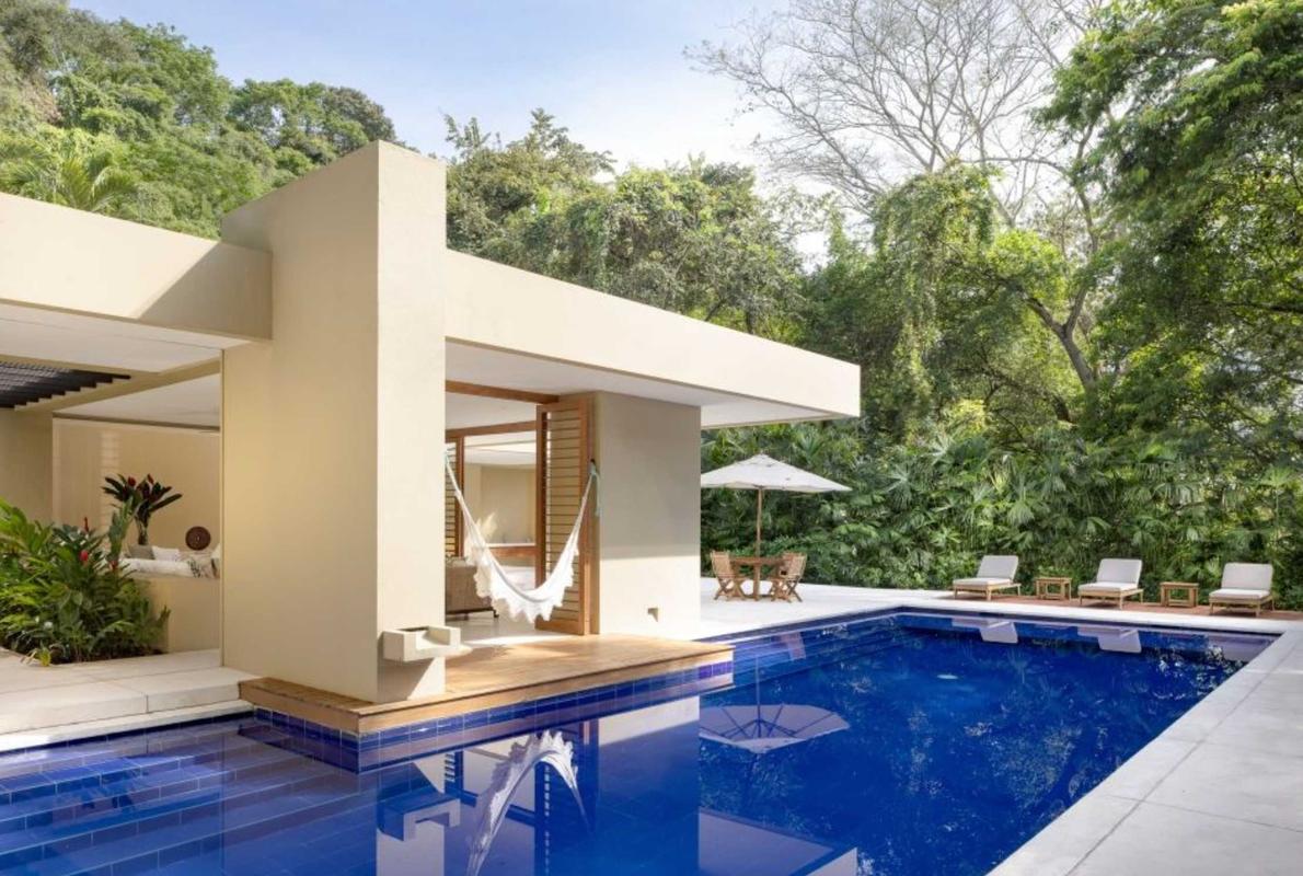 Spectacular 4-Bedroom House, each room equipped with air conditioning and ceiling fans to ensure your comfort at all times. With 5 bathrooms, a modern fully equipped kitchen, and a warm and cozy living room with TV, this property is perfect for creating unforgettable moments with family or friends. Enjoy the spacious terrace with comfortable lounge chairs, take a dip in the refreshing pool, or relax in the jacuzzi under the starry sky. The house also features a pleasant BBQ area for delicious outdoor meals and hammocks perfect for a nap or a quiet read.
