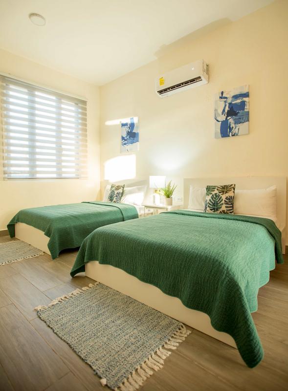 The villa has been thoughtfully designed to offer a soothing experience, blending cozy tropical decor with spacious, well-lit areas. Lounge in a hammock by the pool, share dinners under the stars, or spend quality time with your loved ones in a warm and private environment. The kitchen is fully equipped for preparing your favorite meals, and you’ll also find an outdoor shower—perfect for rinsing off after a beach day. All rooms are air-conditioned for your comfort, and there’s a bunk bed ideal for younger guests.