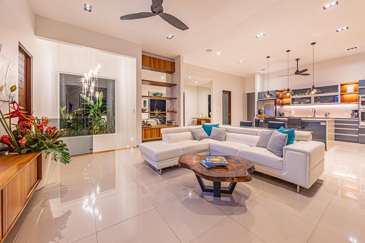 The kitchen is fully equipped with everything needed to prepare meals with ease. The common areas—such as the terrace, patio, and outdoor dining space—are perfect for enjoying the tropical climate any time of day.