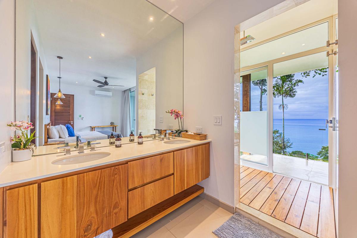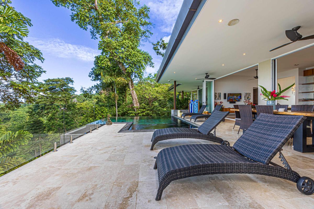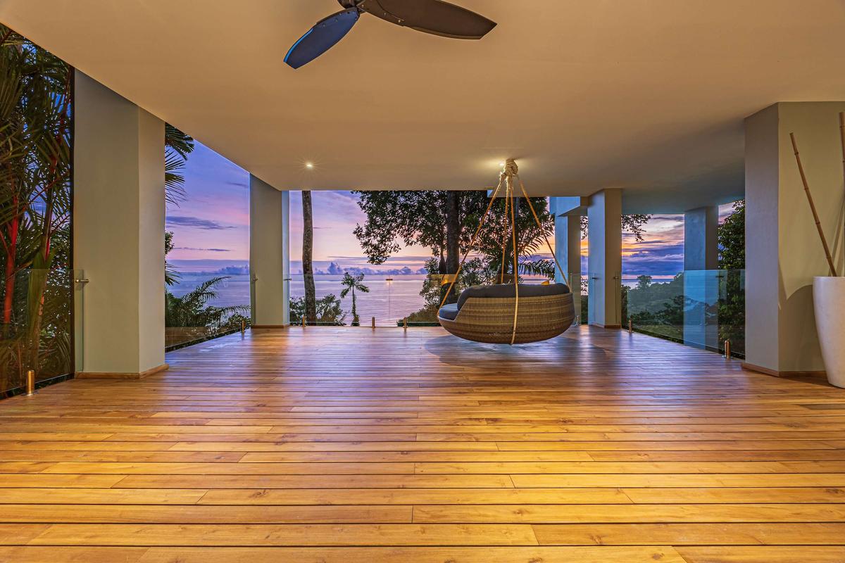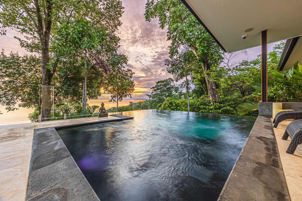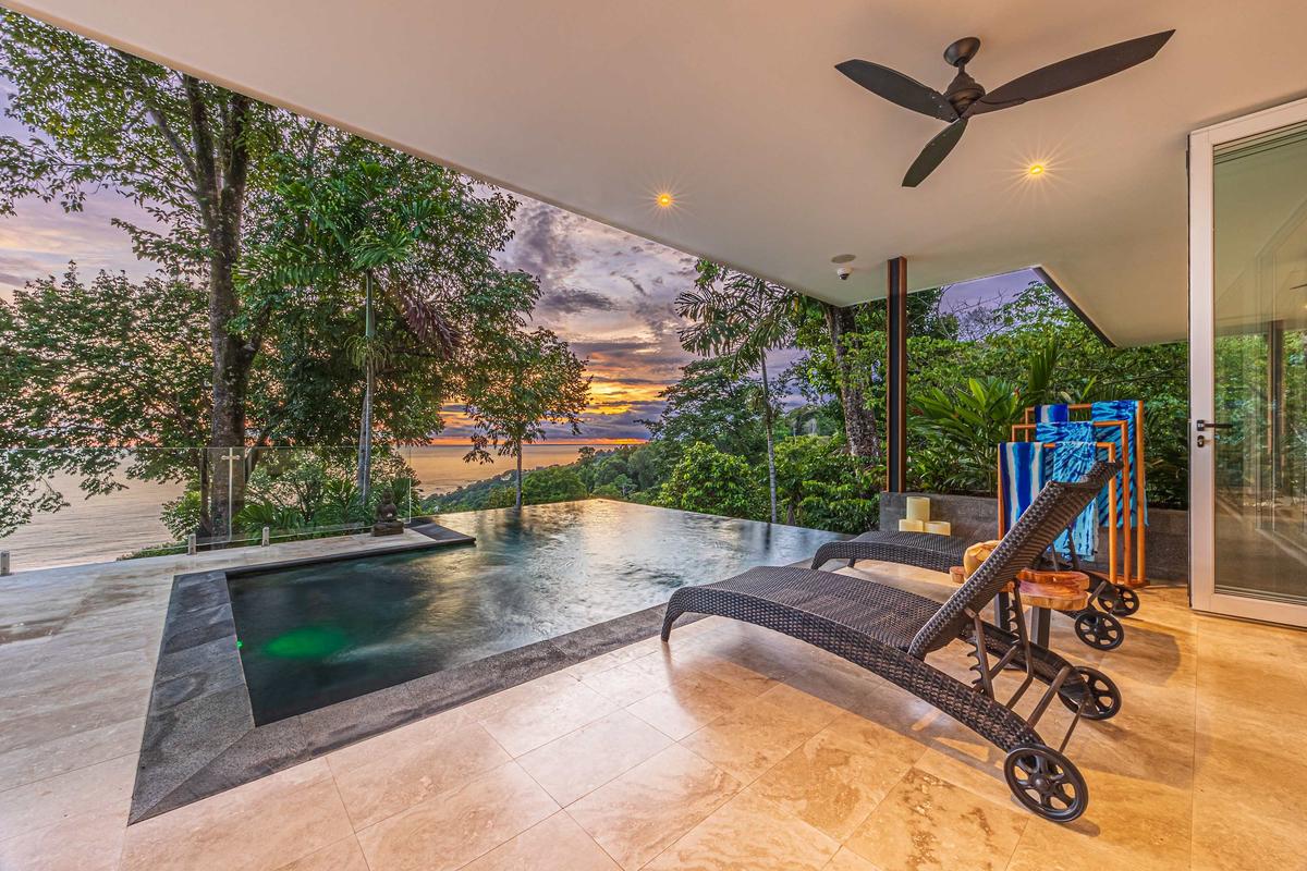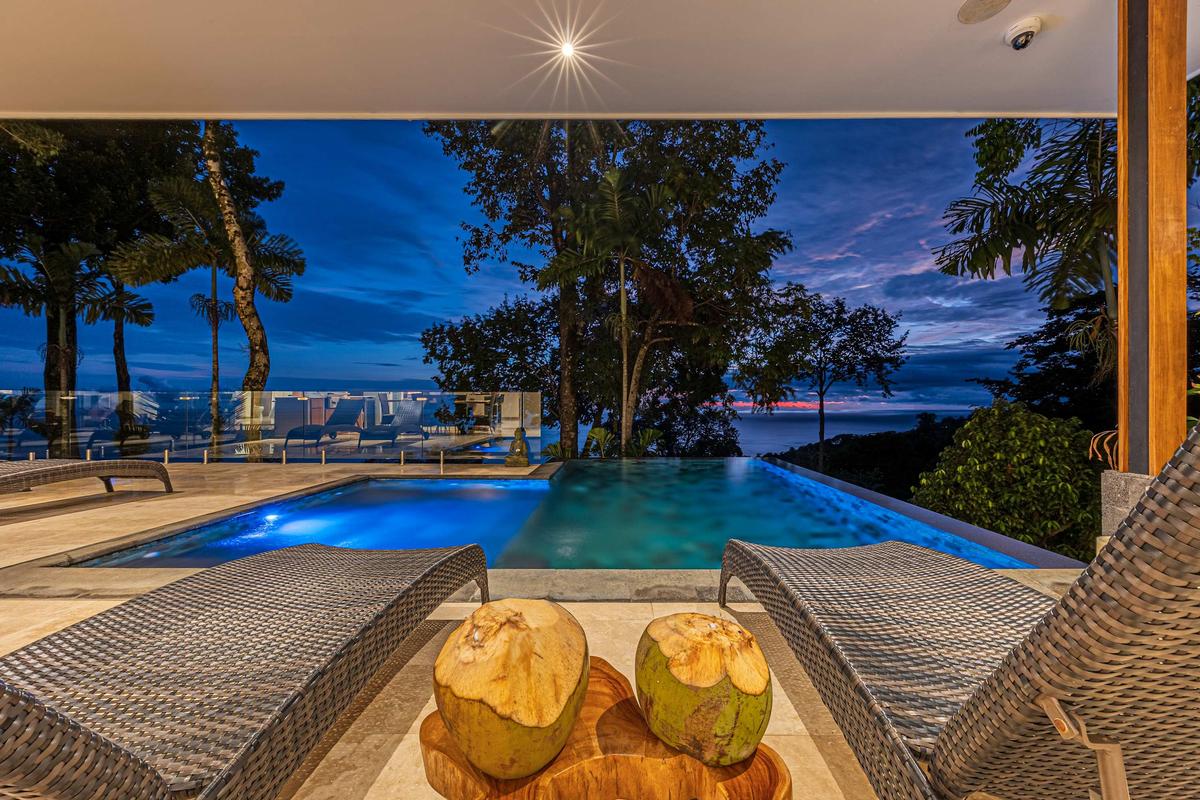 This luxurious villa is perched high in the rainforest, within a private 12-acre reserve in the exclusive Escaleras community, between Uvita and Dominical. From its privileged location, it offers spectacular ocean views and unforgettable sunsets. The natural surroundings are teeming with wildlife such as toucans, howler monkeys, and sloths, making it a true sanctuary of peace and connection with nature.