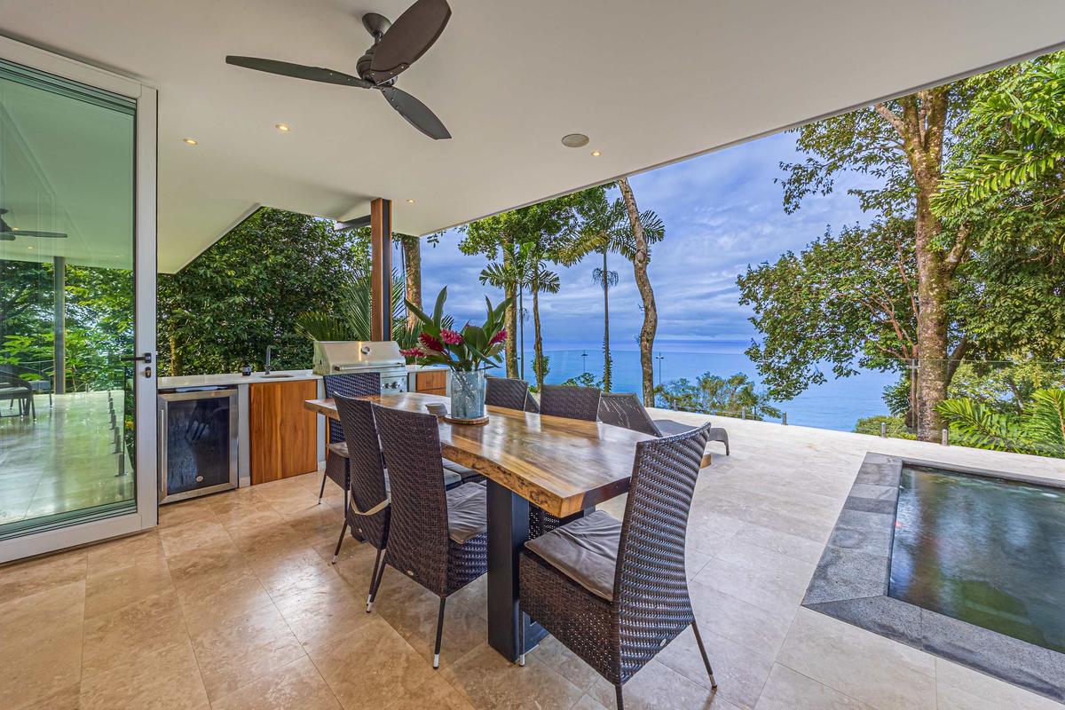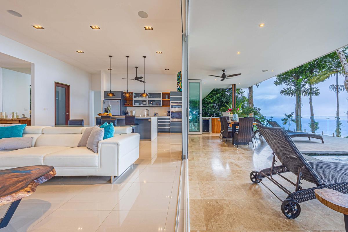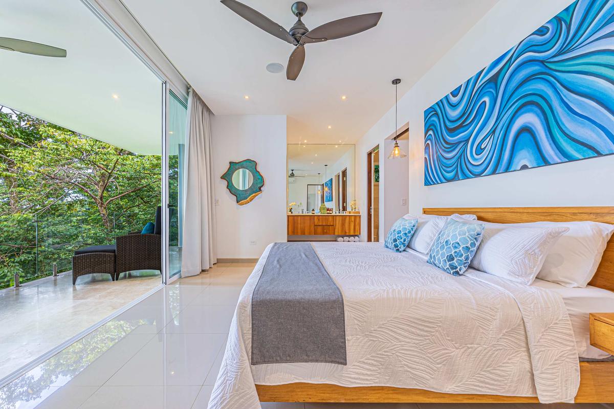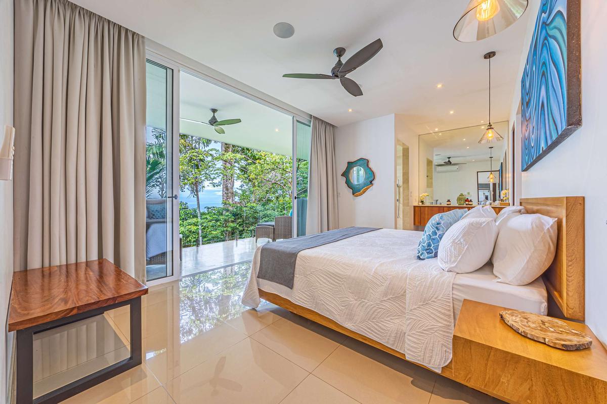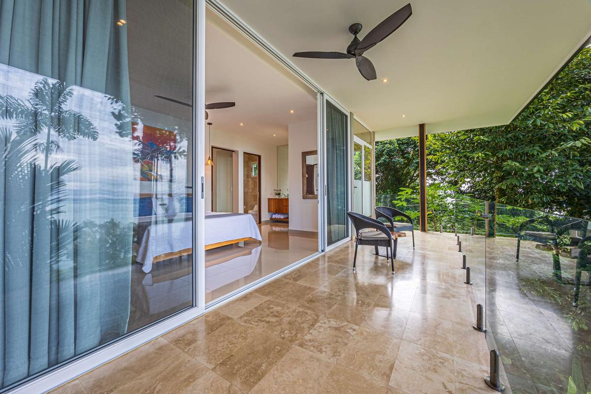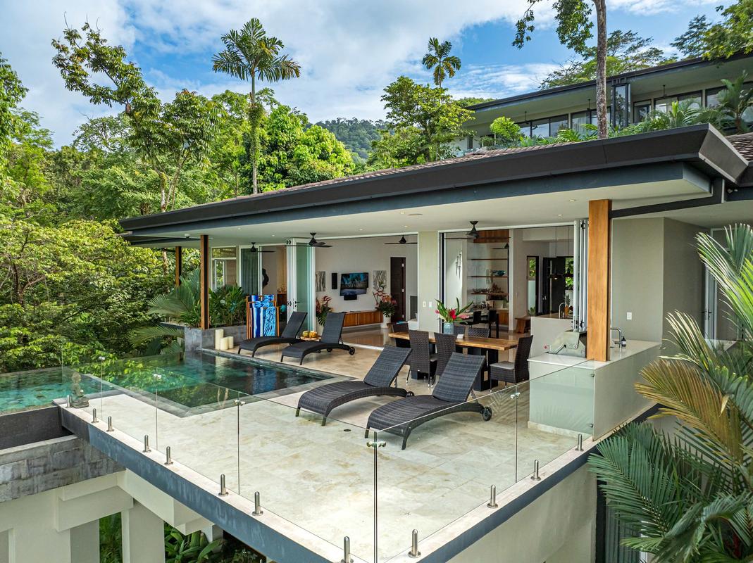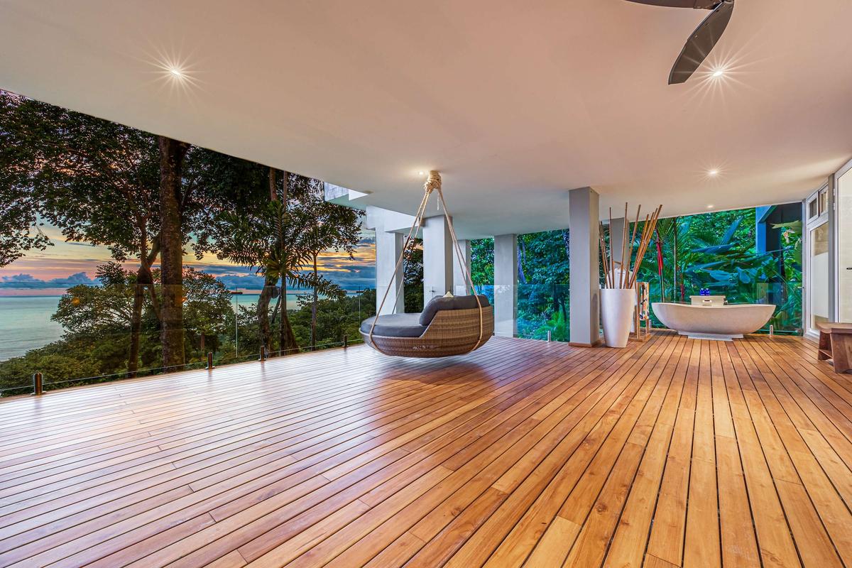 This luxurious villa is perched high in the rainforest, within a private 12-acre reserve in the exclusive Escaleras community, between Uvita and Dominical. From its privileged location, it offers spectacular ocean views and unforgettable sunsets. The natural surroundings are teeming with wildlife such as toucans, howler monkeys, and sloths, making it a true sanctuary of peace and connection with nature.