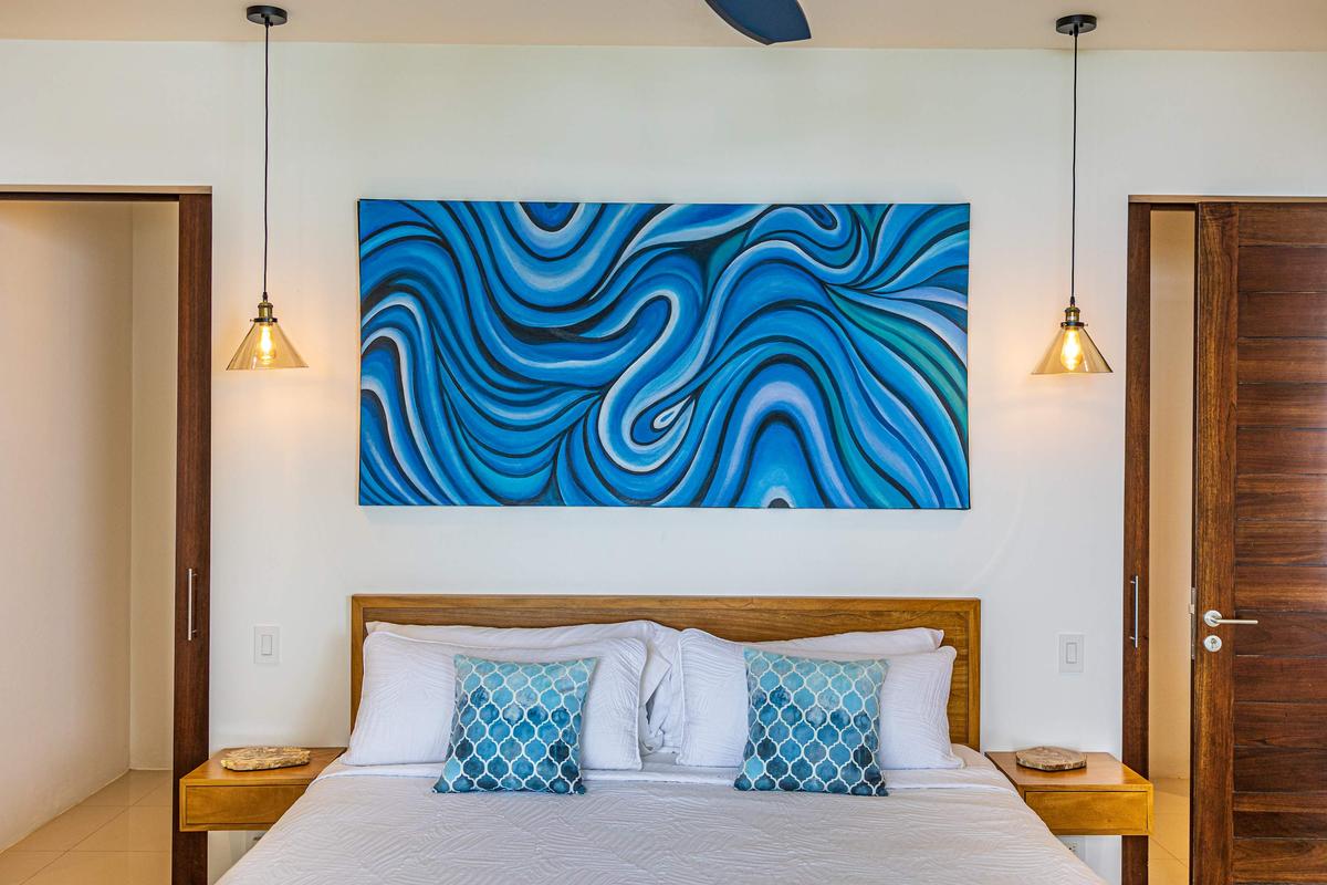 Thoughtfully designed to blend harmoniously with the landscape, the property features three elegantly decorated bedrooms, three full bathrooms, and a half bath—offering privacy and comfort for up to six guests. All rooms are equipped with air conditioning, ceiling fans, comfortable beds with cotton linens, and storage space. Additional features include carbon monoxide detectors, a safe, heating, and high-speed Wi-Fi for guests who wish to work or stay connected during their stay.