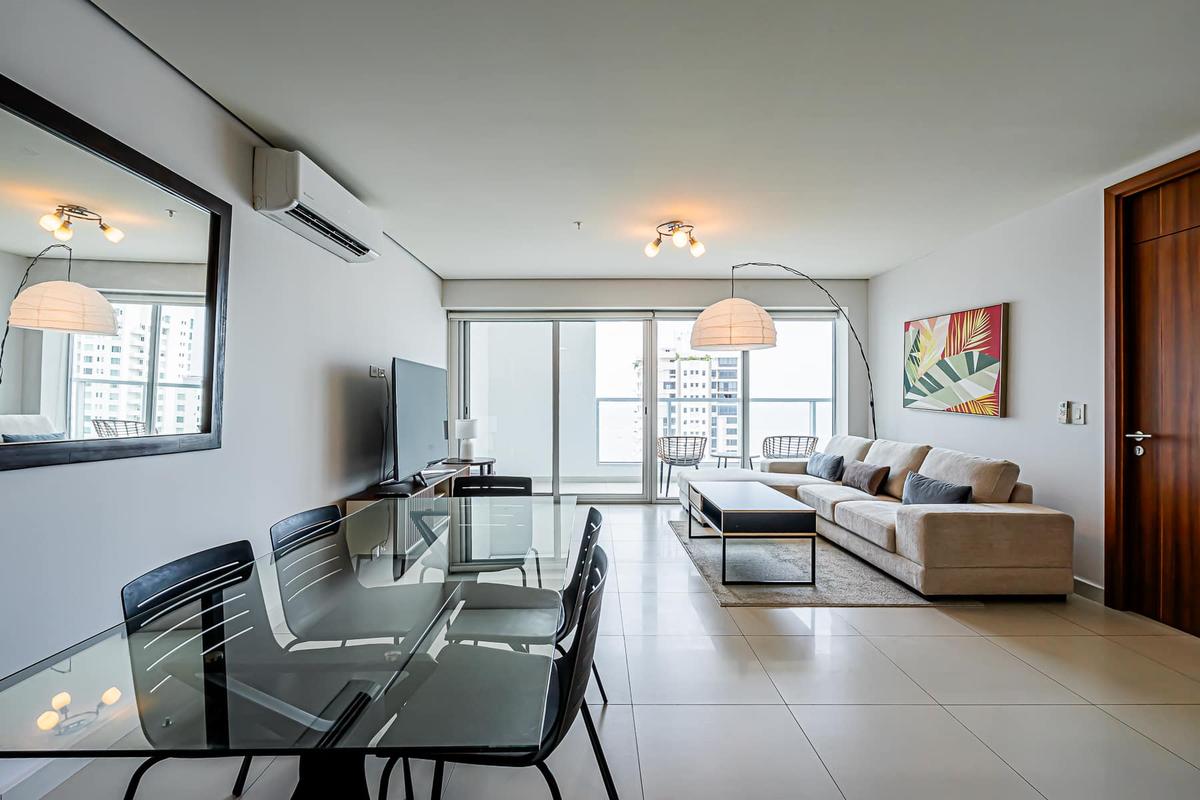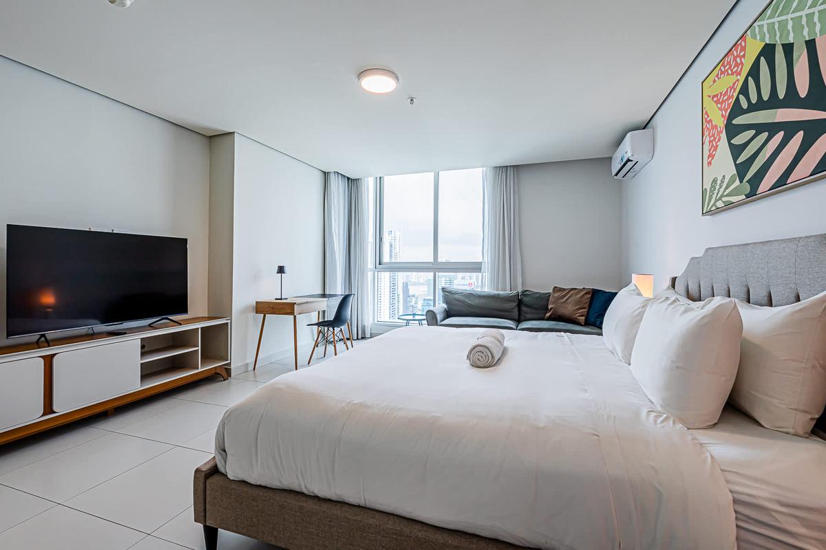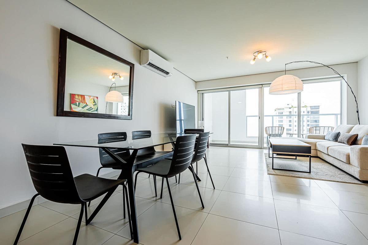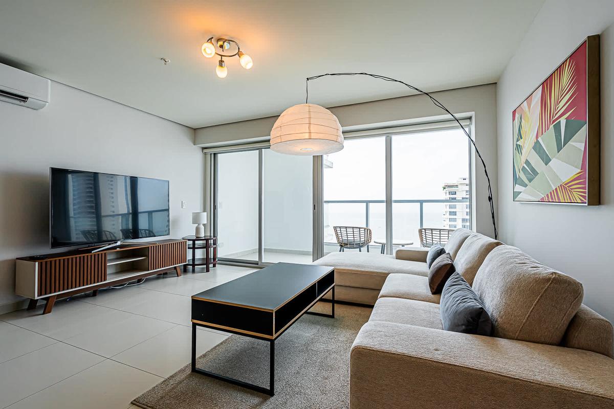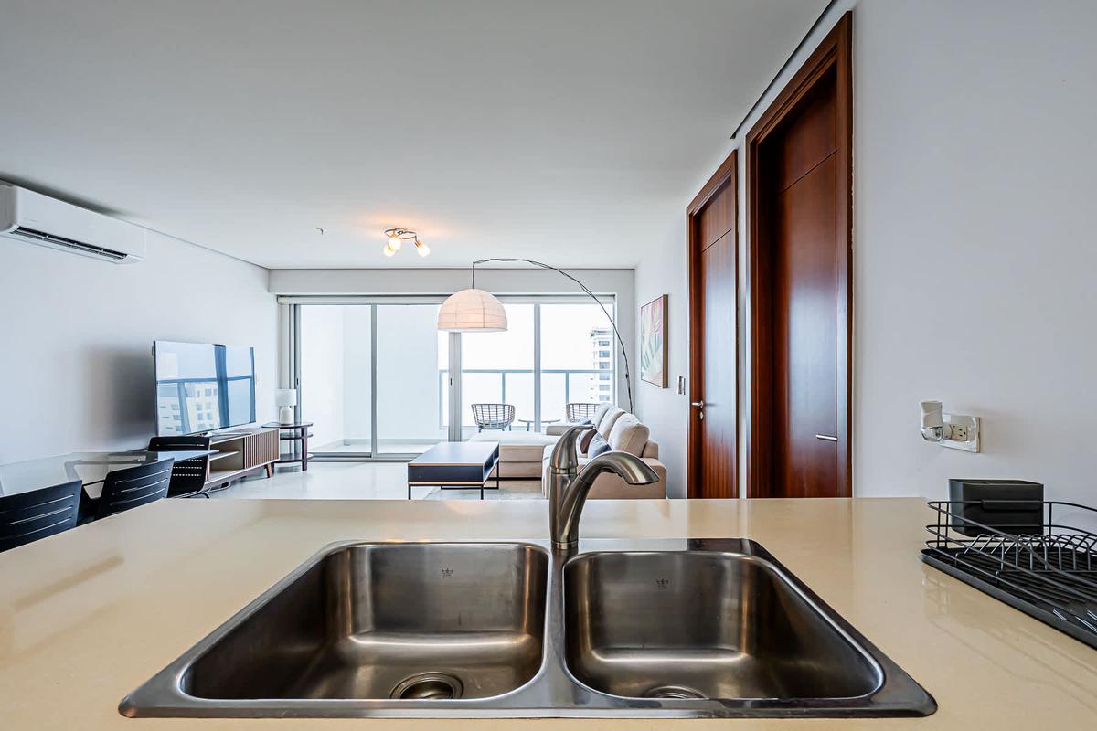 Stay at this 2BR with a full kitchen and spectacular views of Costa del Este. Nestled near the financial district, this upscale neighborhood exudes sophistication. It boasts proximity to multinational companies and a thriving urban vibe. This charming apartment offers a unique experience in the heart of Panama City. Surrounded by the bustling energy of the city, this modern retreat provides a cozy haven for travelers seeking to immerse themselves in the vibrant culture and history of Panama. With its convenient location, guests can easily explore the nearby attractions, from iconic landmarks to trendy restaurants and cultural hotspots. Whether wandering through historic streets or enjoying panoramic views of the city skyline, this apartment is the perfect starting point for your Panama adventure.