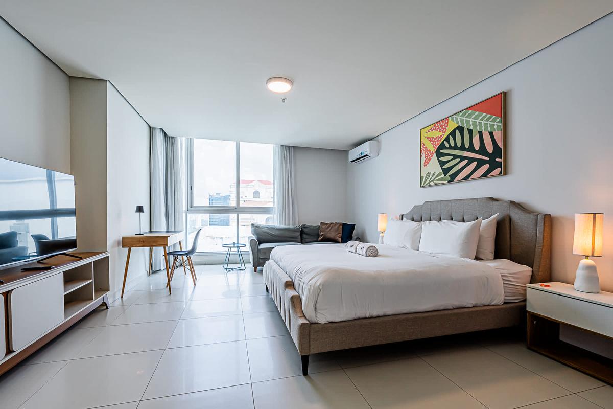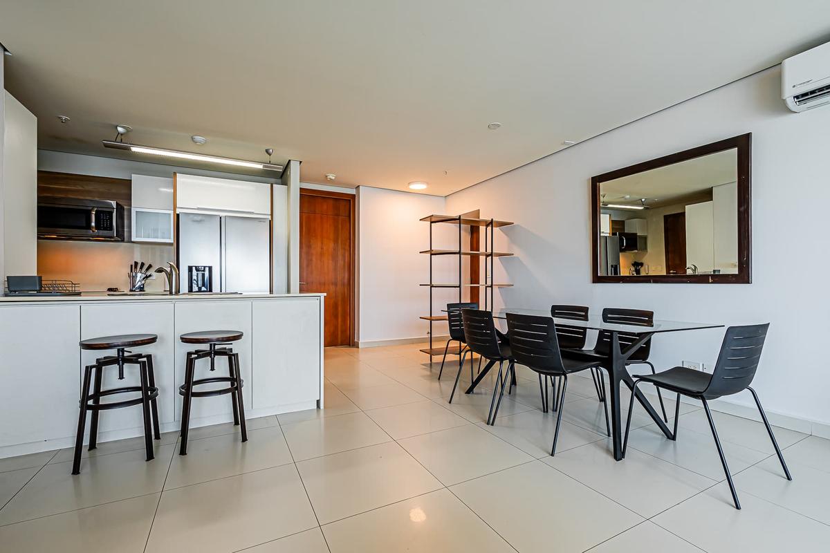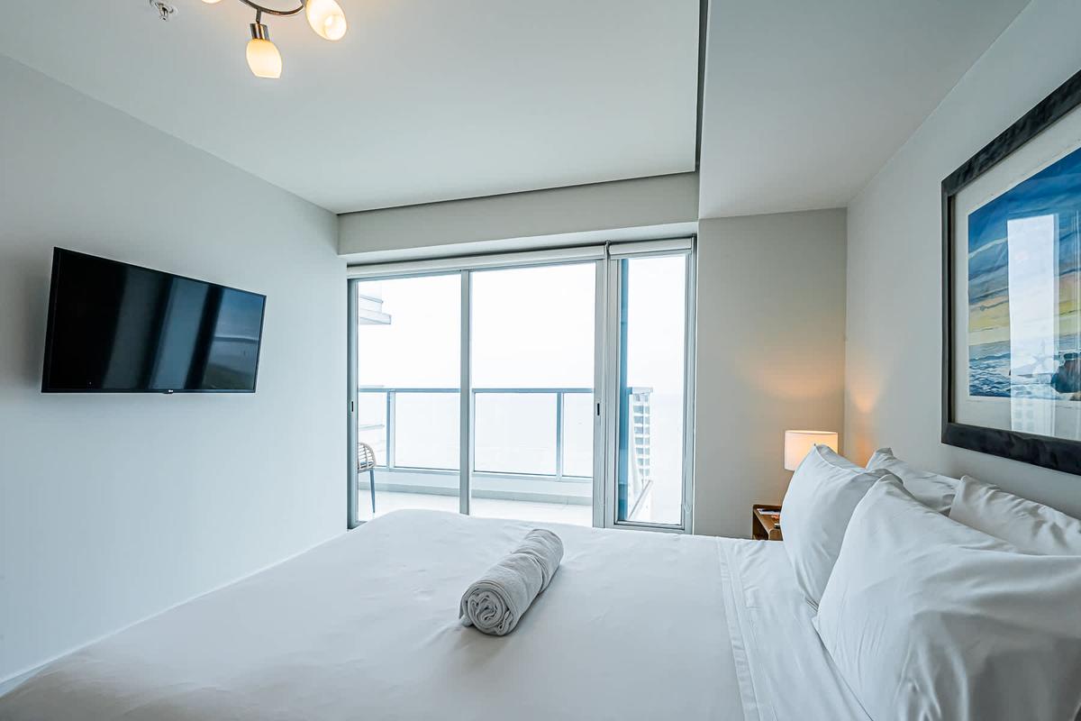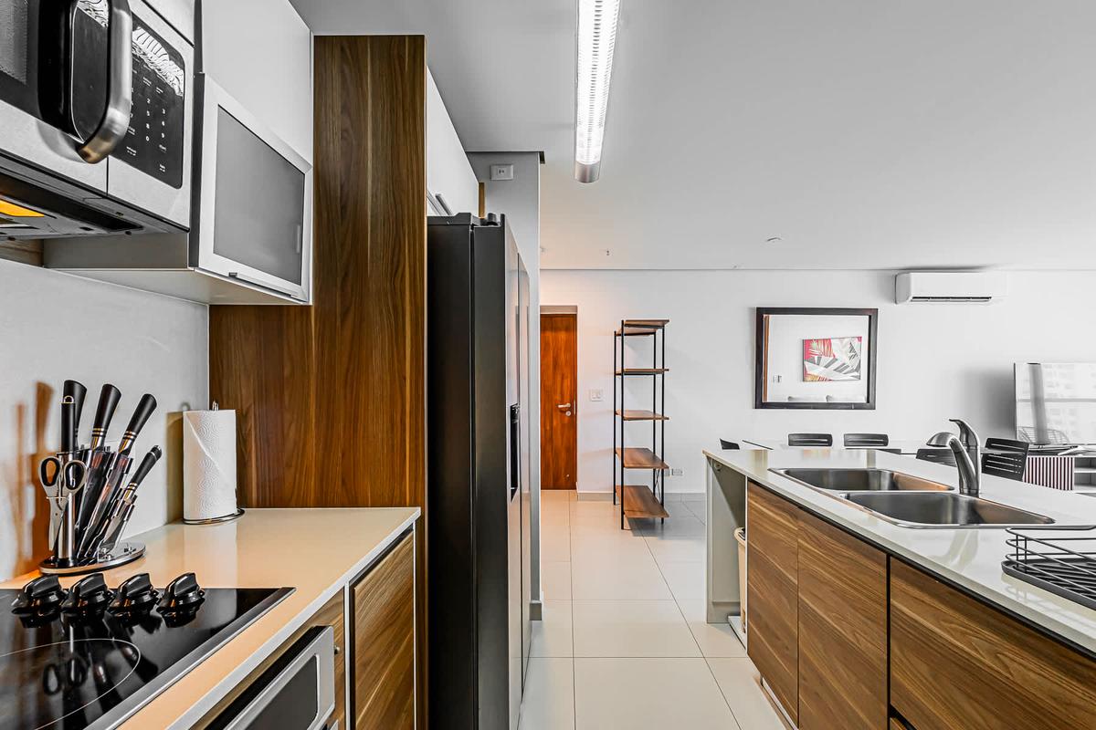 Stay at this 2BR with a full kitchen and spectacular views of Costa del Este. Nestled near the financial district, this upscale neighborhood exudes sophistication. It boasts proximity to multinational companies and a thriving urban vibe. This charming apartment offers a unique experience in the heart of Panama City. Surrounded by the bustling energy of the city, this modern retreat provides a cozy haven for travelers seeking to immerse themselves in the vibrant culture and history of Panama. With its convenient location, guests can easily explore the nearby attractions, from iconic landmarks to trendy restaurants and cultural hotspots. Whether wandering through historic streets or enjoying panoramic views of the city skyline, this apartment is the perfect starting point for your Panama adventure.