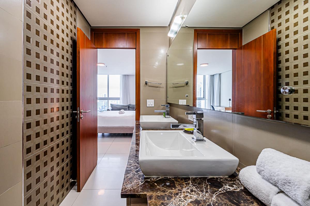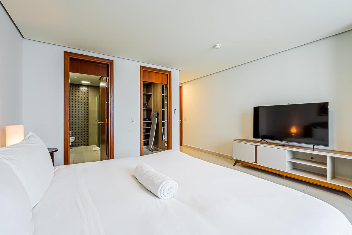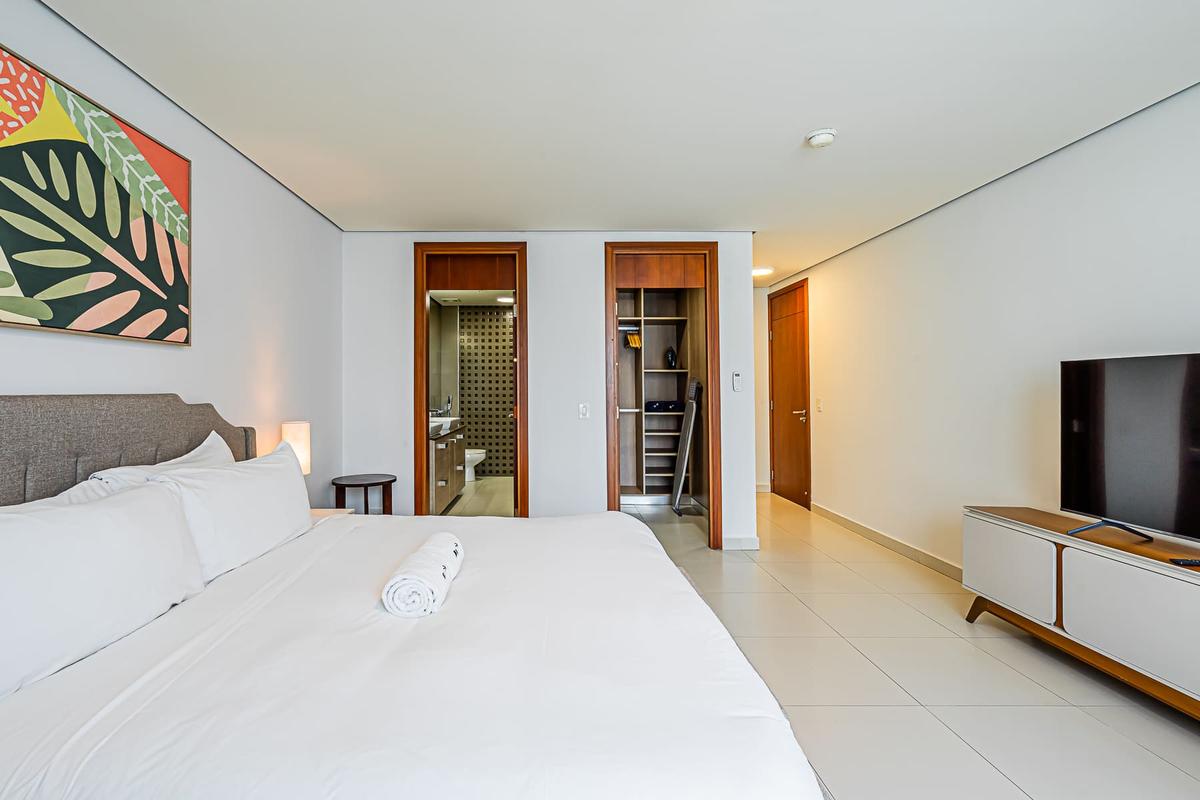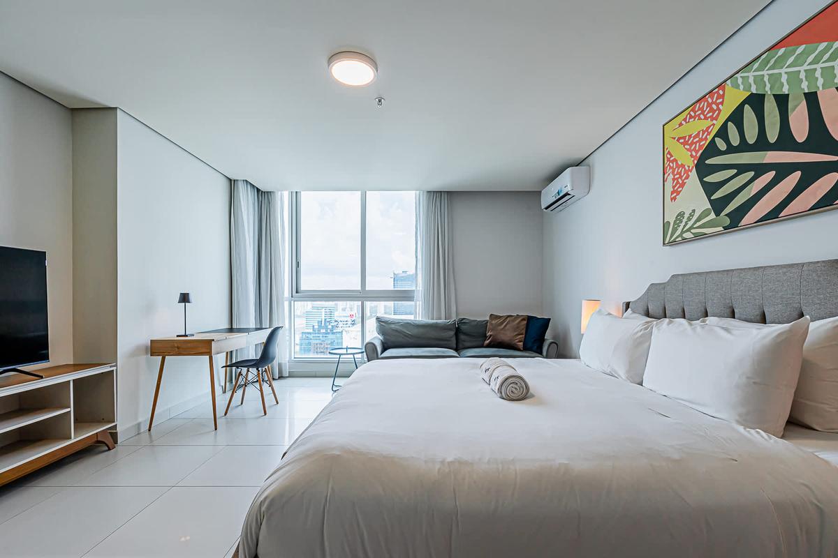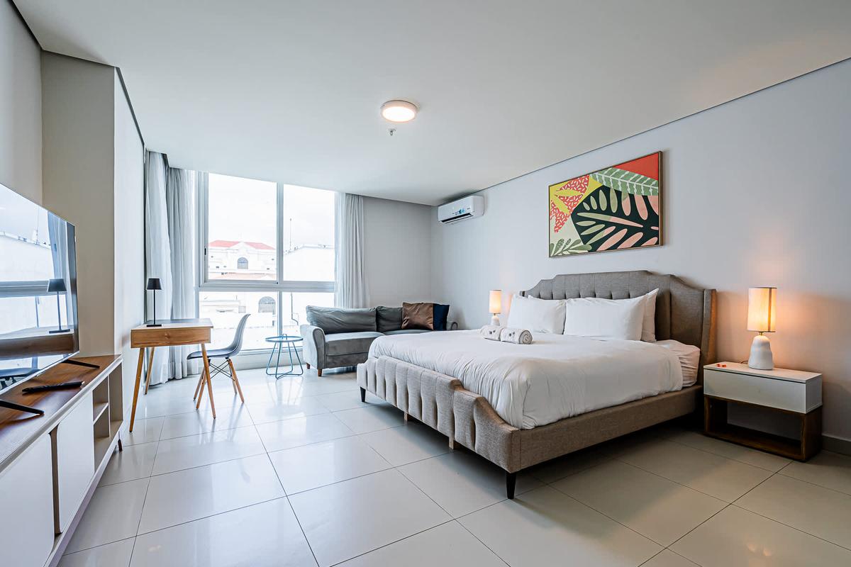 Stay at this 2BR with a full kitchen and spectacular views of Costa del Este. Nestled near the financial district, this upscale neighborhood exudes sophistication. It boasts proximity to multinational companies and a thriving urban vibe. This charming apartment offers a unique experience in the heart of Panama City. Surrounded by the bustling energy of the city, this modern retreat provides a cozy haven for travelers seeking to immerse themselves in the vibrant culture and history of Panama. With its convenient location, guests can easily explore the nearby attractions, from iconic landmarks to trendy restaurants and cultural hotspots. Whether wandering through historic streets or enjoying panoramic views of the city skyline, this apartment is the perfect starting point for your Panama adventure.