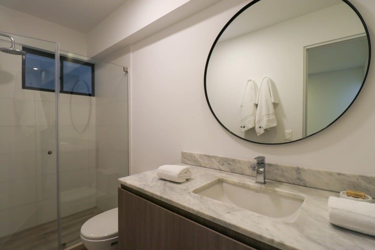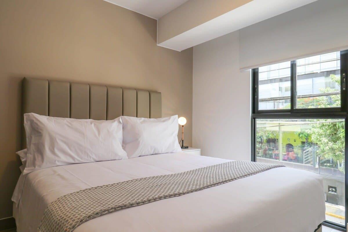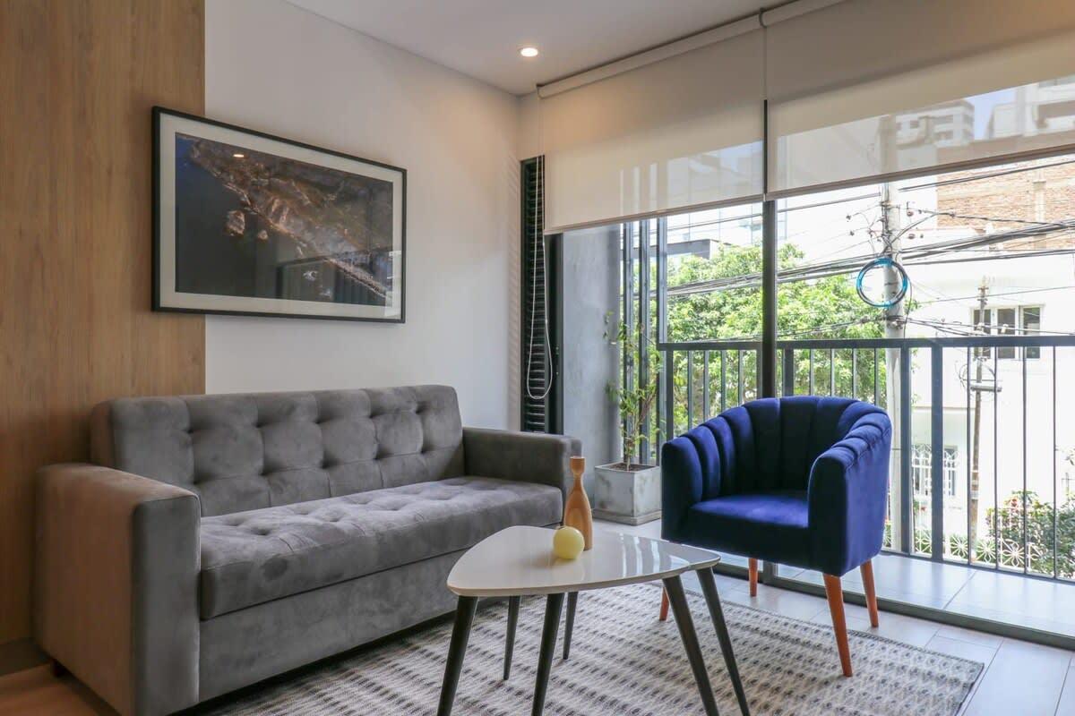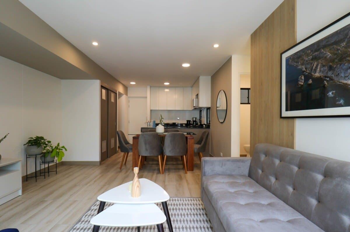 In the welcoming Miraflores neighborhood, this beautiful apartment it's very well located; just minutes away from Larcomar shopping center, Parque Kennedy, Virgen de Fatima Parish, and exclusive gyms. The area has currency exchange services, and labs centers in case you need to take a test, such as ROE and Multilab.
