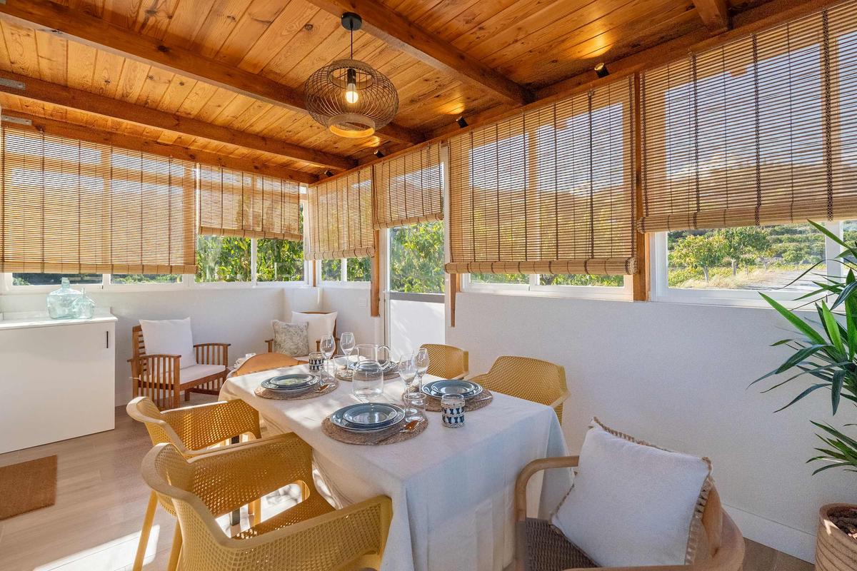 Upon entering, you'll be welcomed by bright and cozy spaces. On the ground floor, a charming glass-enclosed dining room with a reading area invites you to relax while enjoying a good book or a snack with company. Next, the living-dining area opens up into a warm and elegant atmosphere, accompanied by a bedroom with a queen-sized bed and a beautiful bathroom. The living room also features a sofa bed for additional guests. Outside, the private pool invites you to cool off and unwind under the sun while taking in the serenity of the natural surroundings. With breathtaking views and a calm atmosphere, every moment here becomes a postcard-worthy memory.
