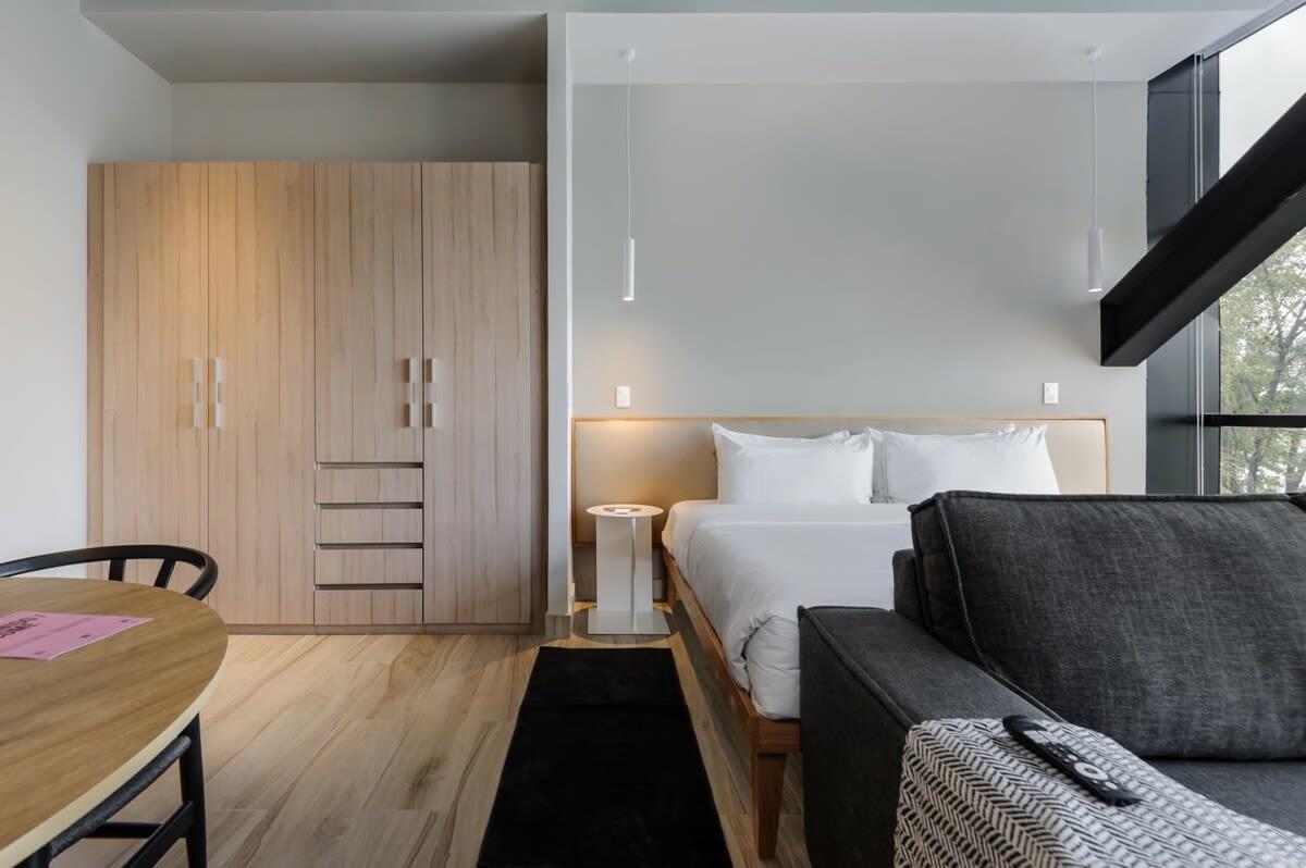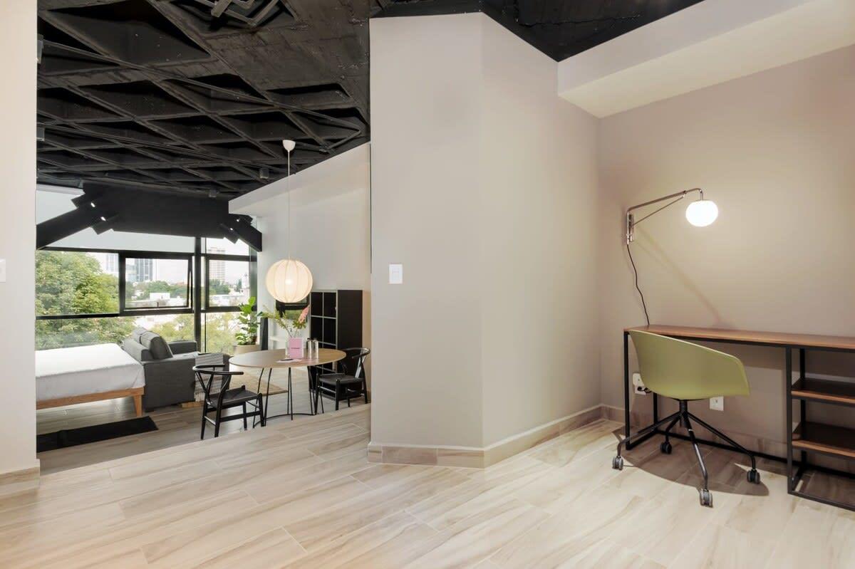 This loft is located in the center of Mexico City's, Anzures. Anzures is known as an oasis in the bustle of the city, Anzures is a refined residential neighborhood with a relaxed atmosphere. This neighborhood you can find good art, gastronomy and fashion living together in a discreet current environment.