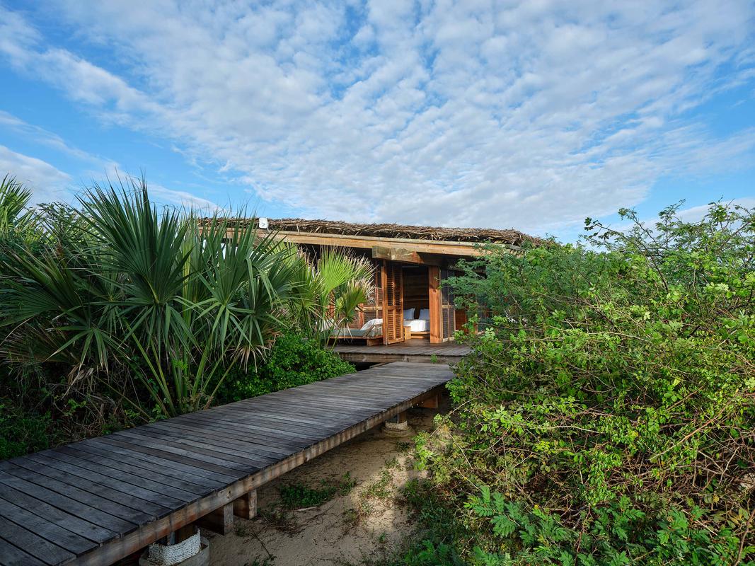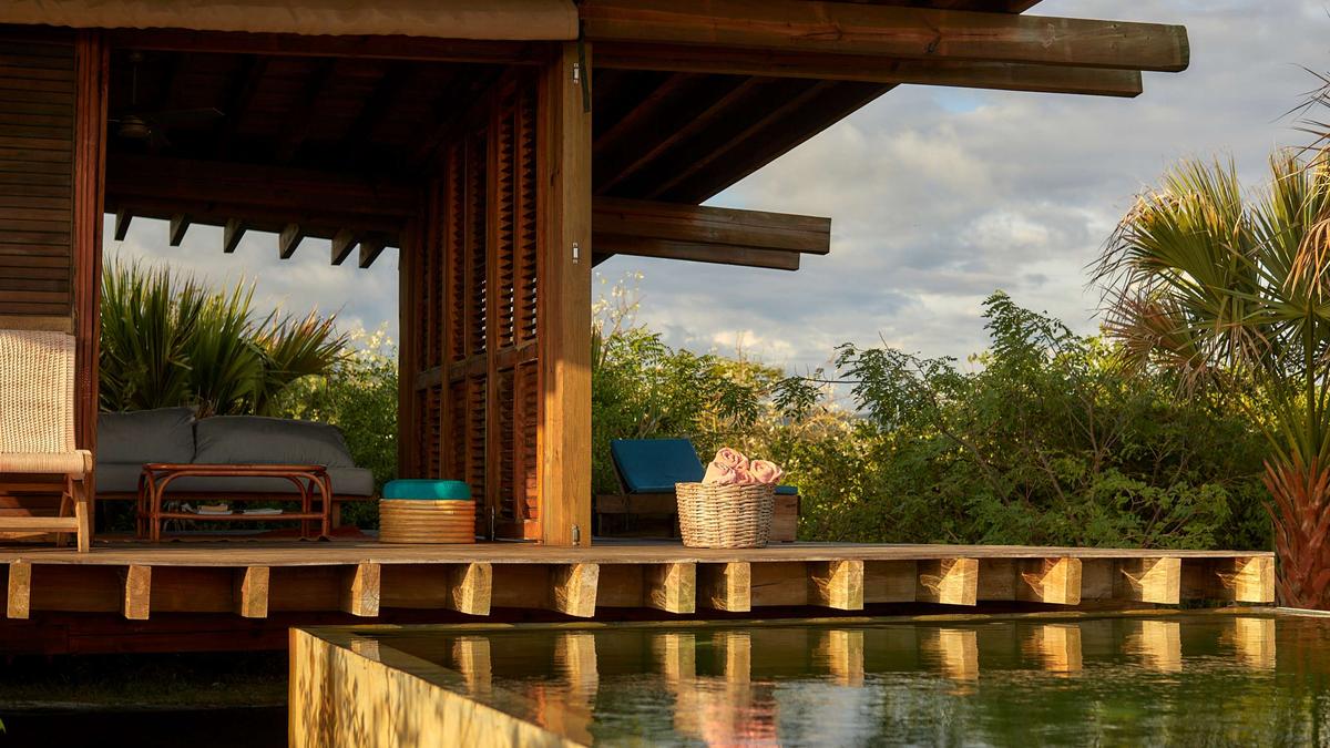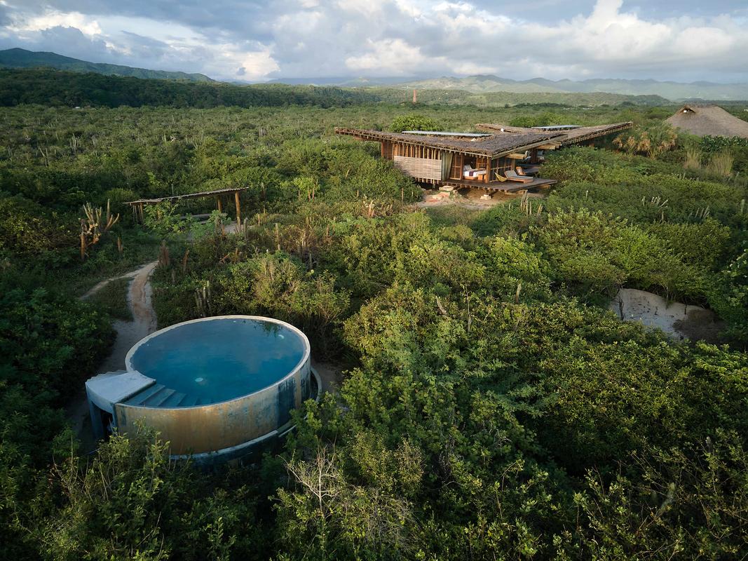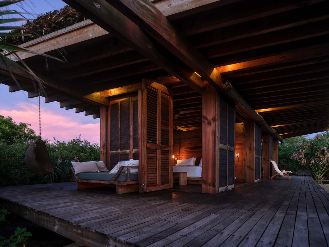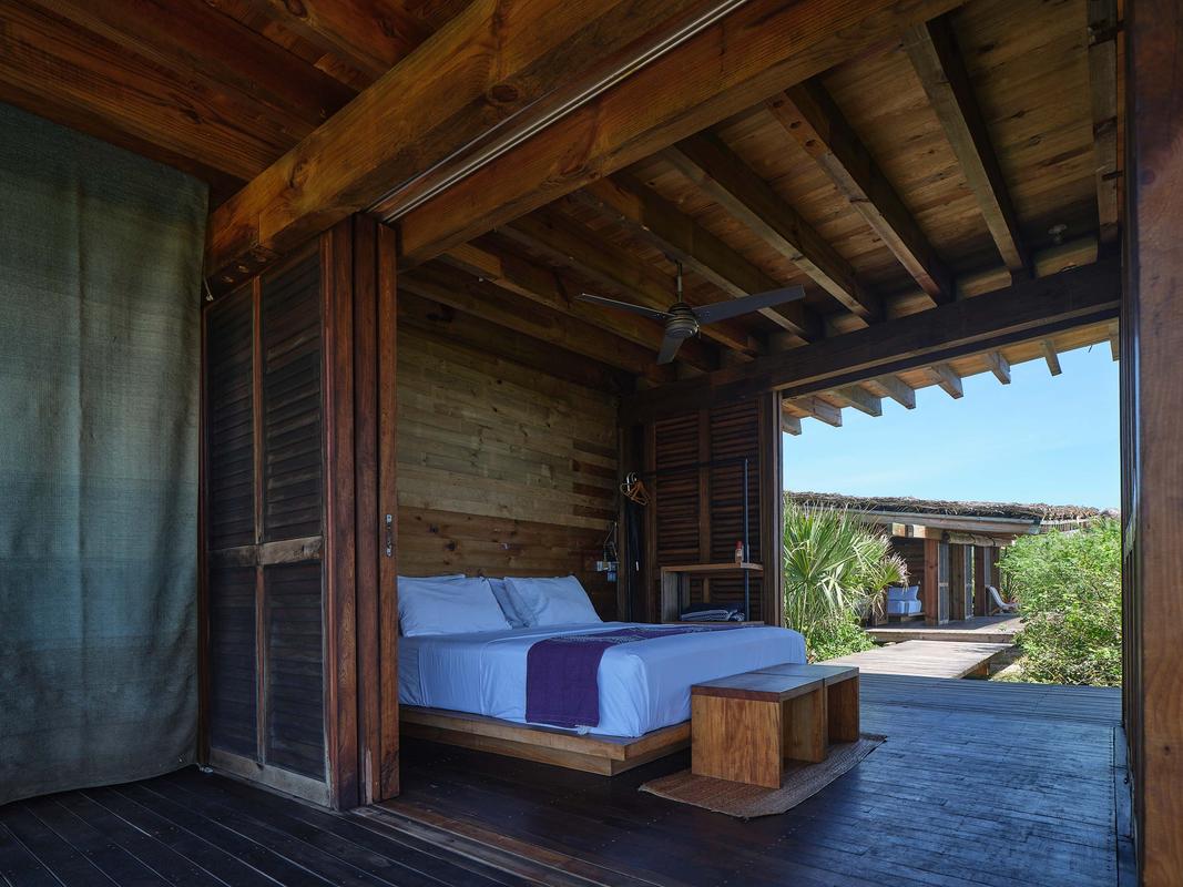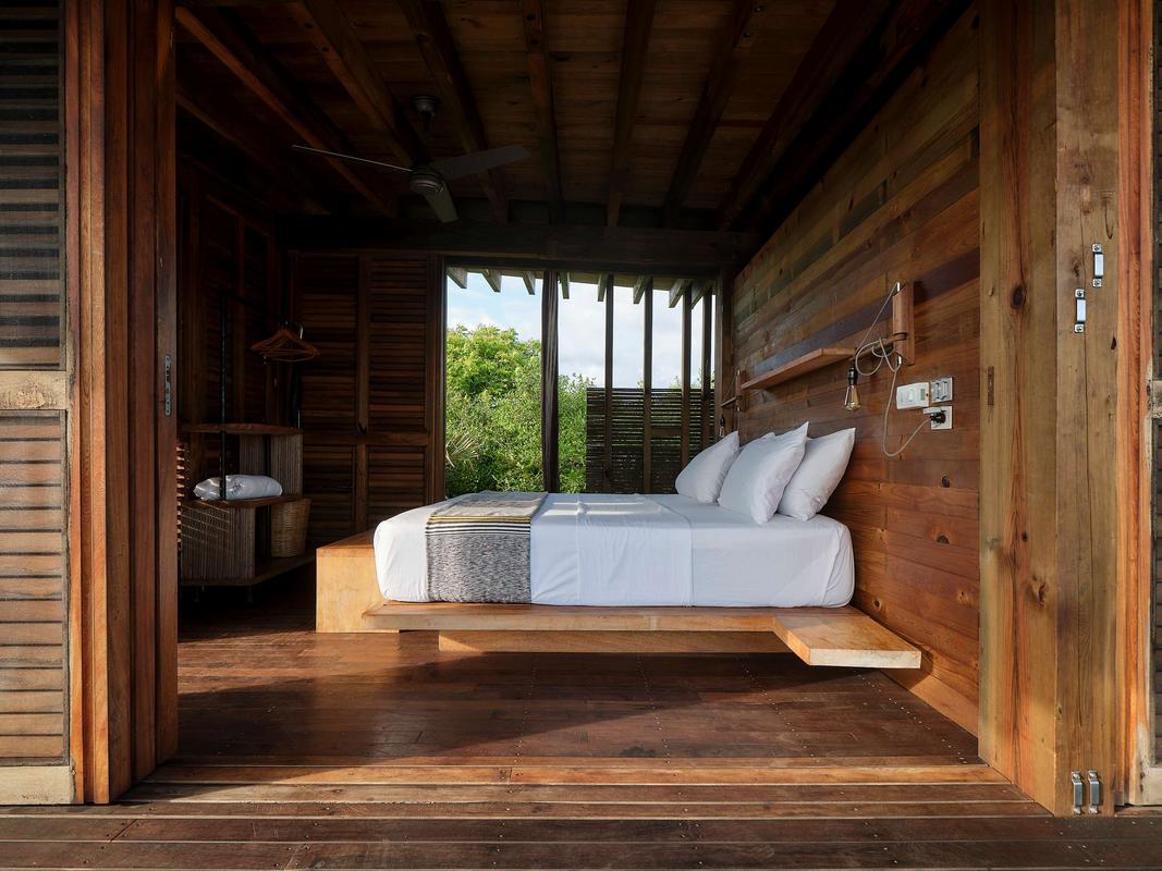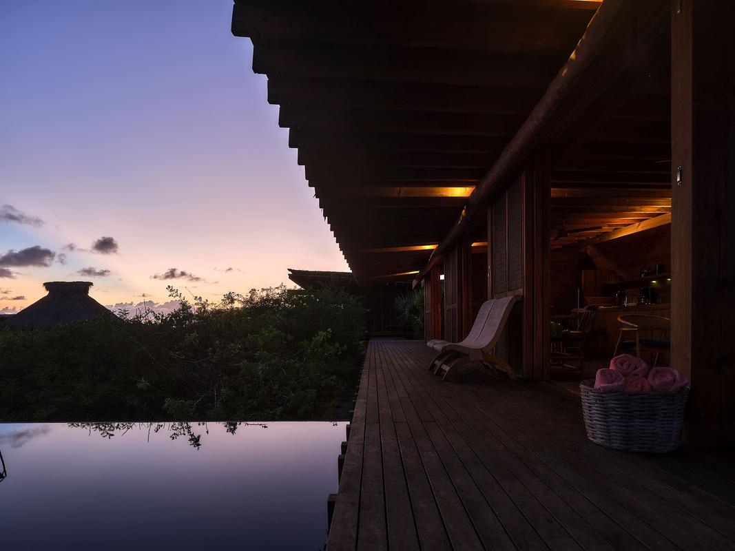 This spectacular beachfront villa features a beautiful private pool and spaces designed for pure relaxation. Thoughtfully designed with attention to detail, it combines vintage furniture with exclusive decor. Its elevated structure respects the surrounding vegetation and offers unparalleled views of the natural environment. The villa is equipped with a kitchenette, two full bathrooms, a living room, dining area, two bedrooms with king-size beds, and a fully furnished terrace, providing everything you need for an unforgettable experience. Additionally, it is located just a short distance from the complex's impressive Olympic-sized pool. The complex also offers a variety of amenities, including the La Palapa restaurant, where you can enjoy breakfast, lunch, and dinner. It also features a fully equipped yoga pavilion, three stunning pools, beachfront pergolas, and trails perfect for exploring the beach and pathways surrounded by lush vegetation.