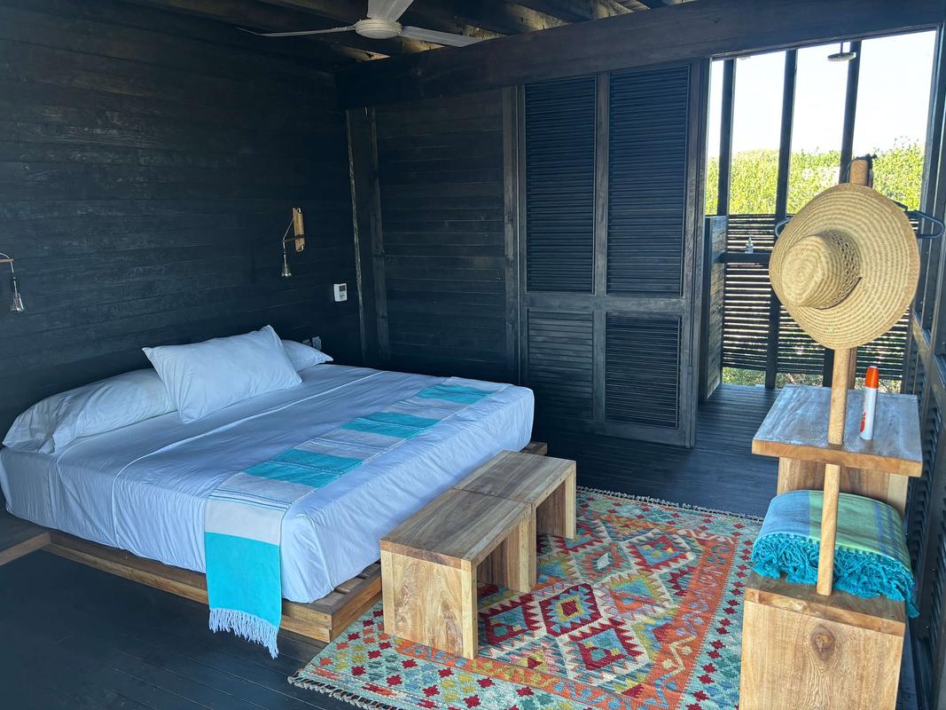 Esta espectacular villa frente al mar cuenta con una hermosa piscina privada y espacios diseñados para la relajación absoluta. Diseñada cuidadosamente y cuidando cada detalle, combina muebles vintage con una decoración exclusiva. Su estructura elevada respeta la vegetación circundante y ofrece vistas inigualables al entorno natural. La villa está equipada con una pequeña cocina, dos baños completos, sala, comedor, dos recámaras con camas king size y una terraza completamente amueblada, brindando todo lo necesario para una experiencia inolvidable. Además, se encuentra a poca distancia de la impresionante piscina olímpica del complejo. El complejo también ofrece una variedad de amenidades, incluido el restaurante La Palapa, donde podrá disfrutar del desayuno, el almuerzo y la cena. También cuenta con un pabellón de yoga completamente equipado, tres impresionantes piscinas, pérgolas frente al mar y senderos perfectos para explorar la playa y caminos rodeados de exuberante vegetación. INFORMACIÓN IMPORTANTE: No se admiten niños menores de 12 años. Se proporciona servicio de limpieza diaria de la habitación a menos que el huésped solicite lo contrario. Las cancelaciones realizadas con menos de 7 días de antelación no son reembolsables.