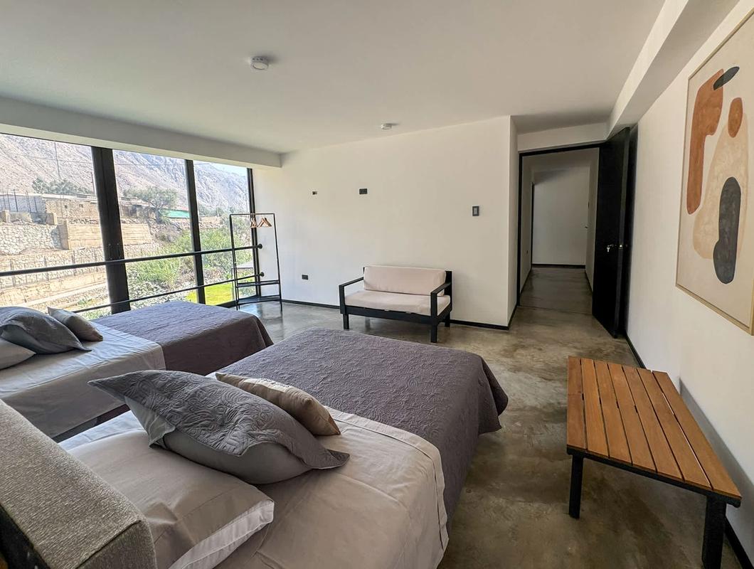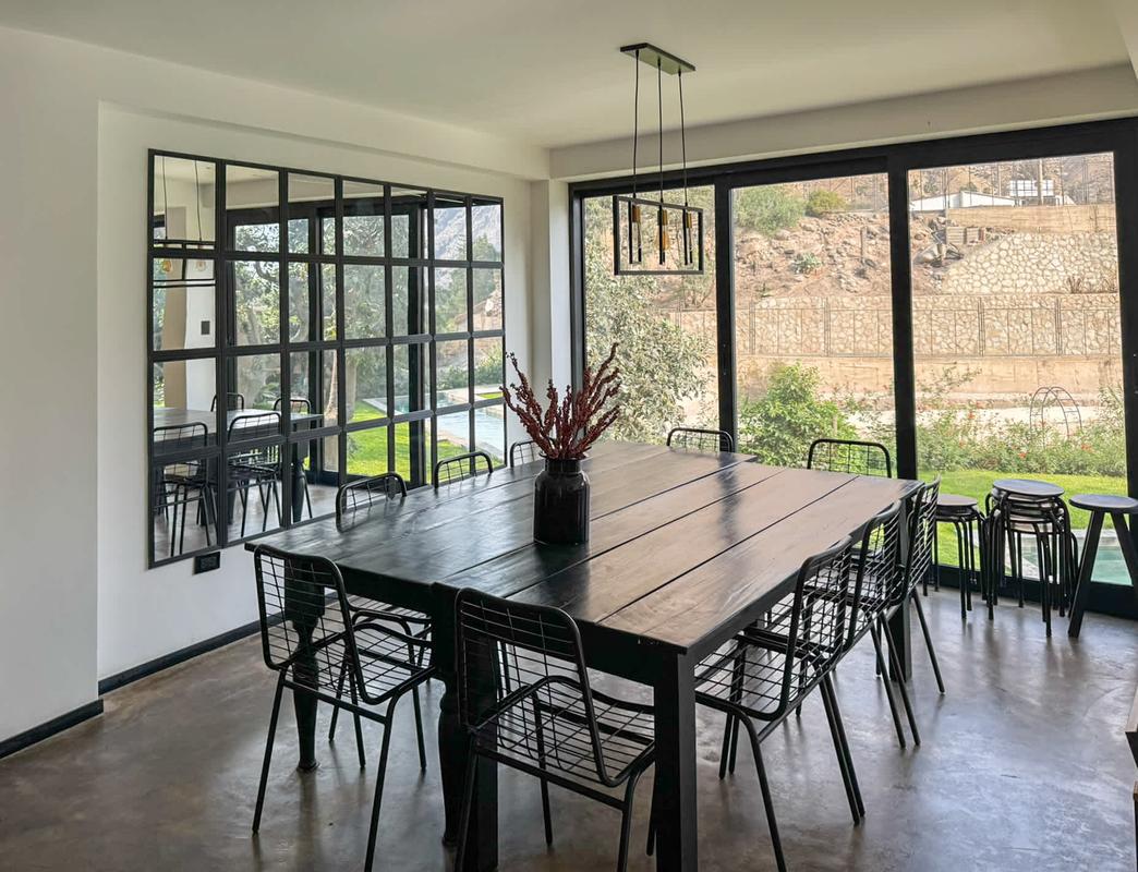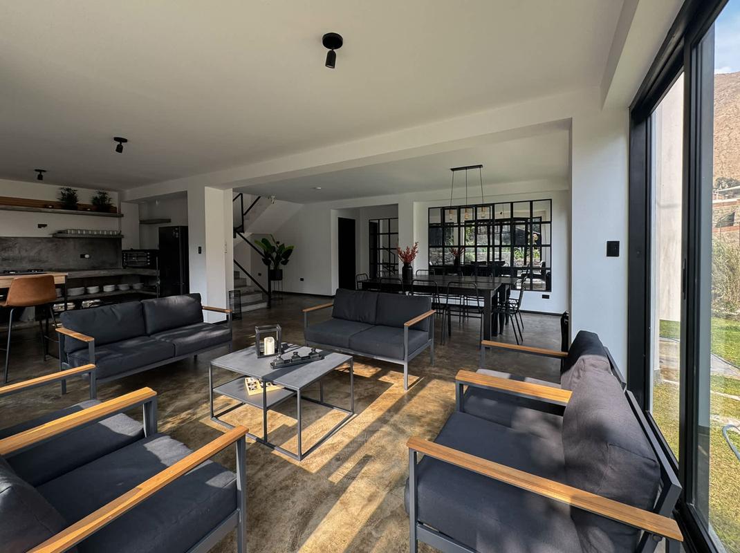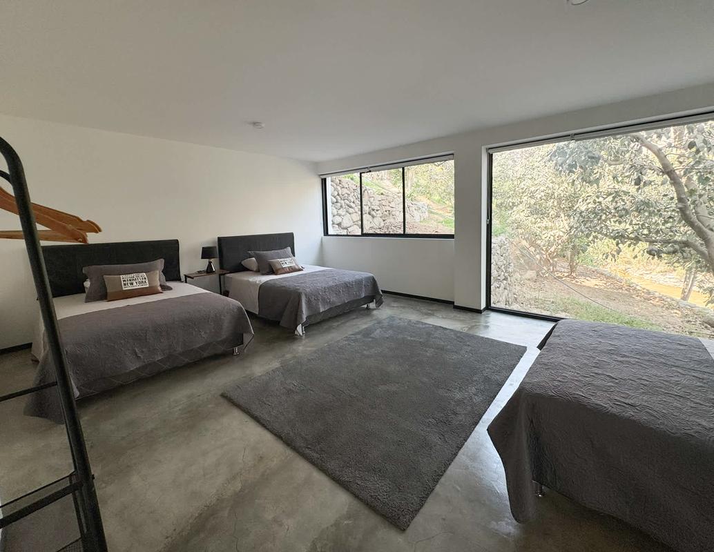 Welcome to a nature-surrounded retreat, perfect for large groups. This charming house accommodates up to 20 guests in 7 cozy bedrooms and features 3 full bathrooms, including one with a jacuzzi and another with a bathtub for a touch of luxury. The cool climate and serene environment invite deep, restorative rest—accompanied only by birdsong and the gentle breeze. For group evenings, the main living room includes a movable 49’’ TV, ideal for movie marathons with great company. Outside, the magic continues: a spectacular 20-meter private pool, automatically lit at dusk, becomes the heart of the garden—framed by river views and fruit trees. Evenings are perfect for gathering around the outdoor fireplace, enjoying a delicious BBQ, or unwinding with ping pong and poker in the game-filled basement. The property spans 2,200 m² within an exclusive 6,000 m² private compound that hosts only two properties, surrounded by avocado, soursop, and lucuma trees. It is fully fenced internally to ensure complete privacy throughout your stay. The house consists of three levels and a basement: the rental area includes the first and second floors, as well as the basement, while the third floor houses separate apartments with their own private entrance—so your comfort and tranquility remain uninterrupted. This natural, healthy, and sustainable setting is a true sanctuary where connecting with nature becomes an essential part of the experience. IMPORTANT INFORMATION *Bath towels are not provided, so we recommend guests bring their own. *Cancellations made less than 14 days before the arrival date are non-refundable.