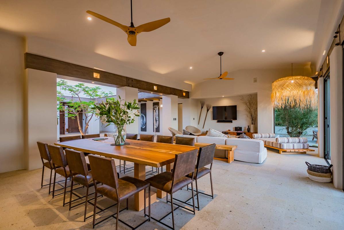 Relax in the luxurious spaces of this beautiful villa, located in the prestigious Cabo del Sol community. With a minimalist design and soothing tones, this retreat offers the perfect blend of privacy and comfort for an unforgettable vacation. The villa features 5 bedrooms and 5 bathrooms, accommodating up to 12 guests. Spend your days in the heated pool, feeling the ocean breeze and taking in the stunning views of the Sea of Cortez on one side and the lush golf course on the other. At night, unwind by the fire pit under the stars or share laughter with loved ones in the outdoor spaces. The villa also includes a jacuzzi, an outdoor dining area for 10, an open-air kitchen with BBQ, sun loungers with umbrellas, and a lounge area with fire pit—perfect for enjoying outdoor living. Inside, the villa is equally impressive, featuring a fully equipped kitchen with breakfast bar, indoor dining for 12, wine fridge, modern sound system, satellite TVs with DVD player, and wireless internet. All bedrooms are air-conditioned for maximum comfort throughout your stay. The kitchen, combined with breakfast and lunch prepared by a private chef (ingredients not included), ensures every meal is a memorable experience. Located close to world-class golf courses, pristine beaches, and Cabo’s vibrant nightlife, this villa is the ideal destination for families or groups seeking serenity and sophistication. Book your stay and immerse yourself in the luxury and breathtaking beauty of Cabo del Sol. IMPORTANT INFORMATION Cancellations can be made up to 60 days prior to the arrival date. After this period, payments are non-refundable. Bookings for Thanksgiving, Christmas, New Year’s, and Easter are non-refundable. A $2,500 security deposit will be charged and fully refunded as long as no damages are reported to the property. Smoking is strictly prohibited on the premises; violations may incur a fine of up to $500 USD. At least one guest must be 30 years of age or older and act as the responsible party for the group. Your reservation includes daily housekeeping service, which will not be provided on Sundays or Mexican public holidays.