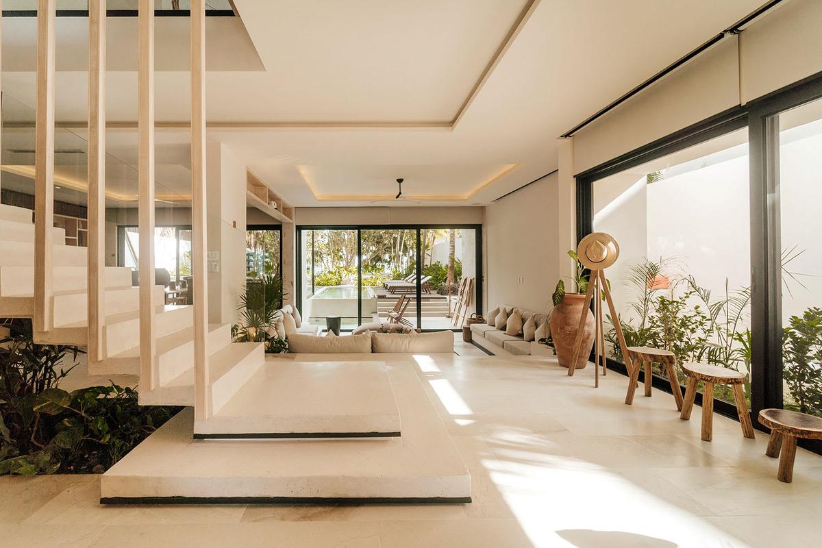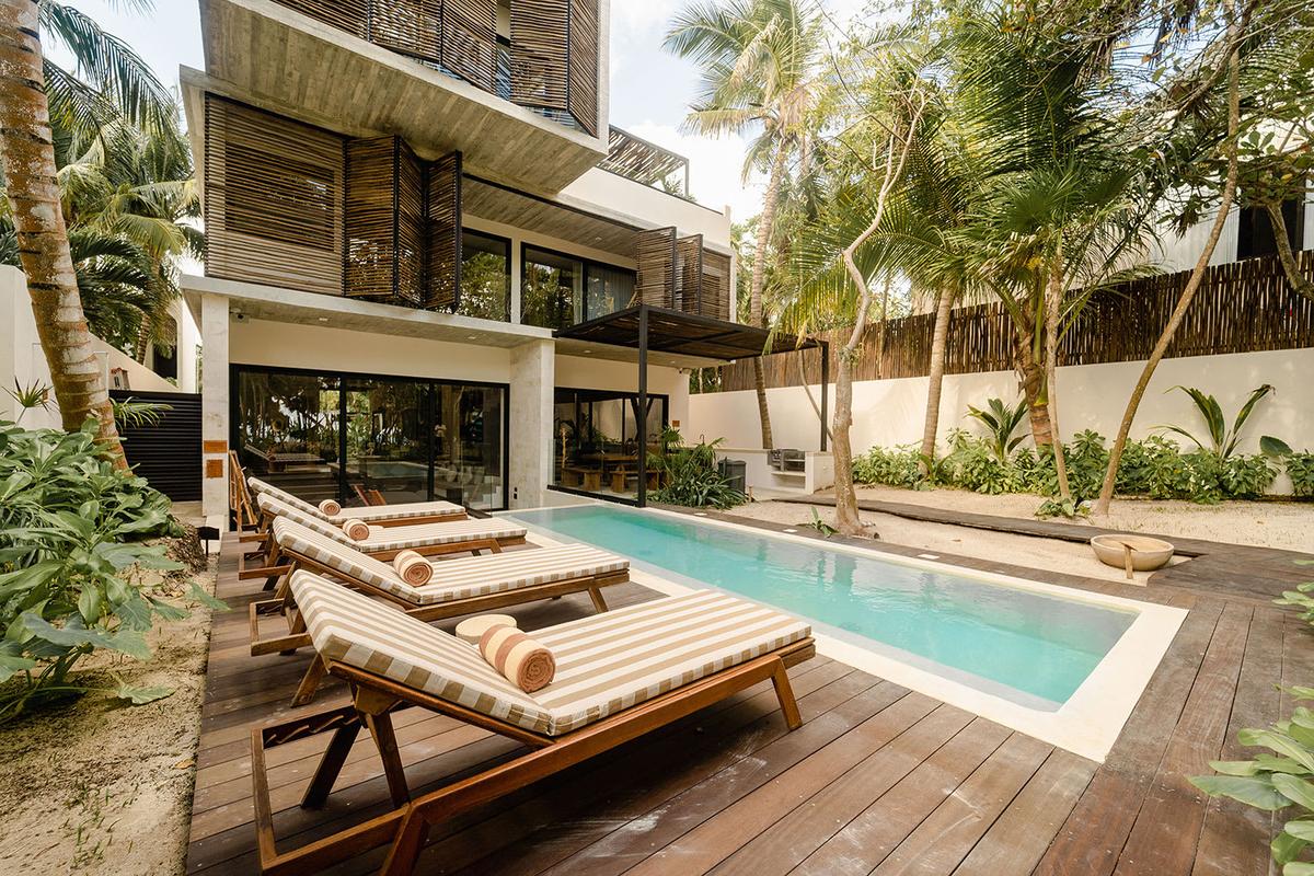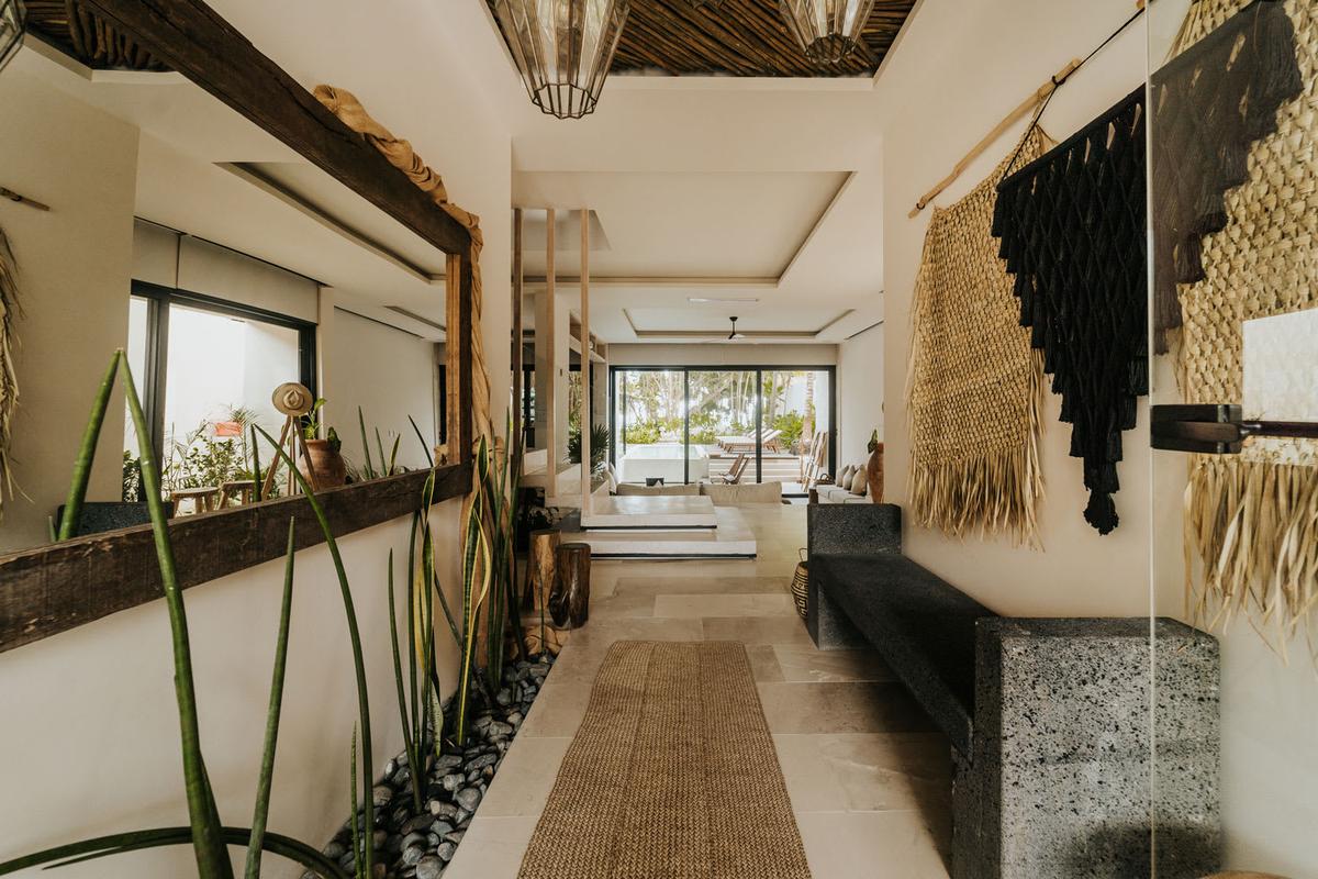 Surrounded by palm trees and ocean breeze, this beachfront home was designed to sync with the rhythm of the sea. Its wooden-covered terraces provide the perfect shaded spot to relax in hammocks by the water, while a designer pool seamlessly blends into a heated jacuzzi that leads to an open-concept living area. From there, life flows effortlessly between indoor and outdoor spaces, creating the perfect atmosphere for unwinding and enjoying. Spread over three levels, the property features six bedrooms—three with ocean views and three overlooking the jungle and sunsets—giving each guest a unique visual experience. Accommodating up to 12 guests, the villa offers both spaciousness and privacy. Each room has a private balcony, walk-in shower, thoughtful details like walk-in closets, TVs, and privileged views. The king-bed suites are perfect for couples, while the rooms with two queen beds are ideal for families or groups of friends. Service includes two private chefs available daily from 8:00 AM to 8:00 PM, preparing personalized meals (groceries billed separately). The experience is completed with daily housekeeping, concierge service before and during the stay, and high-speed Starlink internet for those who need to stay connected. Kayaks and paddle boards are also available for exploring the reef’s shallow waters. Located within a private gated community with 24/7 security, this property is ideal for those who value exclusivity, comfort, and a deep connection to nature. The heated pool and multiple outdoor areas allow guests to fully enjoy the Caribbean climate—whether relaxing in the afternoon or dining al fresco with the sound of the sea in the background. Fully equipped for carefree stays, this beachfront villa is a modern barefoot-luxury retreat. Powered by solar energy and surrounded by natural beauty, it offers the perfect balance between laid-back elegance and tropical authenticity—made for creating unforgettable memories with your favorite people. IMPORTANT INFORMATION Cancellations made up to 65 days before arrival will be fully refunded. After that, no refunds will be issued under any circumstances. Check-in / Check-out: Check-in from 3:00 PM | Check-out by 11:00 AM Maximum capacity (12 guests): Additional visitors require prior approval and the purchase of day passes. Neighborhood respect: Quiet hours begin at 10:00 PM. Parties and noise: Loud parties and external sound systems are not permitted.