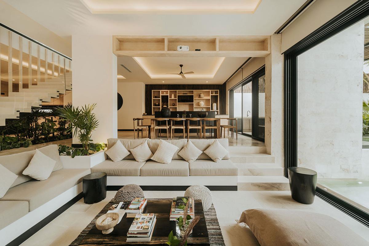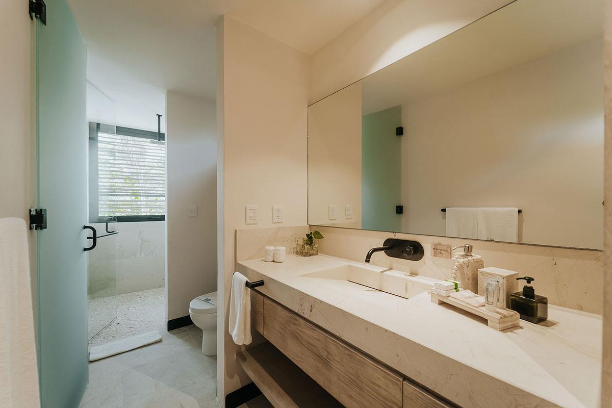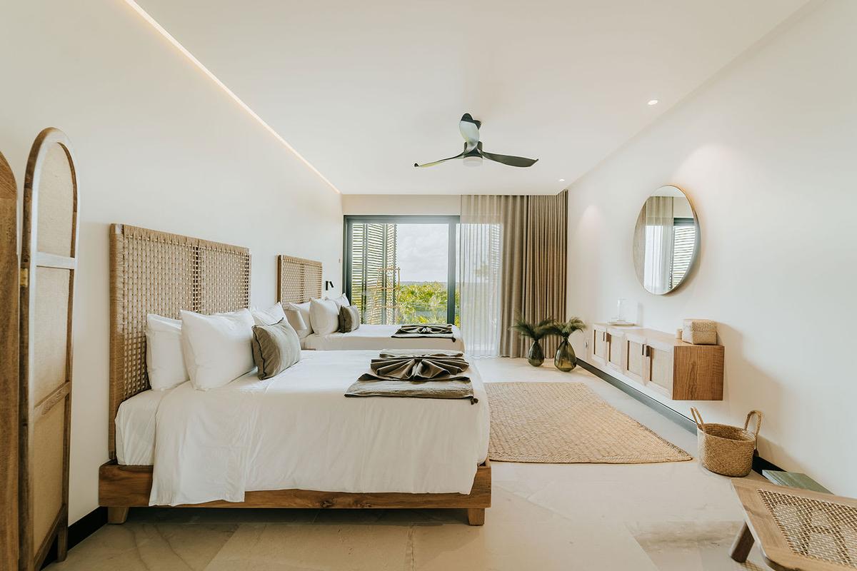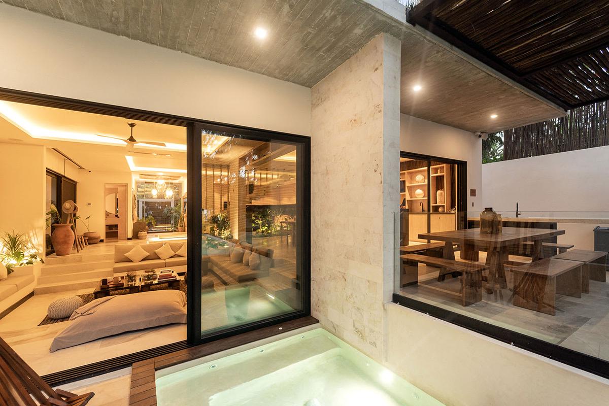 Surrounded by palm trees and ocean breeze, this beachfront home was designed to sync with the rhythm of the sea. Its wooden-covered terraces provide the perfect shaded spot to relax in hammocks by the water, while a designer pool seamlessly blends into a heated jacuzzi that leads to an open-concept living area. From there, life flows effortlessly between indoor and outdoor spaces, creating the perfect atmosphere for unwinding and enjoying. Spread over three levels, the property features six bedrooms—three with ocean views and three overlooking the jungle and sunsets—giving each guest a unique visual experience. Accommodating up to 12 guests, the villa offers both spaciousness and privacy. Each room has a private balcony, walk-in shower, thoughtful details like walk-in closets, TVs, and privileged views. The king-bed suites are perfect for couples, while the rooms with two queen beds are ideal for families or groups of friends. Service includes two private chefs available daily from 8:00 AM to 8:00 PM, preparing personalized meals (groceries billed separately). The experience is completed with daily housekeeping, concierge service before and during the stay, and high-speed Starlink internet for those who need to stay connected. Kayaks and paddle boards are also available for exploring the reef’s shallow waters. Located within a private gated community with 24/7 security, this property is ideal for those who value exclusivity, comfort, and a deep connection to nature. The heated pool and multiple outdoor areas allow guests to fully enjoy the Caribbean climate—whether relaxing in the afternoon or dining al fresco with the sound of the sea in the background. Fully equipped for carefree stays, this beachfront villa is a modern barefoot-luxury retreat. Powered by solar energy and surrounded by natural beauty, it offers the perfect balance between laid-back elegance and tropical authenticity—made for creating unforgettable memories with your favorite people. IMPORTANT INFORMATION Cancellations made up to 65 days before arrival will be fully refunded. After that, no refunds will be issued under any circumstances. Check-in / Check-out: Check-in from 3:00 PM | Check-out by 11:00 AM Maximum capacity (12 guests): Additional visitors require prior approval and the purchase of day passes. Neighborhood respect: Quiet hours begin at 10:00 PM. Parties and noise: Loud parties and external sound systems are not permitted.