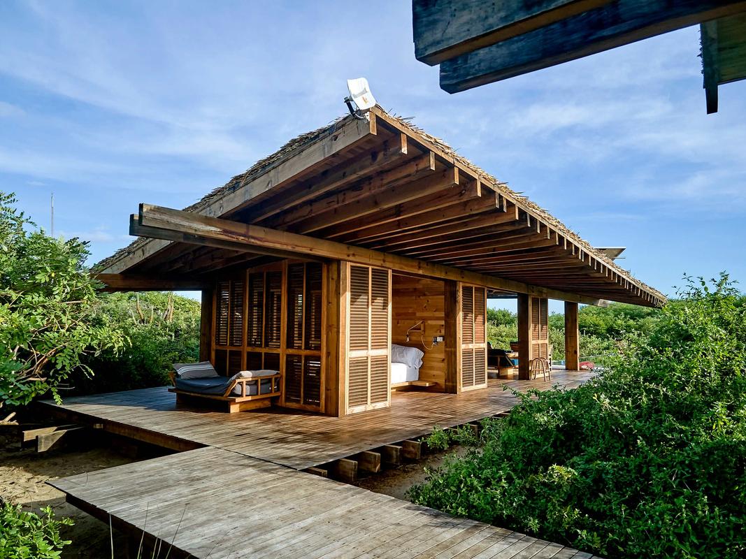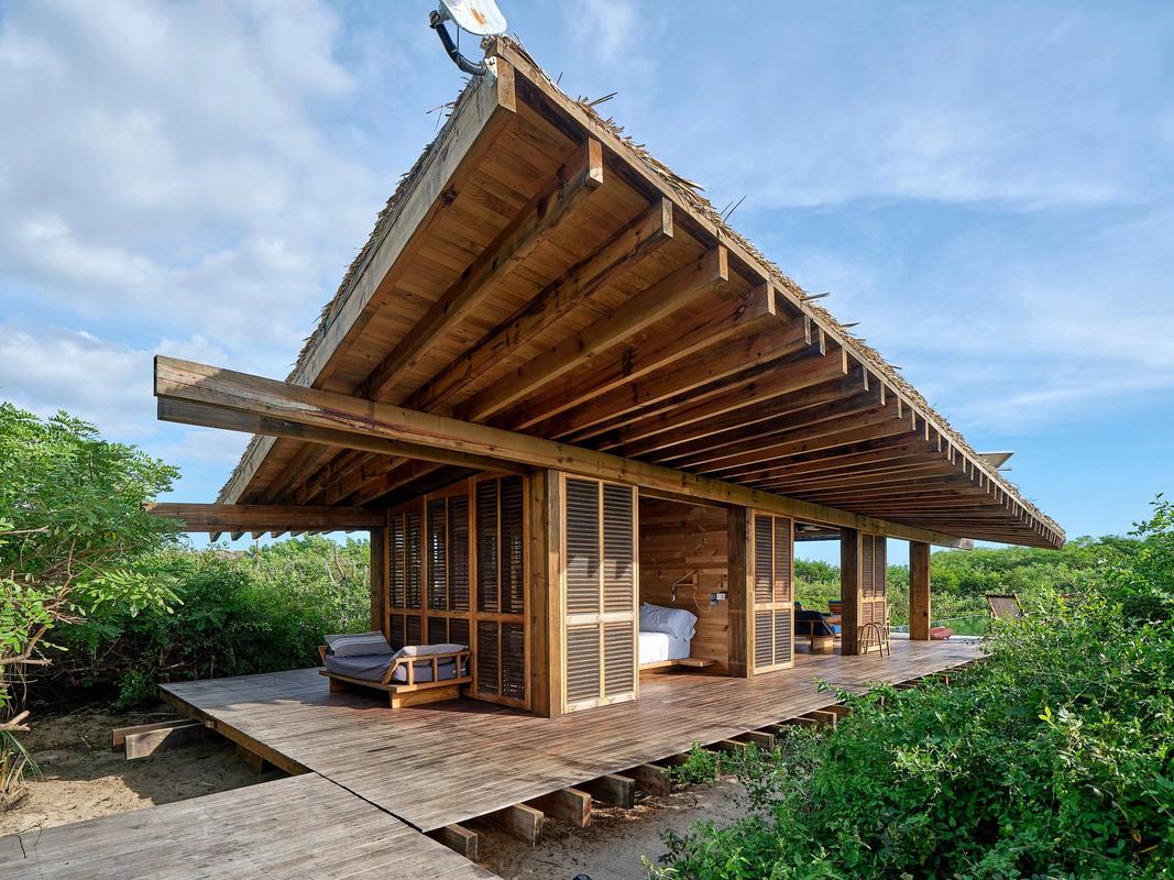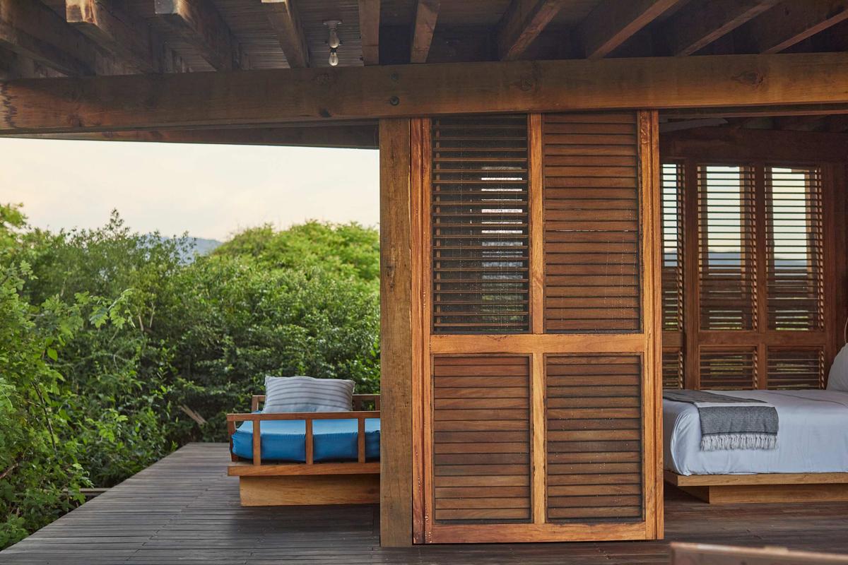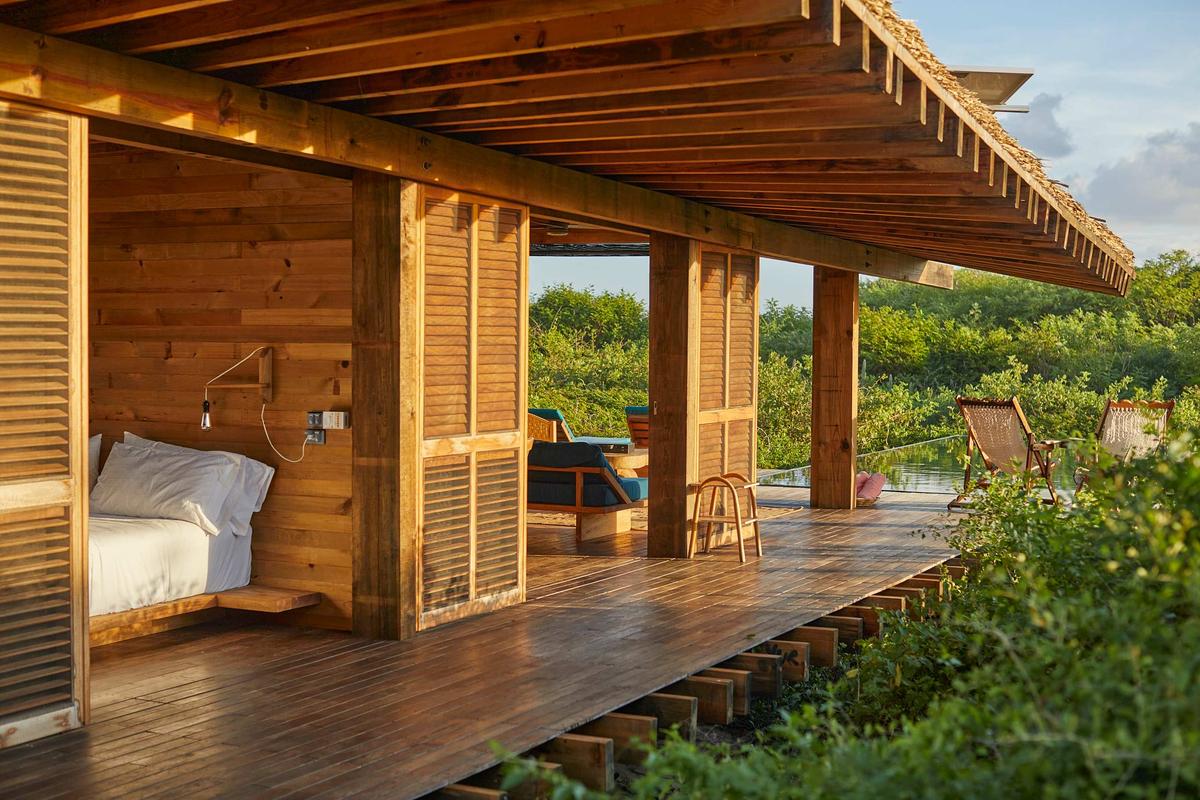 This spectacular villa, located in the heart of the jungle, features a beautiful private pool and spaces designed for relaxation. Thoughtfully designed with attention to detail, it combines vintage furniture with exclusive decor. Its elevated structure respects the surrounding vegetation and offers unparalleled views of the natural environment. The villa is actually two villas connected by a hallway. It is equipped with a kitchenette, three full bathrooms, a living room, dining room, three bedrooms with king-size beds, and a fully furnished terrace, providing everything you need for an unforgettable experience. Additionally, it is just a short distance from the complex's impressive Olympic-sized pool. The complex also offers a variety of amenities, such as the La Palapa restaurant, where you can enjoy breakfast, lunch, and dinner. It also features a fully equipped yoga pavilion, three stunning pools, beachfront pergolas, and trails perfect for exploring the beach and pathways surrounded by lush vegetation.