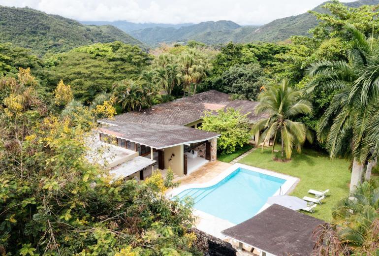 Immerse yourself in the tranquility of this beautiful 5-bedroom house, all equipped with fans, and 6 bathrooms. Enjoy a comfortable, fully equipped kitchen and an elegant living-dining area, perfectly decorated to create a warm and inviting atmosphere. Relax in the pool while taking in breathtaking views, and unwind in a dedicated relaxation area featuring a jacuzzi and a barbecue space, ideal for preparing delicious outdoor meals. Surround yourself with the natural beauty that envelops this property, where lush vegetation creates a peaceful and harmonious setting for your stay.