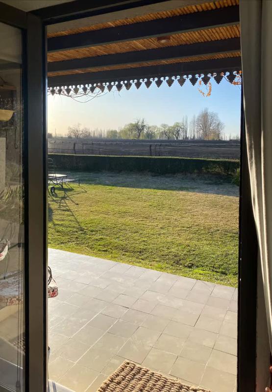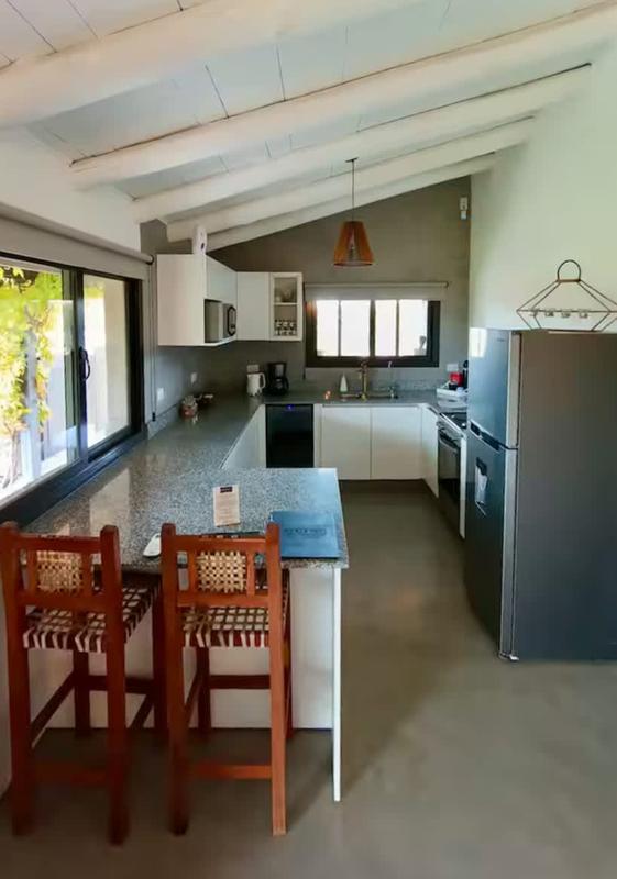 Enjoy a stay surrounded by vineyards with all the amenities for an unforgettable experience. The house features a whirlpool (currently without hot water), air conditioning in all rooms, and covered parking for two cars. You'll also enjoy 24-hour security, housekeeping during your stay, a fully equipped kitchen, a 30-inch Smart TV, and a speaker to enhance your relaxing moments. For those who enjoy gastronomy and the outdoors, the property offers a grill, disco, clay oven, indoor fireplace, and outdoor fire pit.