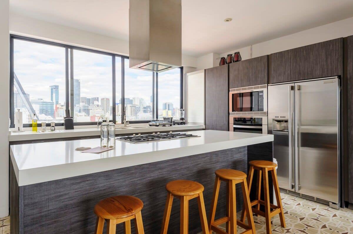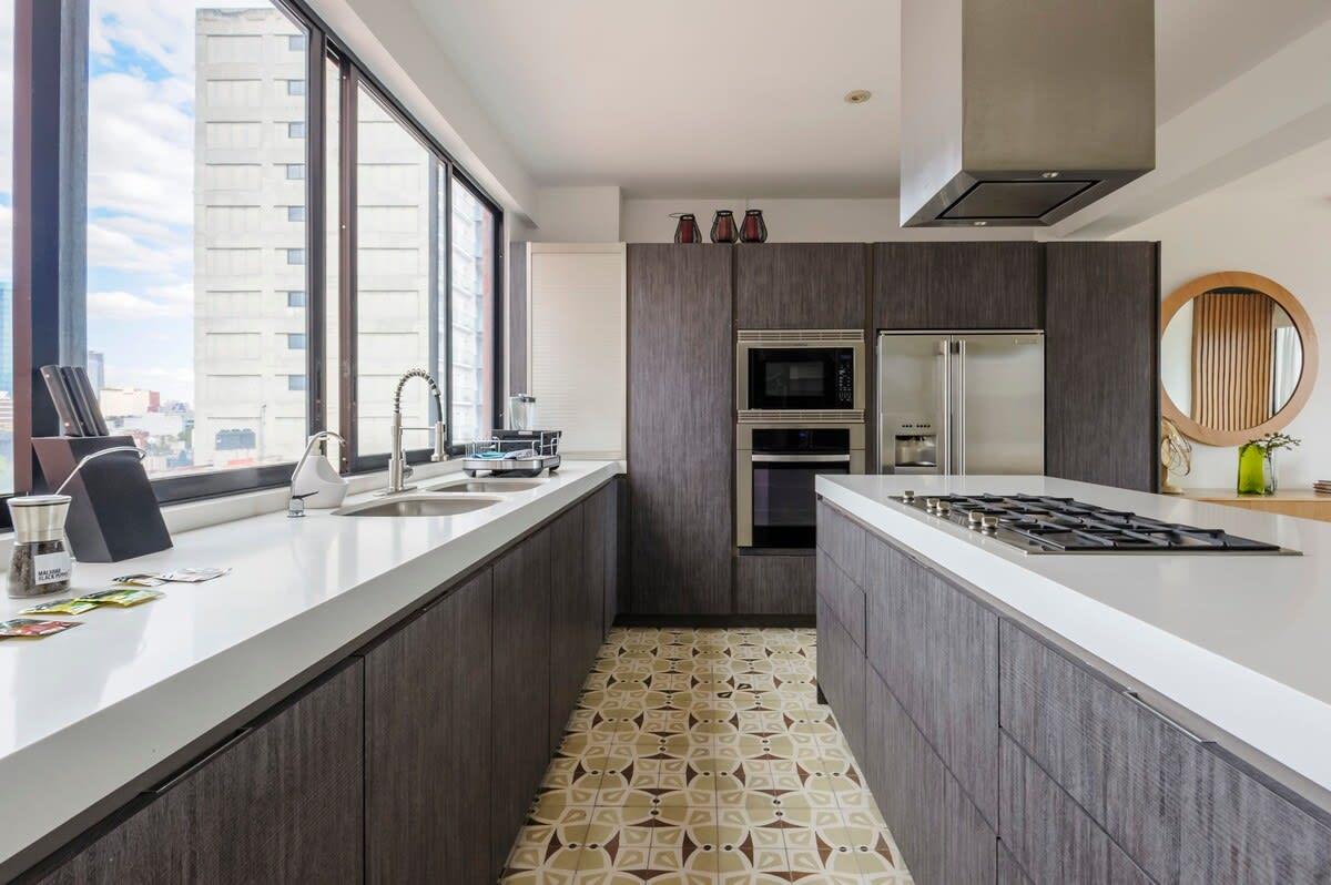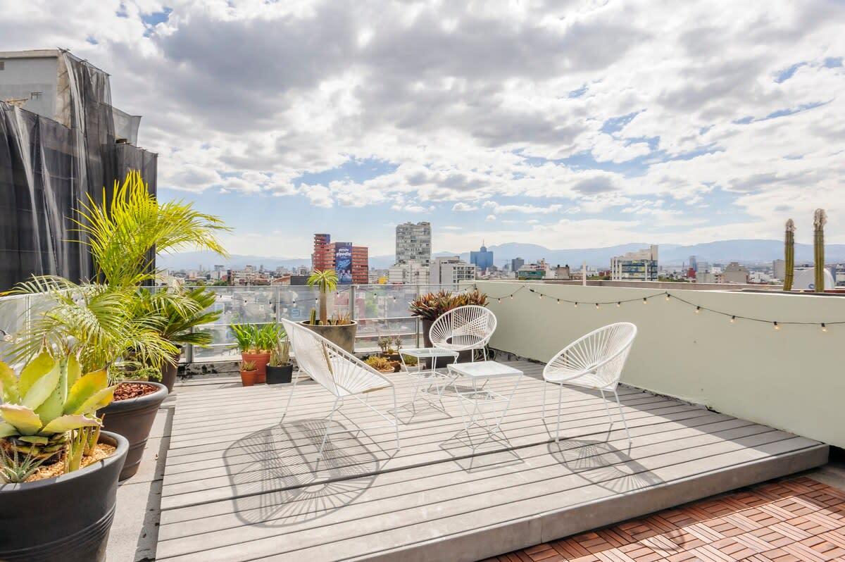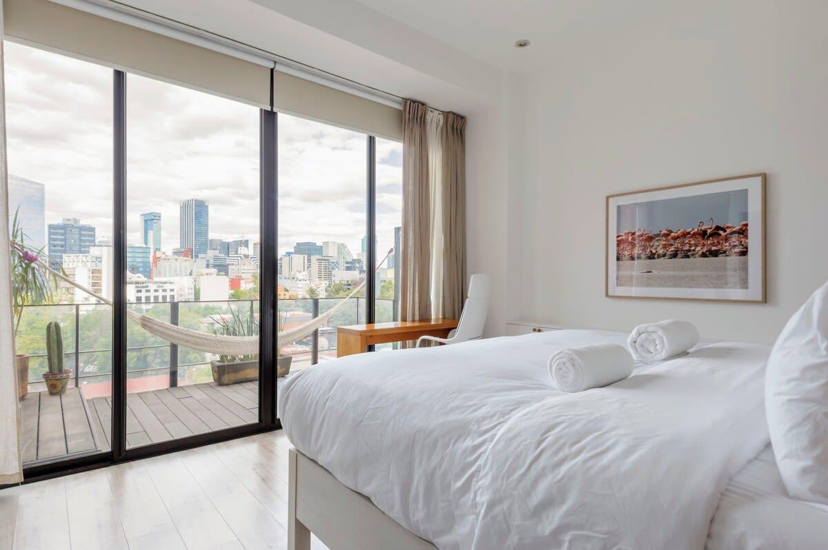 The 3BR apartment with balcony is located in the center of Mexico City's culinary and artistic zeitgeist, Roma Norte.