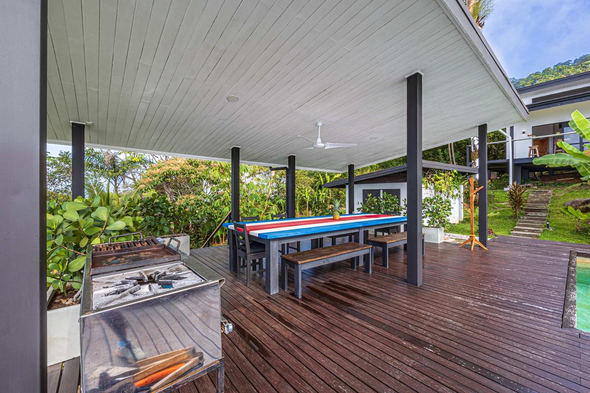 One of the major highlights is access to a spectacular shared pool surrounded by nature, shared only with three other villas—ensuring peace and privacy. Guests can also unwind on the sun loungers, refresh in the outdoor shower, or enjoy a night by the firepit under the stars.