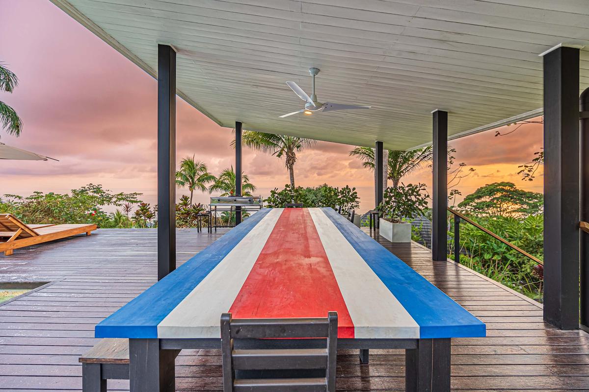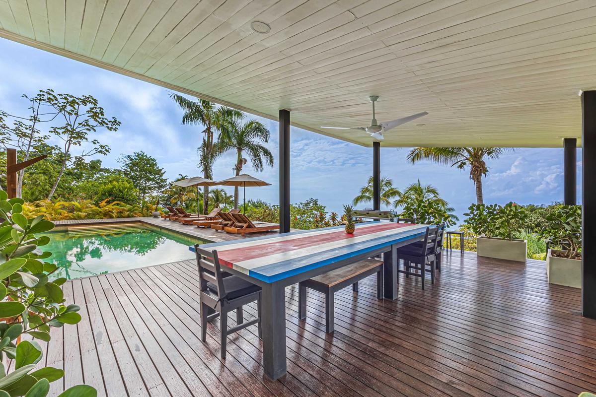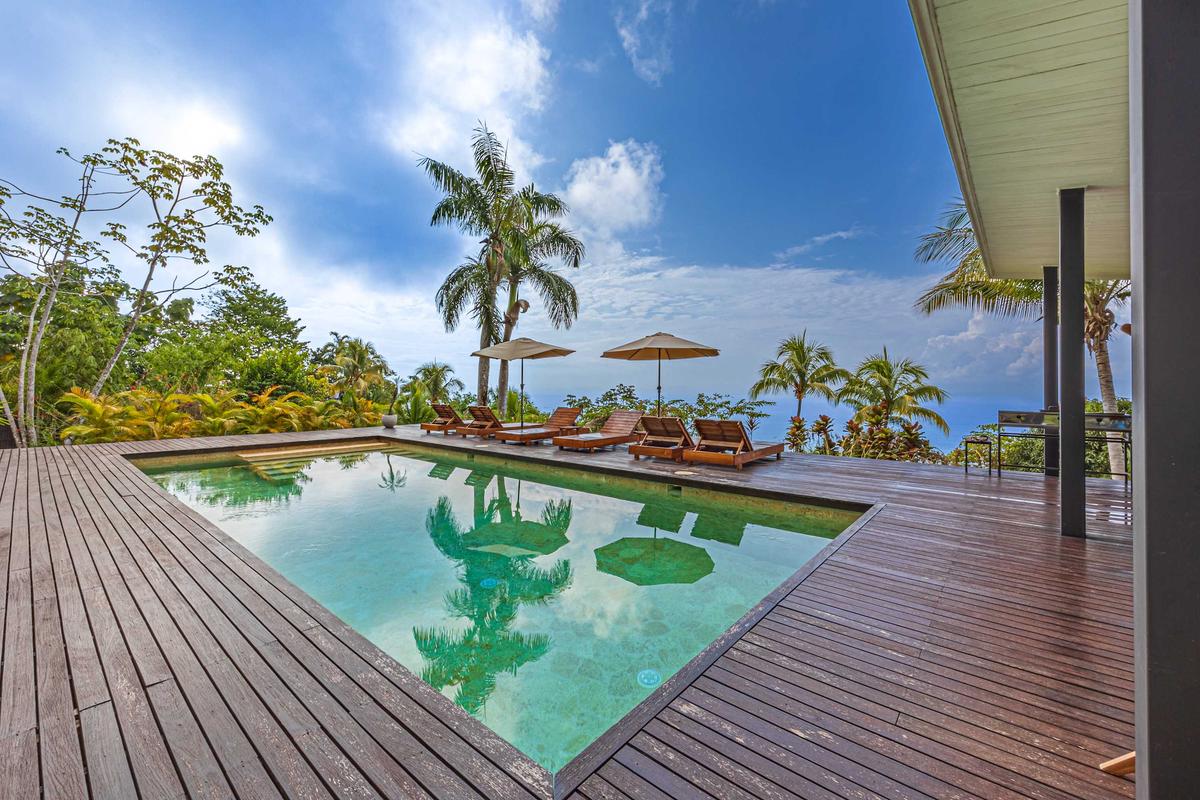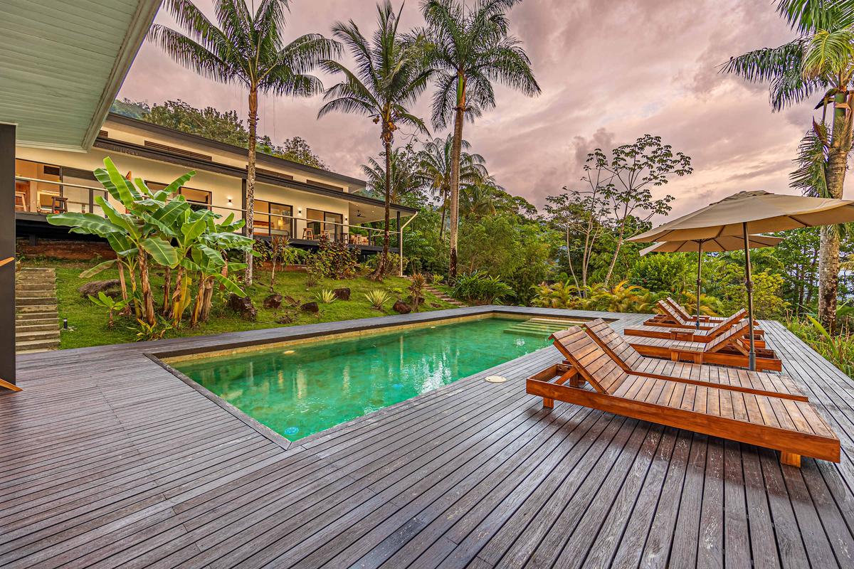 This mid-sized studio has been thoughtfully designed and offers panoramic views of the Pacific Ocean. A unique retreat nestled between Uvita and Dominical, it features a beautiful handcrafted teak bed with hotel-quality mattresses and Egyptian cotton sheets. The king bed can be configured as two XL twin beds upon request, making it ideal for couples, friends, or solo travelers. The studio includes a fully equipped kitchenette with an oven, microwave, refrigerator, coffee maker, electric kettle, blender, toaster, dishwasher, and all necessary cooking and serving utensils: plates, cutlery, wine glasses, pots, pans, oil, salt, and pepper. It also comes with air conditioning, ceiling fan, iron, hair dryer, and a private terrace with an outdoor dining space where you can enjoy ocean views. One of the highlights is access to a spectacular shared pool surrounded by nature, used only by three other villas—ensuring privacy and tranquility. You can also relax on the sun loungers, cool off in the outdoor shower, or enjoy the fire pit under the stars. The property is fully fenced and secure, and a 4x4 vehicle is required to reach it. Access is via self check-in, with support available from the property management team. Each unit has parking for one vehicle, pets are not allowed, and the minimum rental age is 25. The Wi-Fi connection is excellent, perfect for remote work or staying connected while enjoying this natural paradise. IMPORTANT INFORMATION: Cancellation Policy: Cancellations made more than 45 days before arrival are fully refundable. After that period, no refunds will be issued. Check-in: From 3:00 p.m. | Check-out: Before 10:00 a.m. A 4x4 vehicle is required to access the property. Minimum rental age: 25 years old.