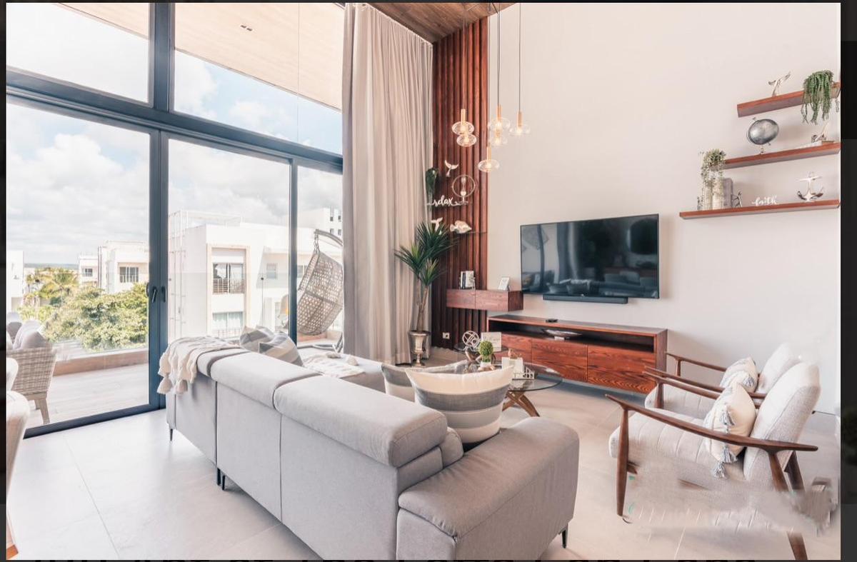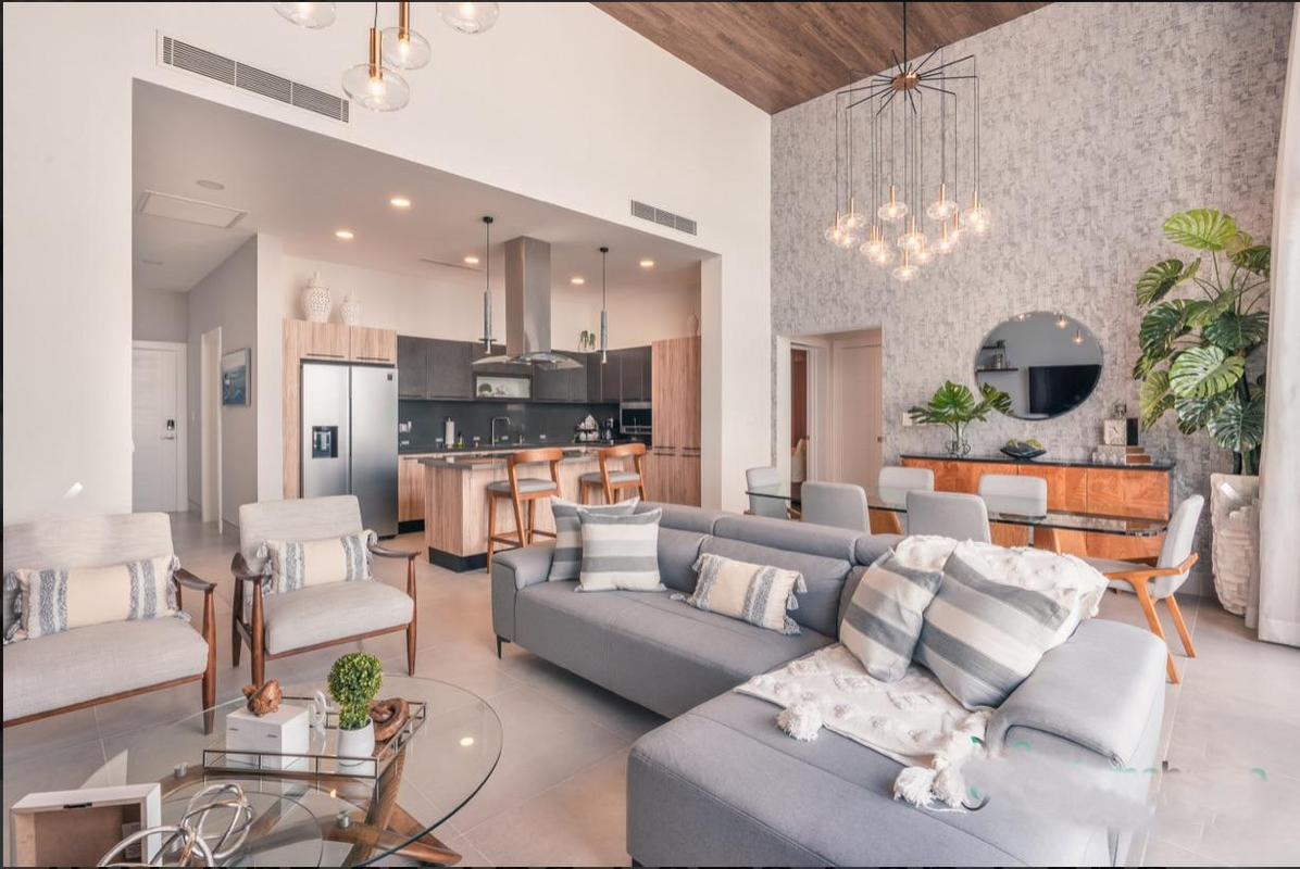 This spectacular 182 m² apartment redefines elegance and modernity, offering a unique experience for those seeking comfort, style and exclusivity. With large spaces filled with natural light thanks to its large windows, this luxurious loft has a sophisticated decoration and a furnished balcony, ideal for relaxing and enjoying the view. The property includes 3 bedrooms, each with a private bathroom and a walking closet. The master suite is equipped with a king bed, while the second bedroom has a queen bed. The third, more compact bedroom has a bunk bed with twin beds. In addition, the apartment has 3.5 bathrooms with a modern and functional design, as well as a fully equipped kitchen for your convenience. Additional amenities include 2 covered parking spaces, a purified water system, central air conditioning, Smart TVs and high-speed Wi-Fi, ensuring that every detail is thought out for your comfort. Located in the prestigious Cap Cana complex, you will have access to a wide range of exclusive common areas. You will be able to enjoy an Olympic-sized pool and a hot tub, ideal for relaxing and taking advantage of the tropical climate. You will also have a terrace and a barbecue area for unforgettable moments, a fully equipped gym and a spa cabin to maximize your well-being. IMPORTANT INFORMATION: Children under 12 years old are not allowed. Daily room cleaning is provided unless otherwise requested by the guest. Cancellations made less than 7 days in advance are non-refundable.