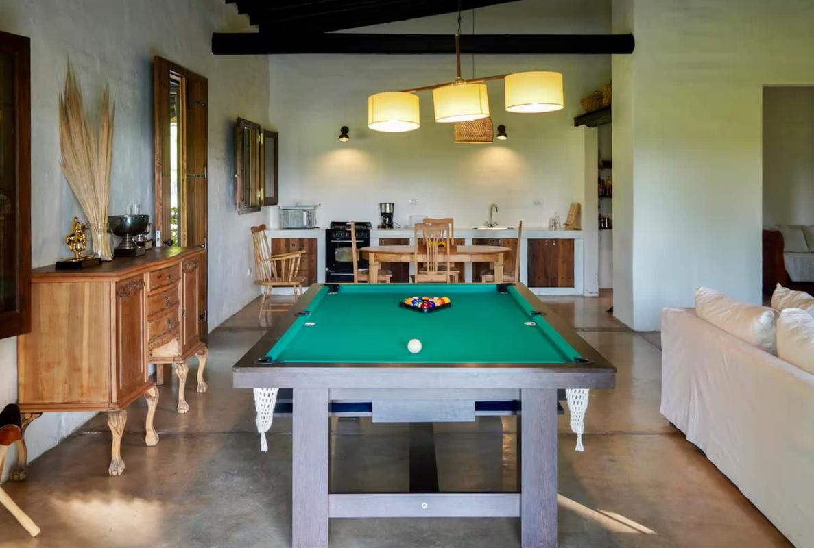 Common areas invite you to share special moments: a pool table and a ping-pong table ensure entertainment, while the garden includes a grill area for outdoor cooking. The exterior space is large, safe, and surrounded by greenery, with 24-hour private security, guaranteeing peace of mind throughout your stay.