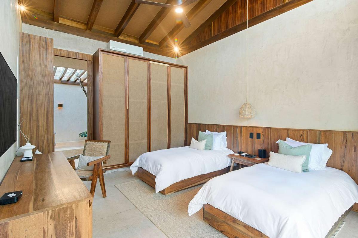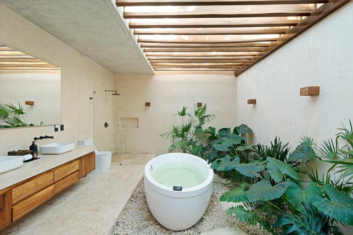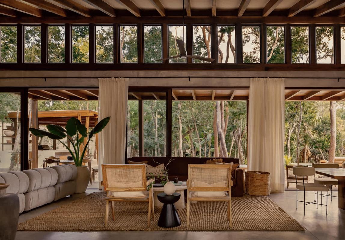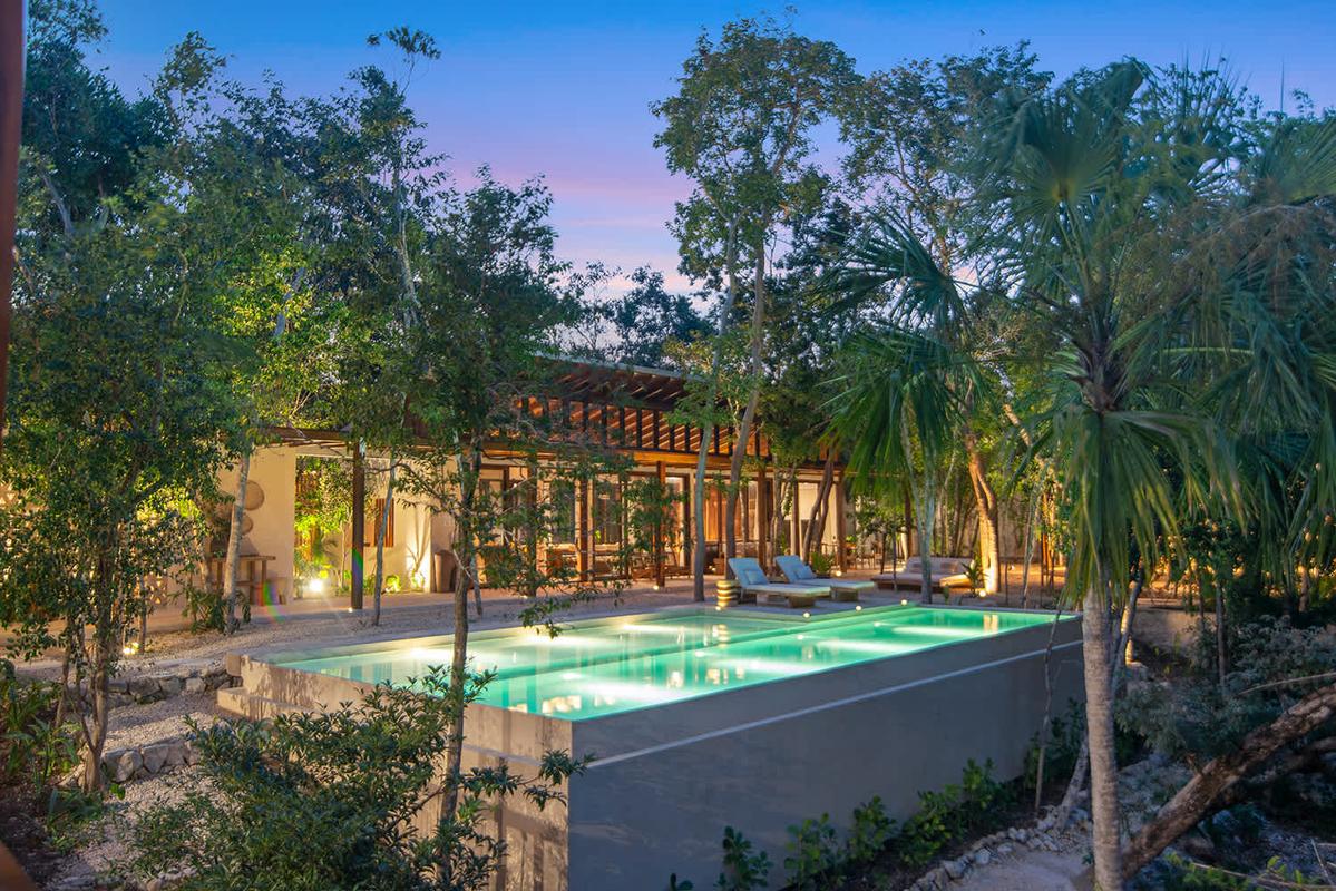 Hidden among Tulum’s lush vegetation, this single-story home blends modern architecture with raw nature. Its L-shaped design and high ceilings create an open, calm, and breezy atmosphere, with spacious areas that flow seamlessly between indoors and outdoors. Jungle views stretch out from every corner—including the infinity pool, perfect for sunset relaxation surrounded by nature. Each of the four bedrooms features an indoor-outdoor style bathroom and jungle views. The master bedroom includes a private terrace jacuzzi, indoor bathtub, and two rain showers. The home comfortably accommodates up to 10 guests, making it ideal for groups who value design, privacy, and nature. Fully self-sufficient, the property is powered by solar energy (with generator backup) and avoids all single-use plastics. It’s a sustainable luxury retreat that respects the environment without sacrificing comfort. Guests enjoy high-speed Starlink satellite internet, personalized concierge service before and during the stay, and a charming treehouse for little ones. The outdoor space also includes a grill area, perfect for al fresco meals in a tropical setting. An eco-friendly haven in the heart of the Tulum jungle, where conscious design and complete disconnection come together to offer an intimate, elegant experience in harmony with nature. IMPORTANT INFORMATION Cancellations made up to 65 days before arrival will be fully refunded. After that, no refunds will be issued under any circumstances. Check-in / Check-out: Check-in from 3:00 PM | Check-out by 11:00 AM Maximum capacity (10 guests): Additional visitors require prior authorization and the purchase of day passes. Parties and noise: Loud parties and external sound systems are not permitted.