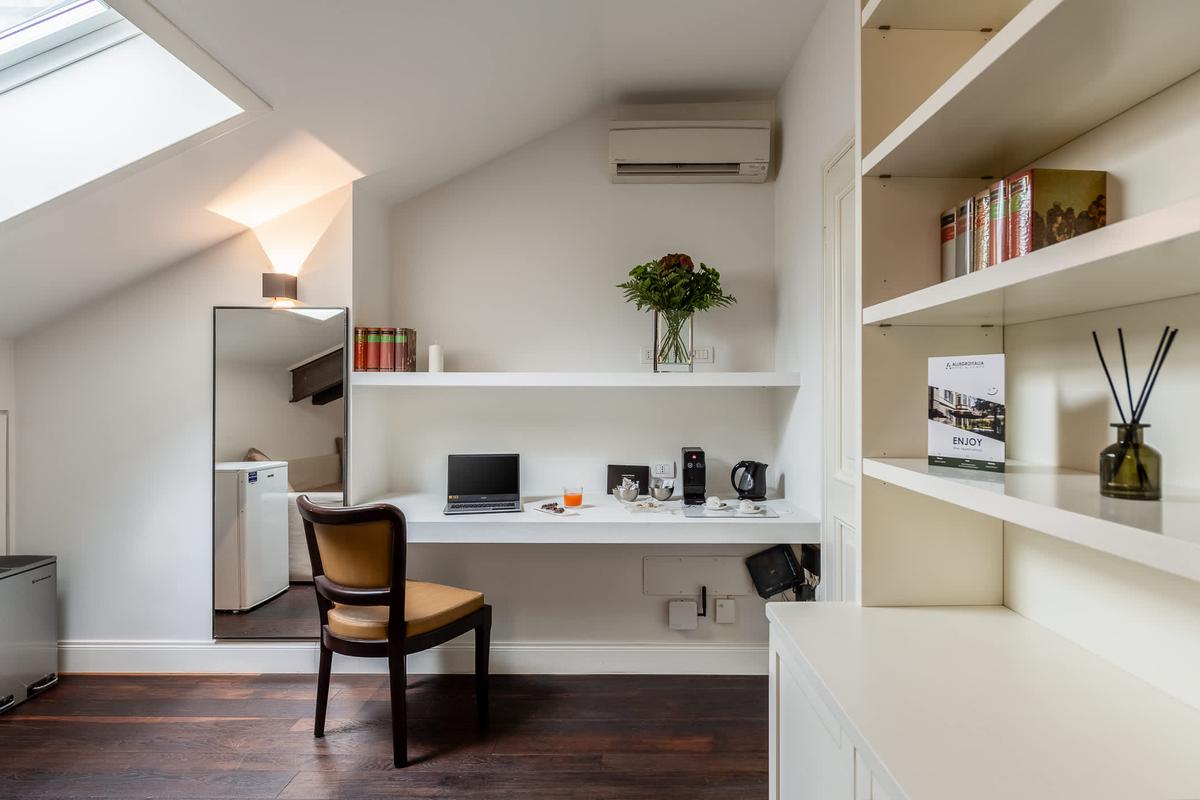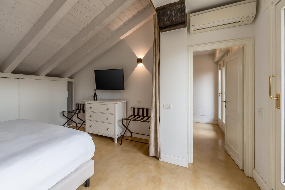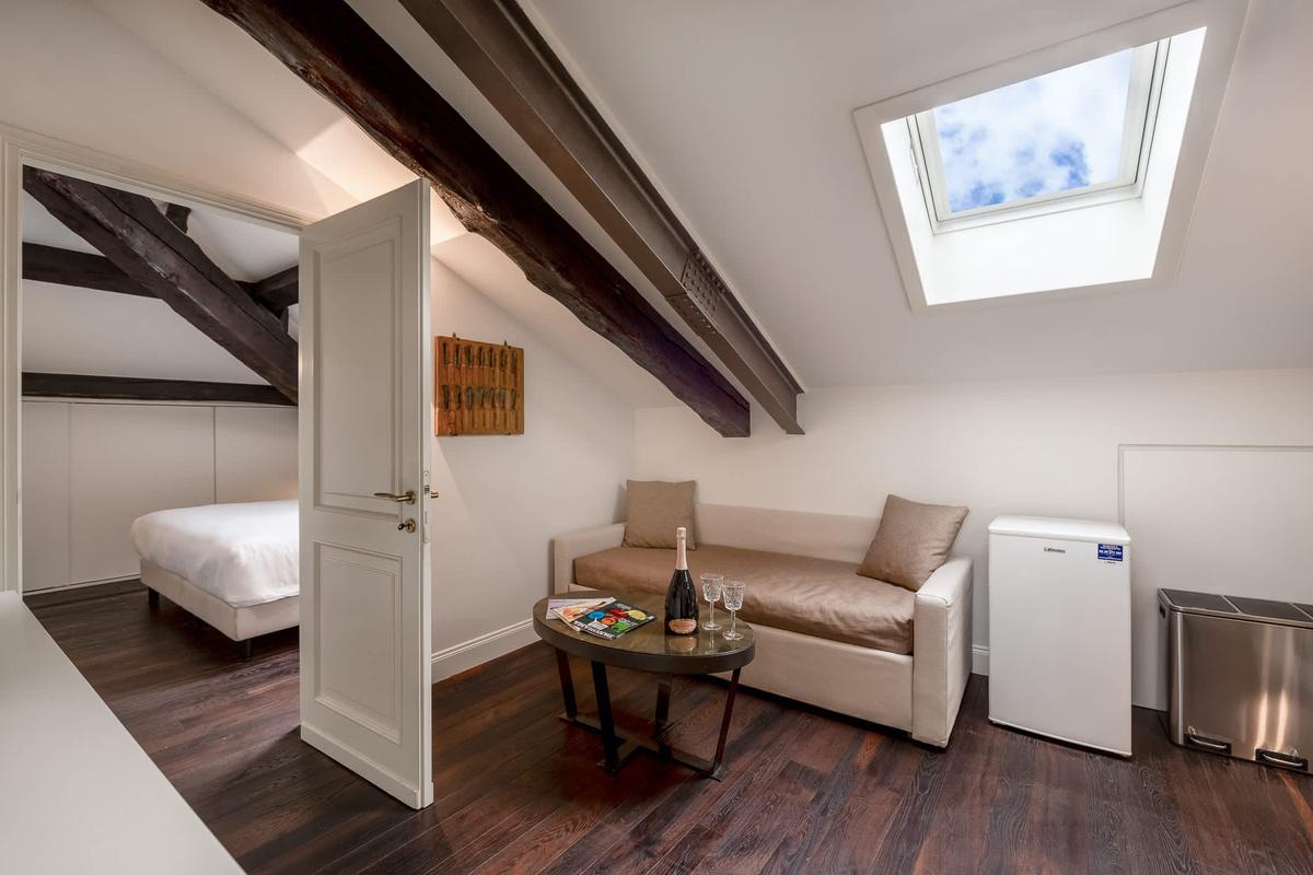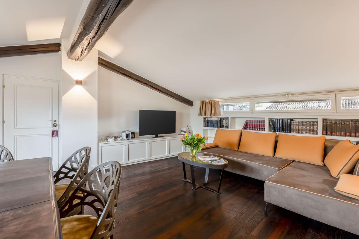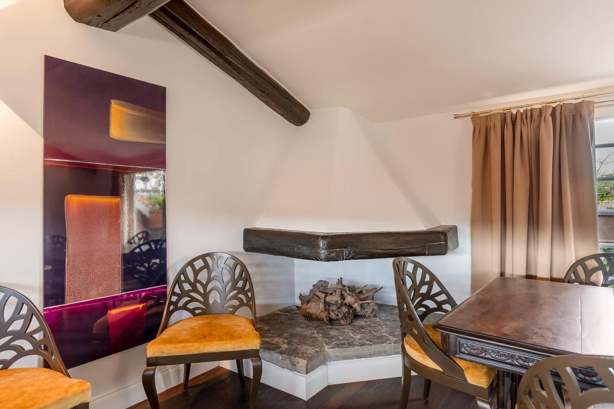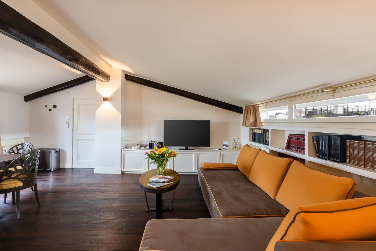 A highlight of the apartment is its inviting fireplace, perfect for cooler evenings, as well as climate-controlled interiors that include air conditioning and heating. Enjoy a restful and comfortable stay in the bright living area with a flat-screen TV, minibar, desk, wardrobe, walk-in closet, and bed linen and towels included.