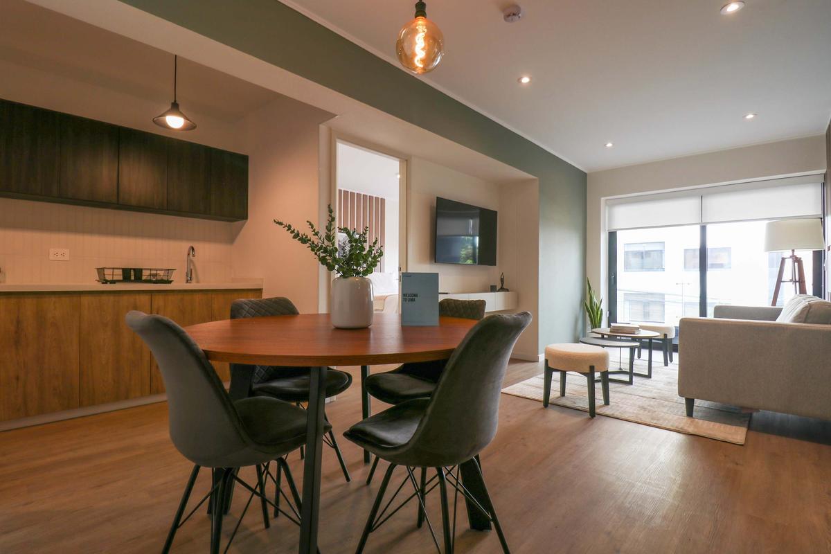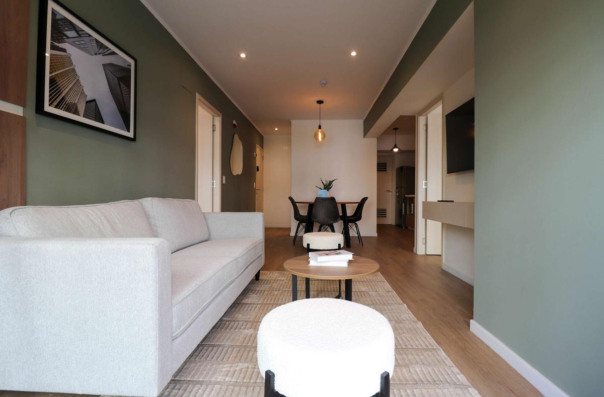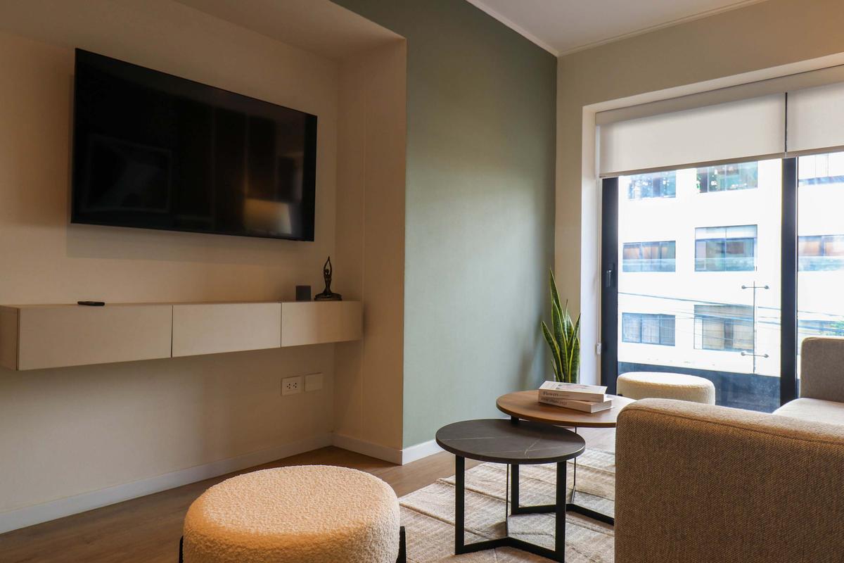 In the welcoming Miraflores neighborhood, this beautiful apartment it's very well located; just minutes away from Larcomar shopping center, Parque Kennedy, Virgen de Fatima Parish, and exclusive gyms. The area has currency exchange services, and labs centers in case you need to take a test, such as ROE and Multilab.