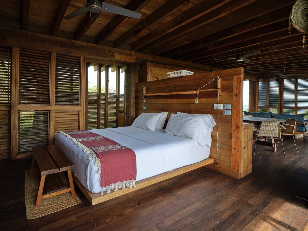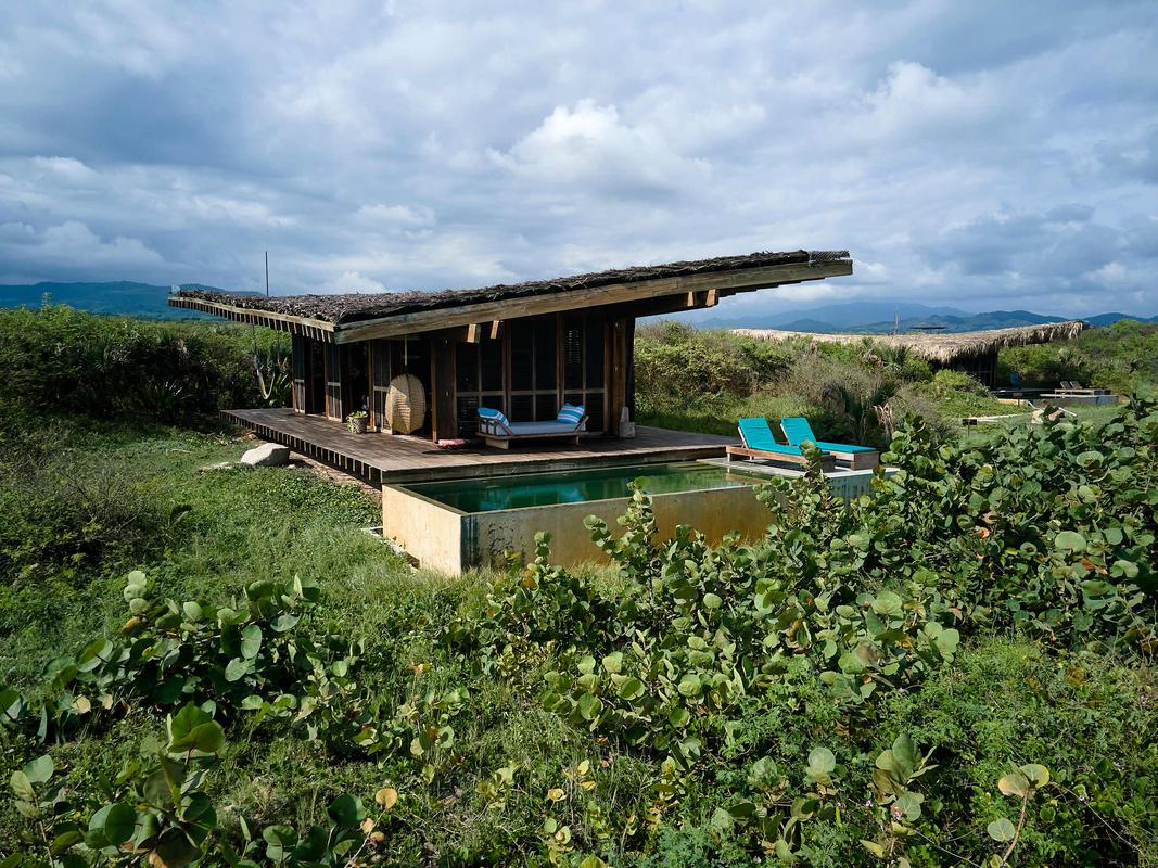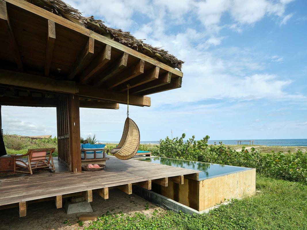 This spectacular beachfront villa features a private pool and thoughtfully designed spaces for relaxation, reading, listening to music, or simply savoring the breathtaking ocean views. Meticulously crafted with attention to detail, it combines vintage furniture with an elevated structure that preserves the surrounding vegetation and provides unique panoramas of the sea and its natural setting. The villa is equipped with a kitchenette, a full bathroom, a living room with a sofa bed, a dining area, a bedroom with a king-size bed, hammocks, and a fully furnished terrace, offering everything needed for an unforgettable experience.