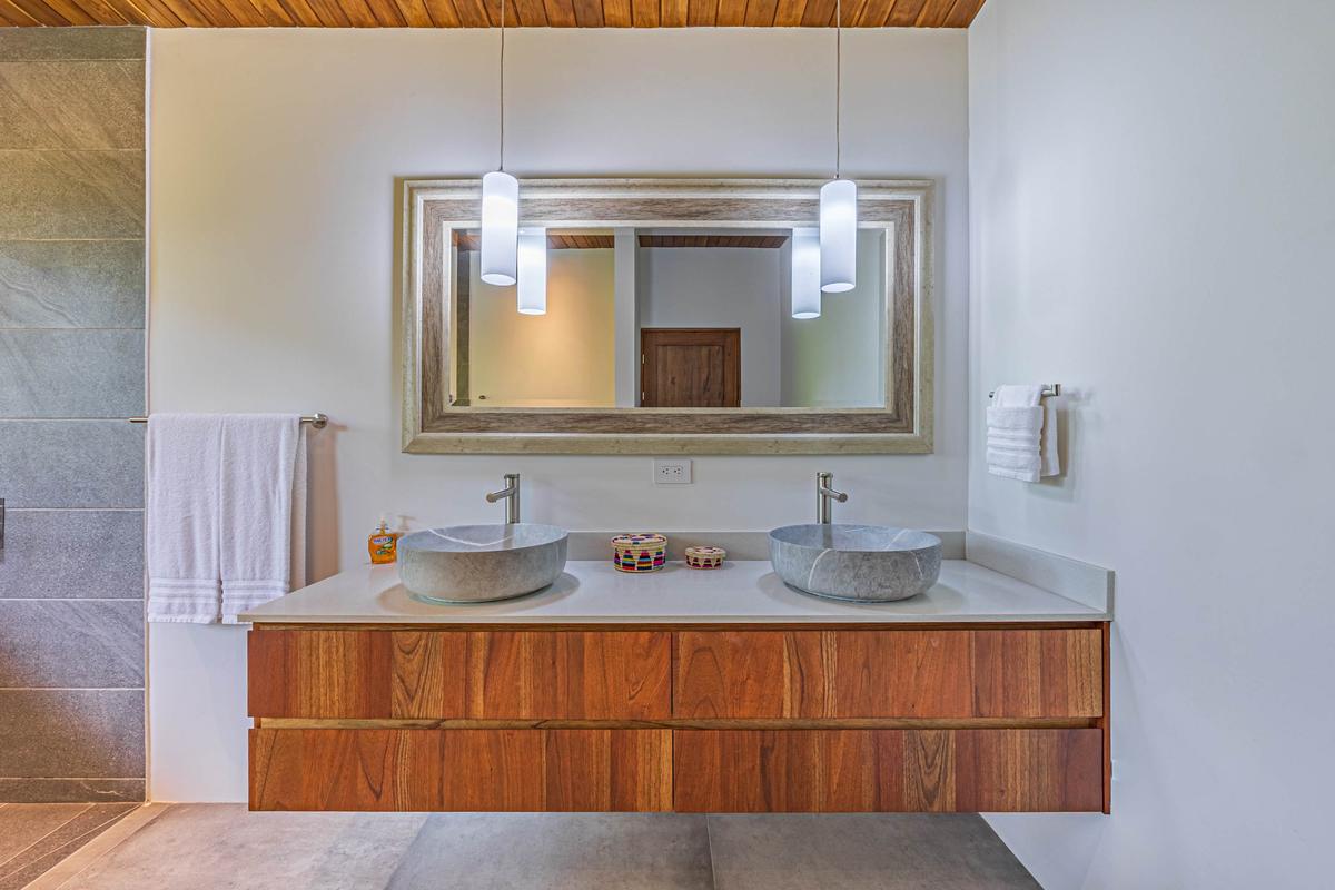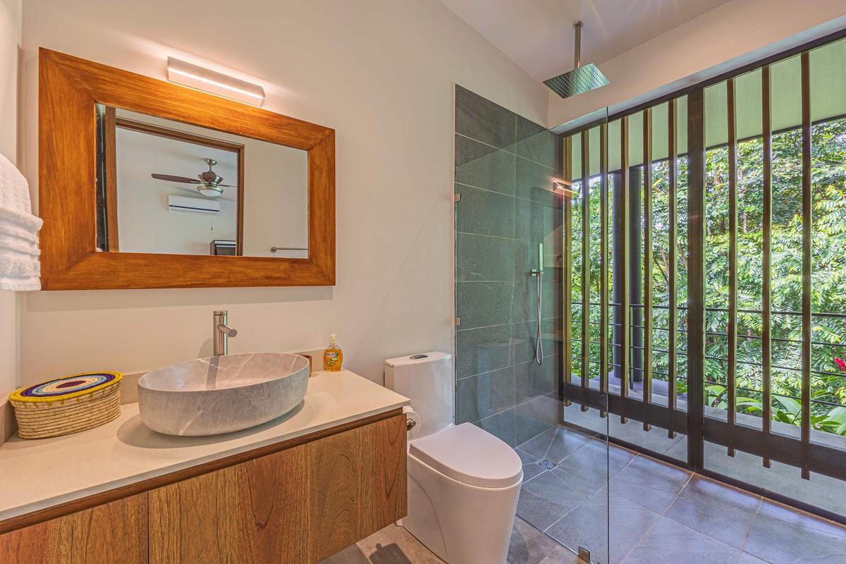 The property features a main house and a guest house, offering privacy and comfort for all travelers. The primary bedroom serves as a true lookout over the ocean, a spacious and peaceful sanctuary designed for rest. On the first floor, two additional bedrooms with jungle views and private bathrooms allow families or groups of friends to share meaningful moments without sacrificing privacy. Every space is designed to maximize both views and comfort.