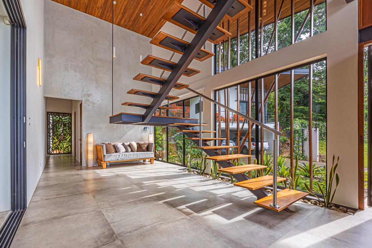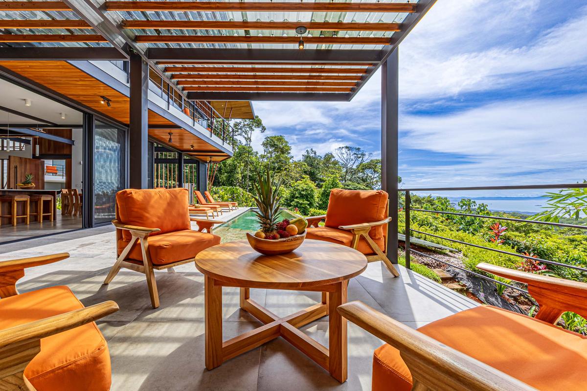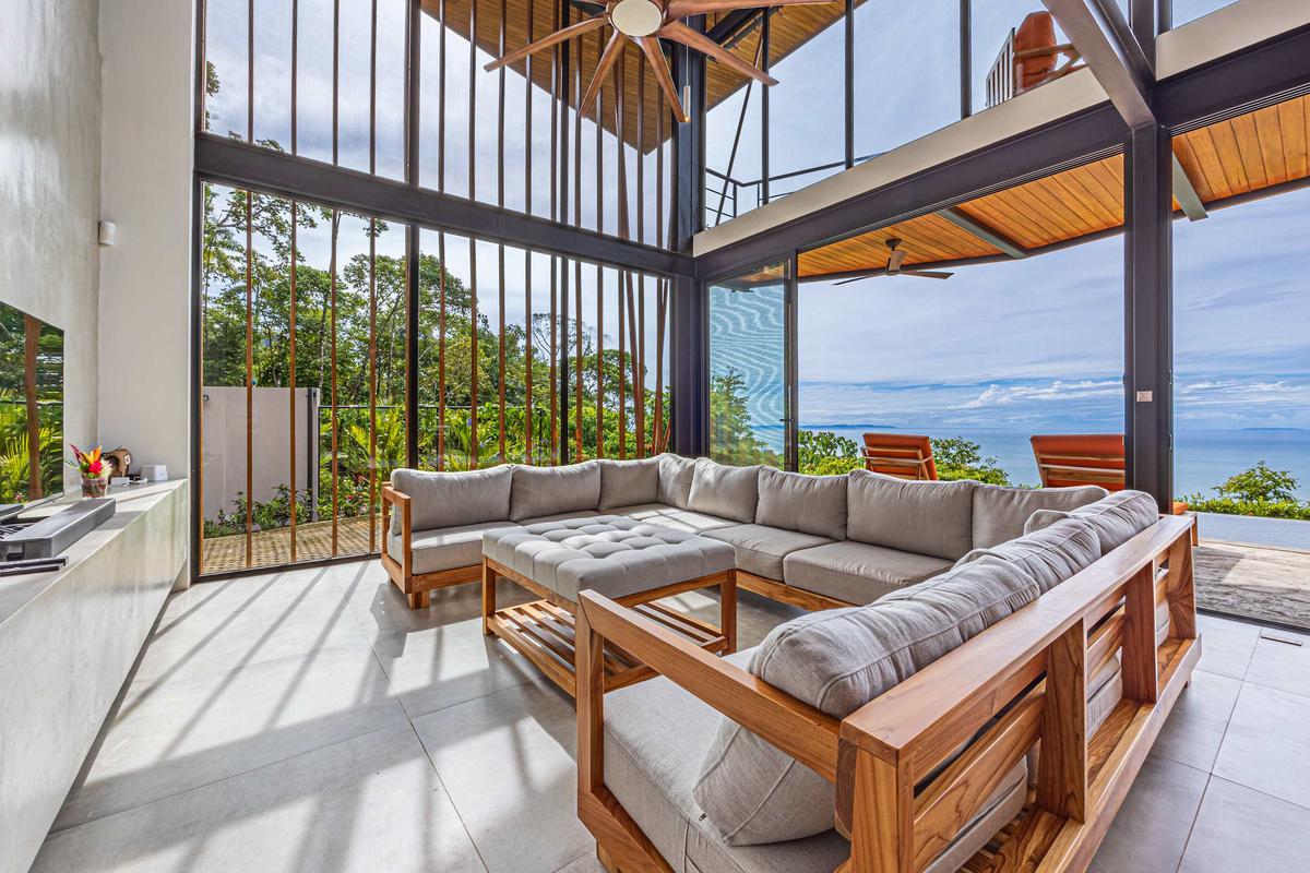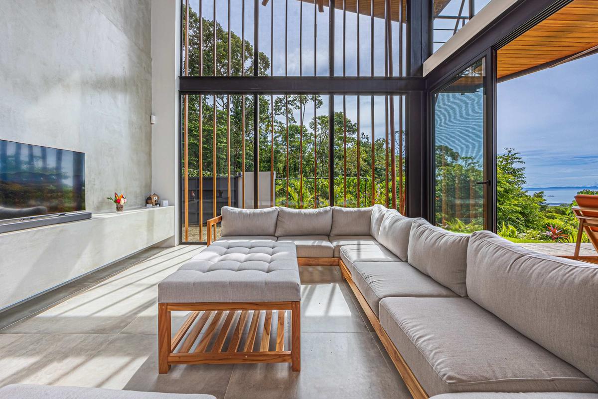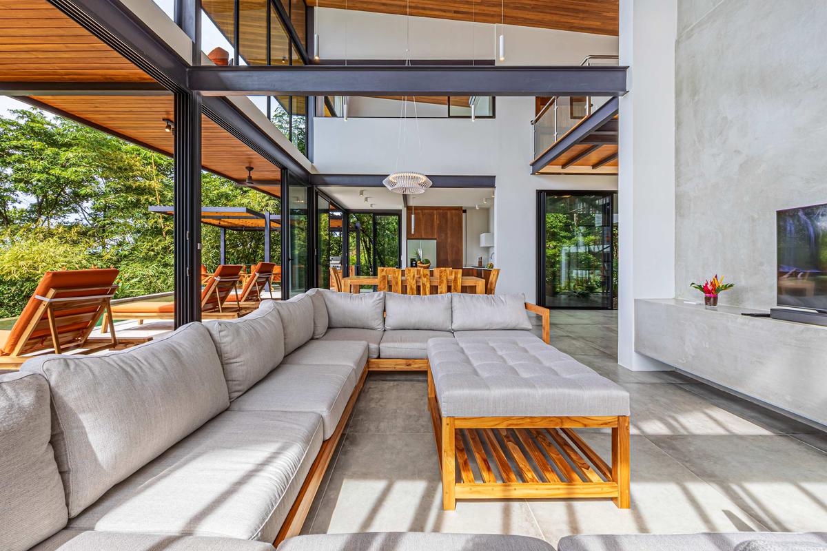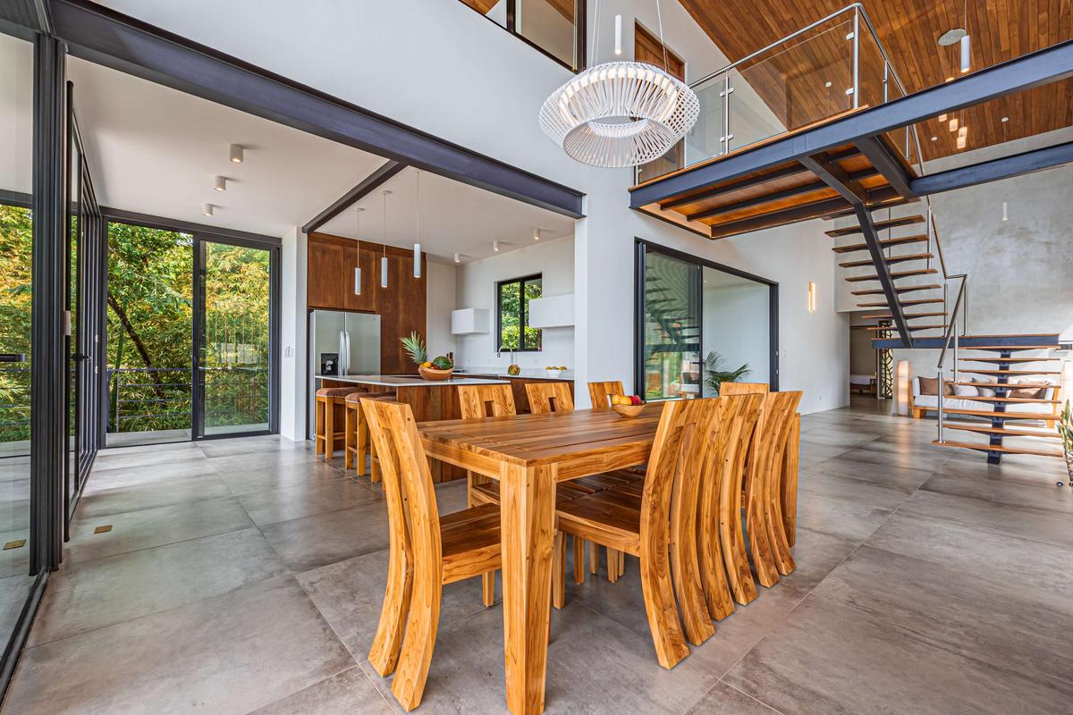 The natural surroundings and outdoor spaces are a true oasis. From the swimming pool to the terraces and outdoor dining area, every corner invites relaxation, connection, and awe at the local wildlife—toucans and howler monkeys are frequent visitors. The property is part of the exclusive Costa Verde Estates, a private and secure community spanning over 1,250 acres of protected rainforest, where privacy and immersion in nature are at the heart of the experience.
